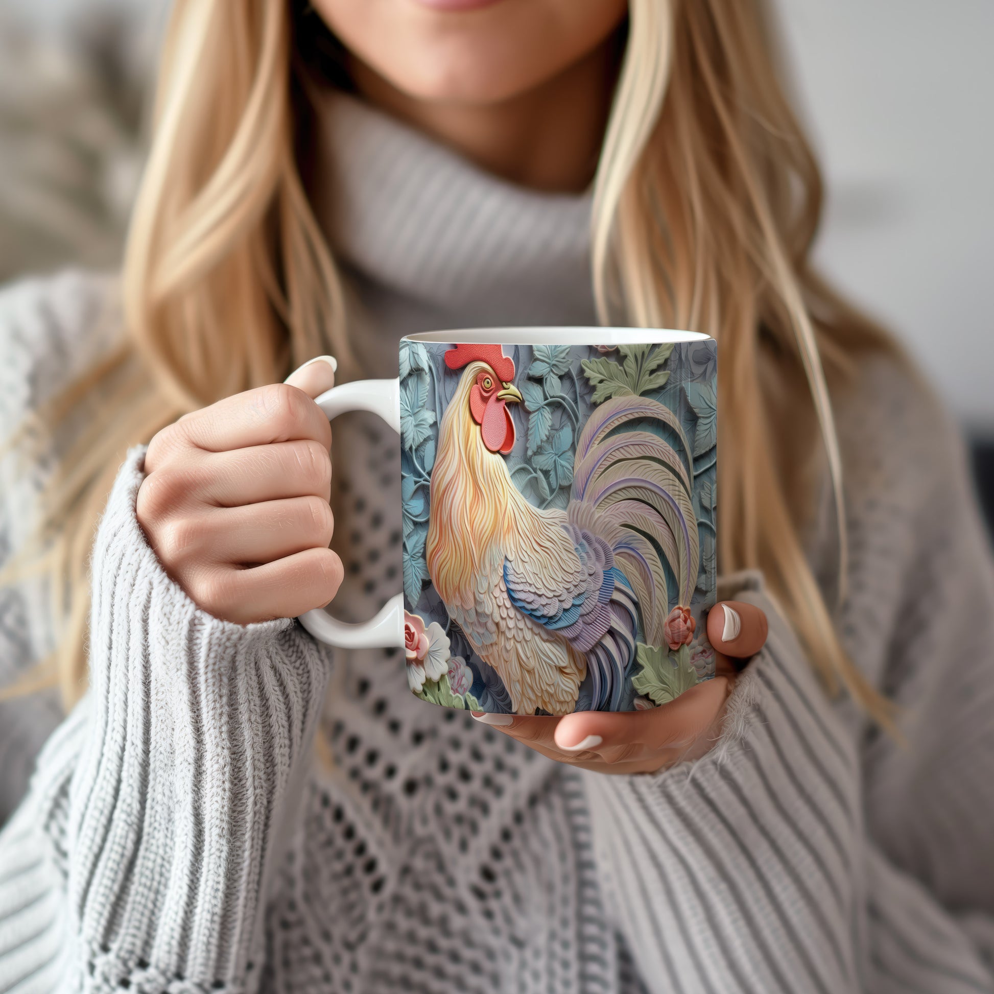 Tento hrnek s motivem barevného kohouta vyniká svým jedinečným stylem. Je skvělou volbou pro milovníky domácí pohody a ideálním dárkem pro přátele nebo rodinu. Materiál: keramika. Objem: 330 ml. Vhodné do myčky i mikrovlnky. Díky svému designu přináší radost při každém doušku.