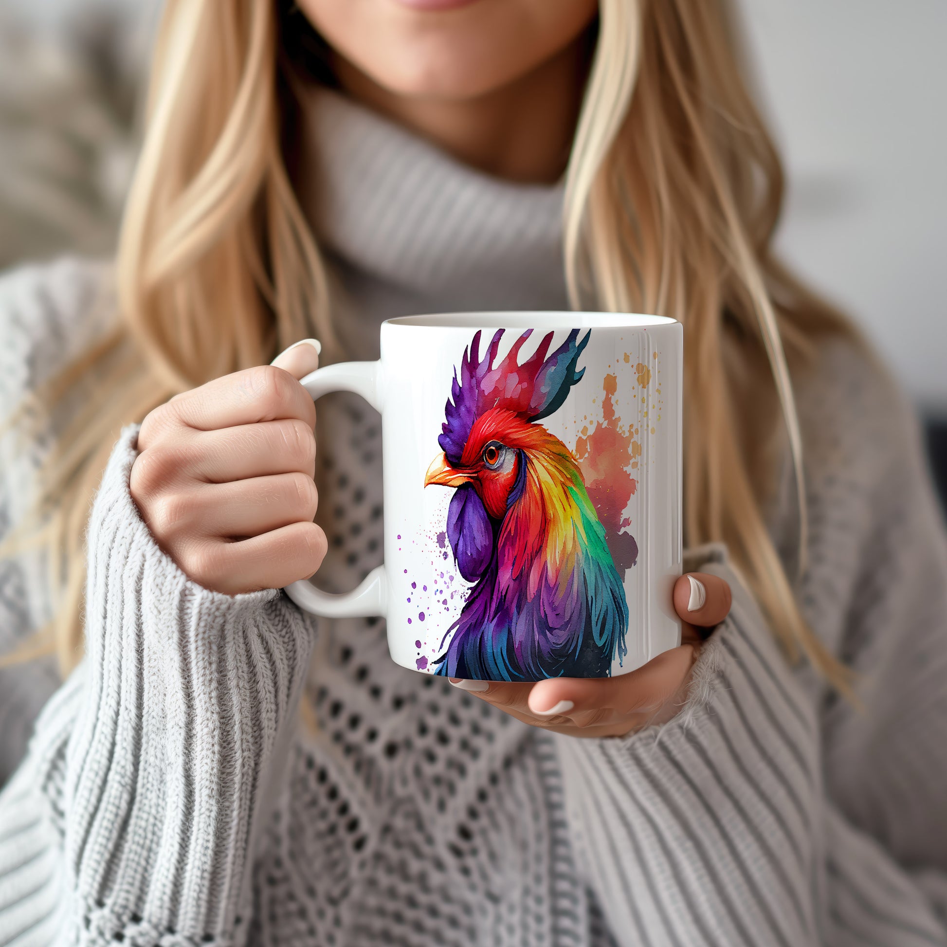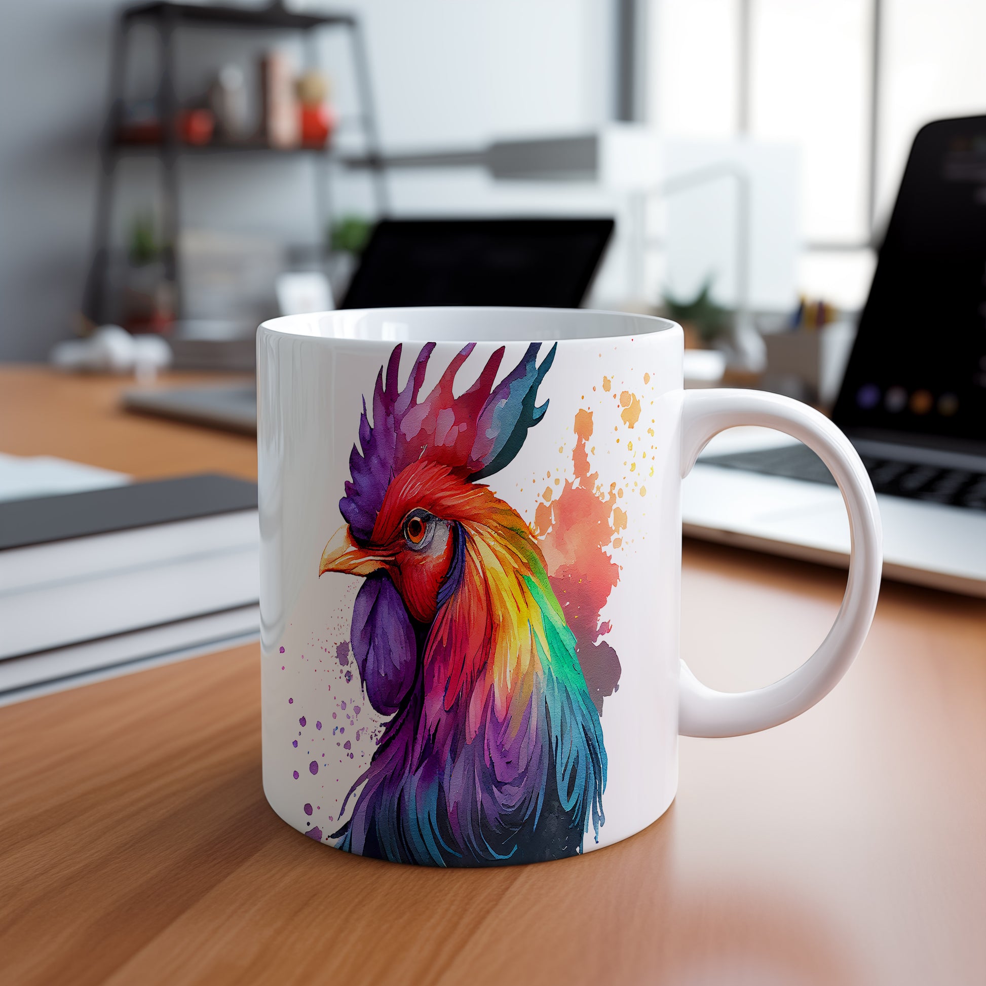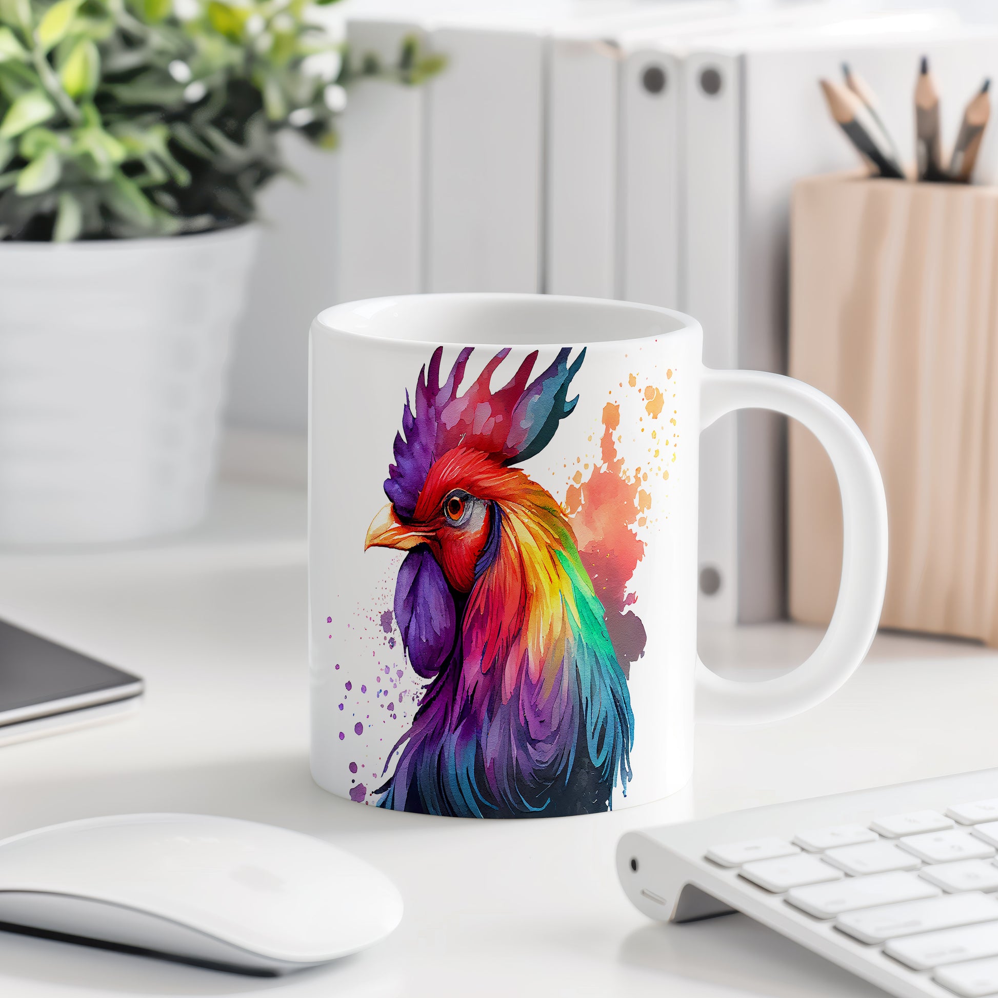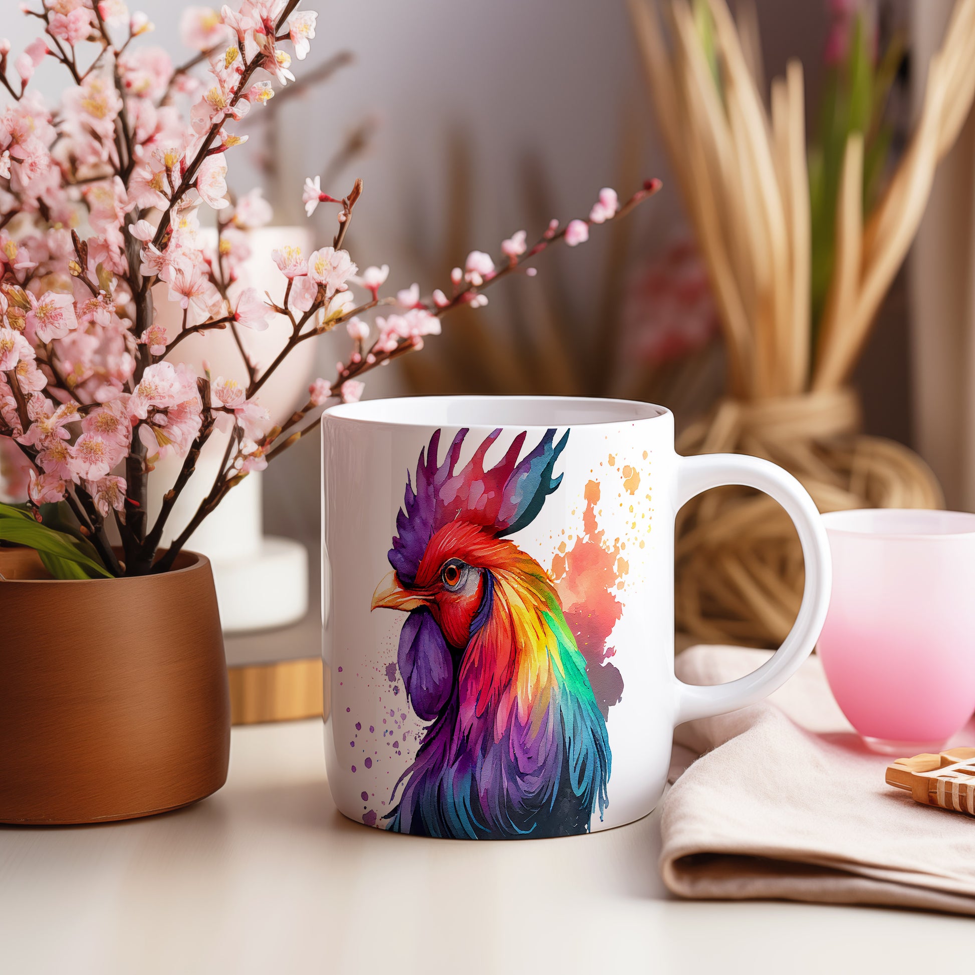 Pestrý hrnek s ilustrací kohouta v akvarelovém stylu. Tento hrnek je ideální pro milovníky zvířat a barevných motivů, skvělý tip na dárek pro přátele nebo rodinu. Materiál: keramika. Objem: 330 ml. Vhodné do myčky i mikrovlnky. Používání tohoto hrnku přináší radost a oživí každé pití.