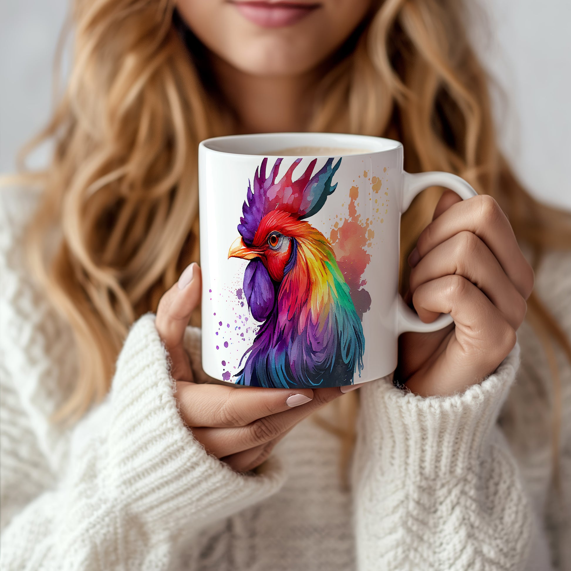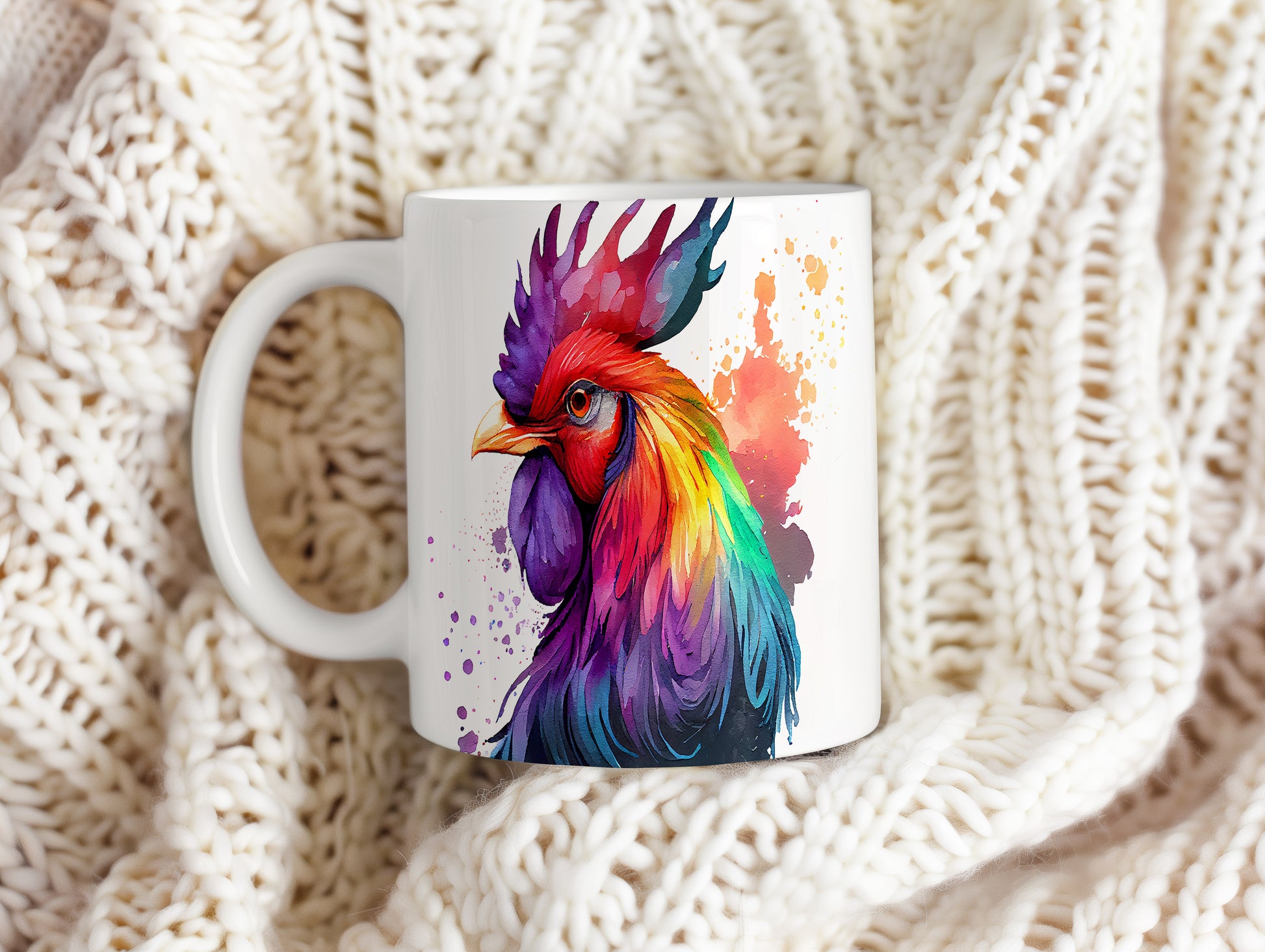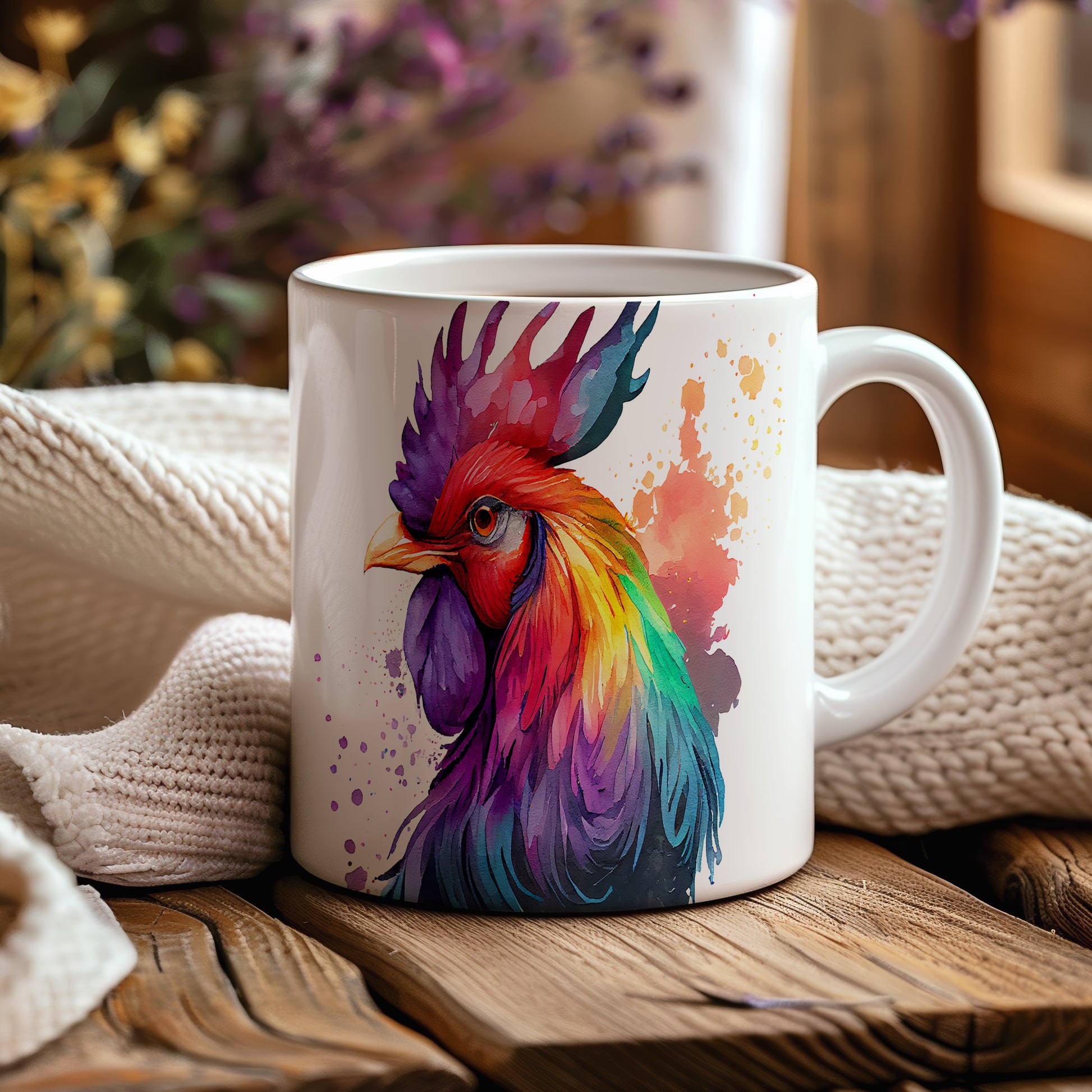 Hrnek s barevným kohoutem – akvarelovým motivem