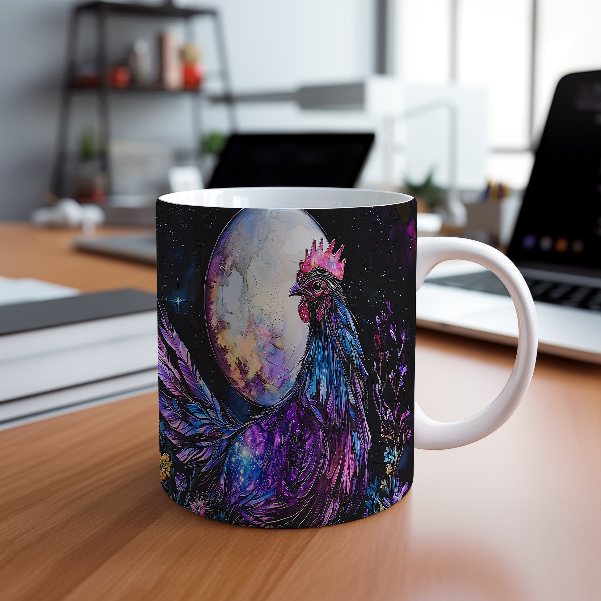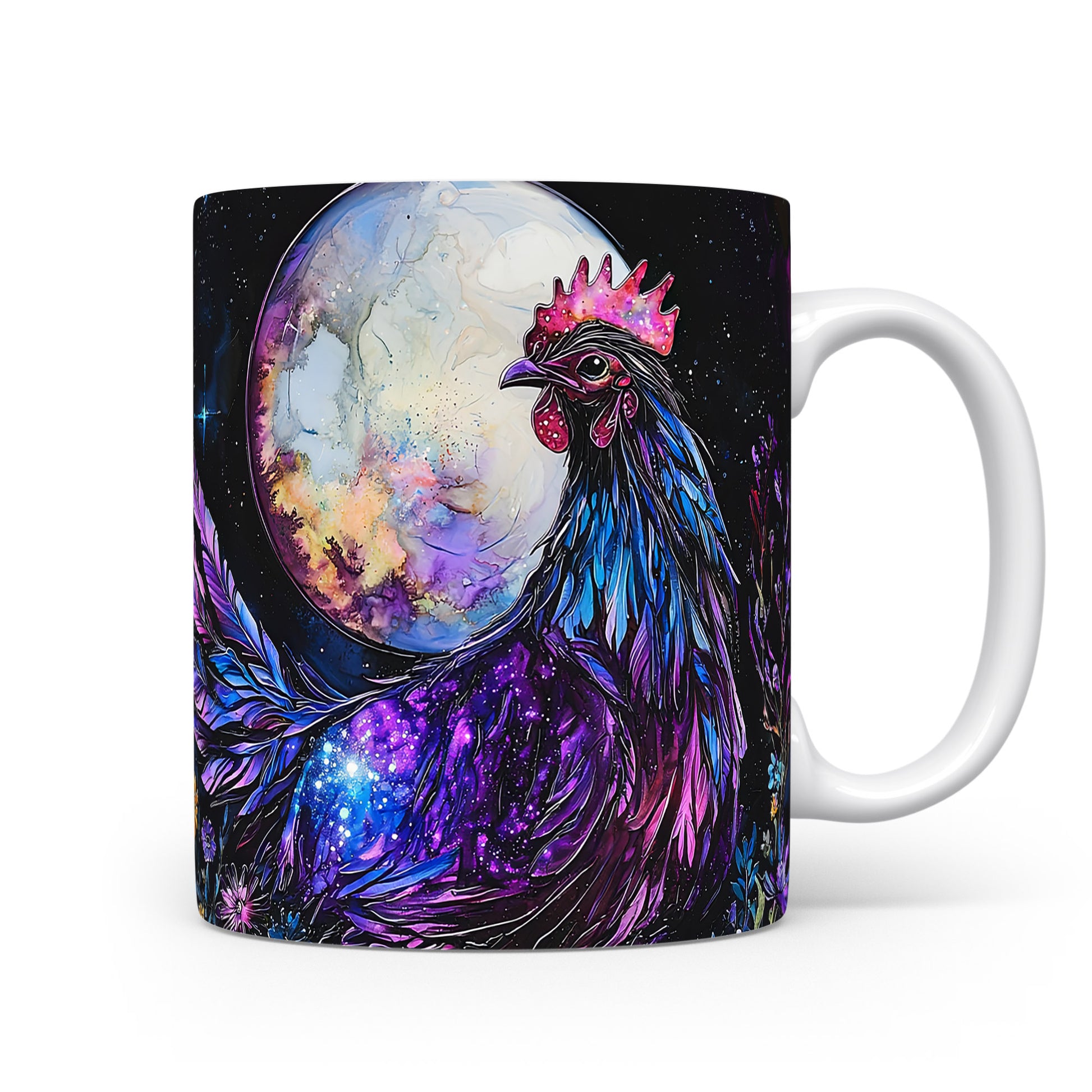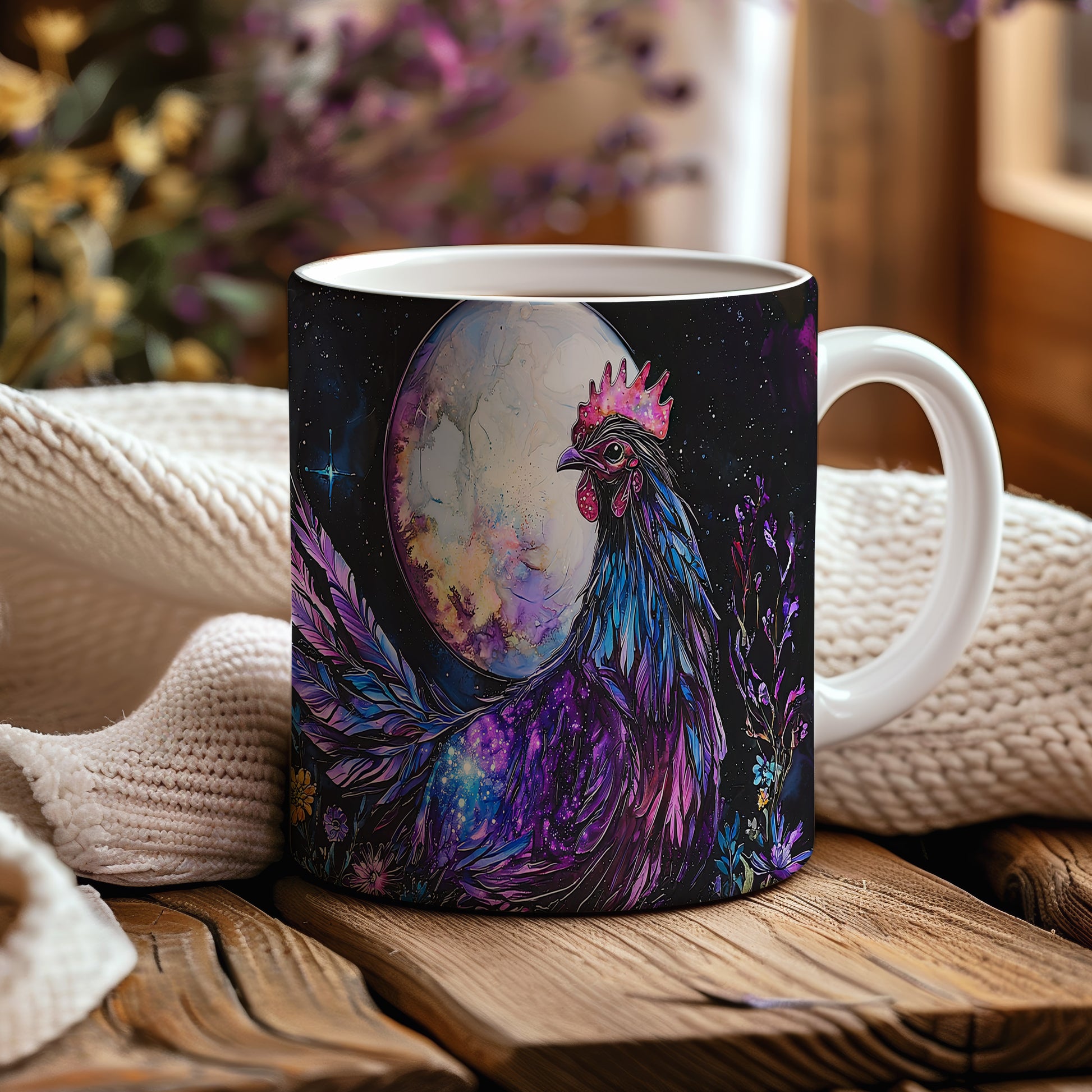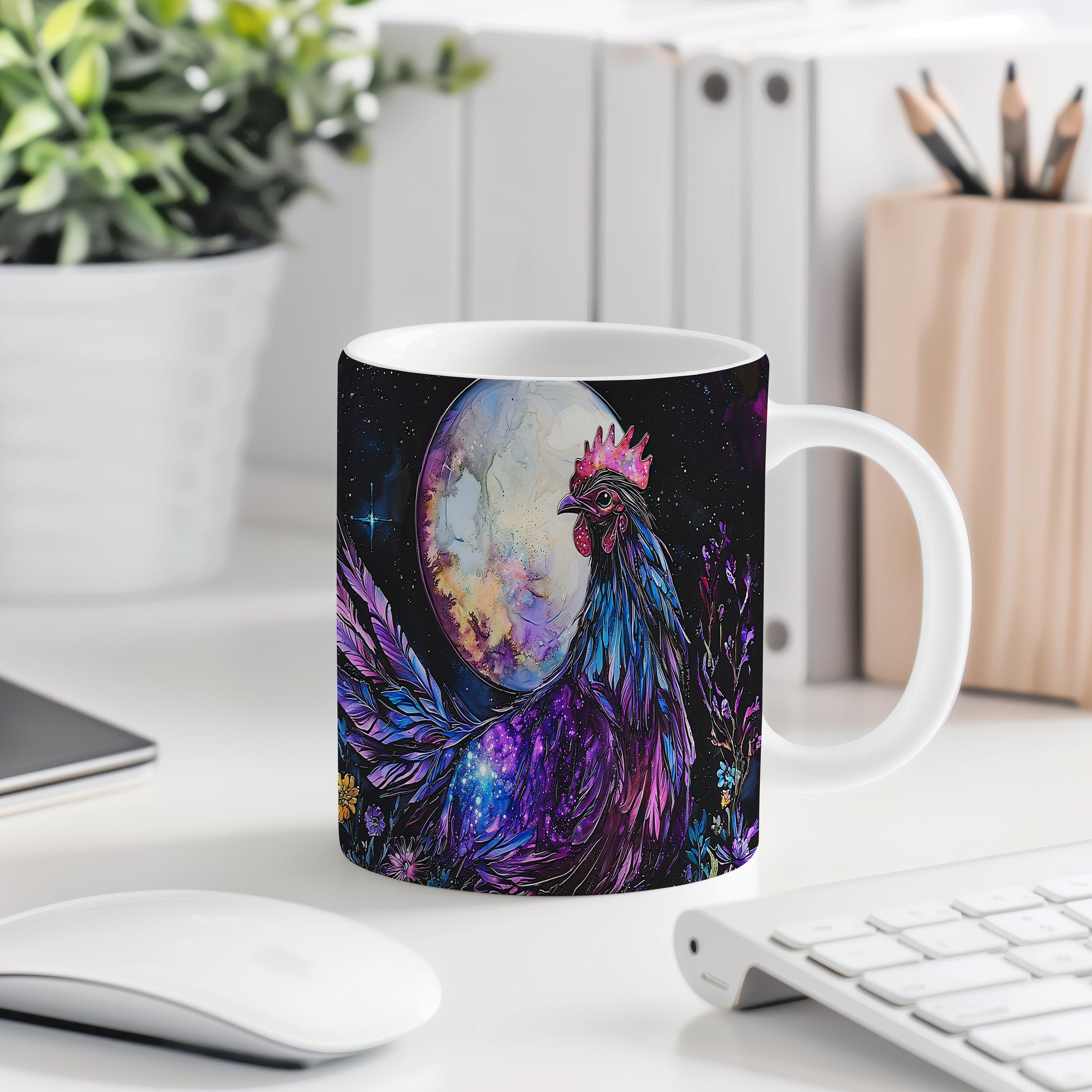 Tento hrnek zobrazuje barevného kohouta na pozadí jasného měsíce. Je ideální pro milovníky zvířat a originálního umění, skvělý tip na dárek pro přátele nebo rodinu. Materiál: keramika. Objem: 330 ml. Vhodné do myčky i mikrovlnky. Používání tohoto hrnku přináší radost a oživí každé ráno.