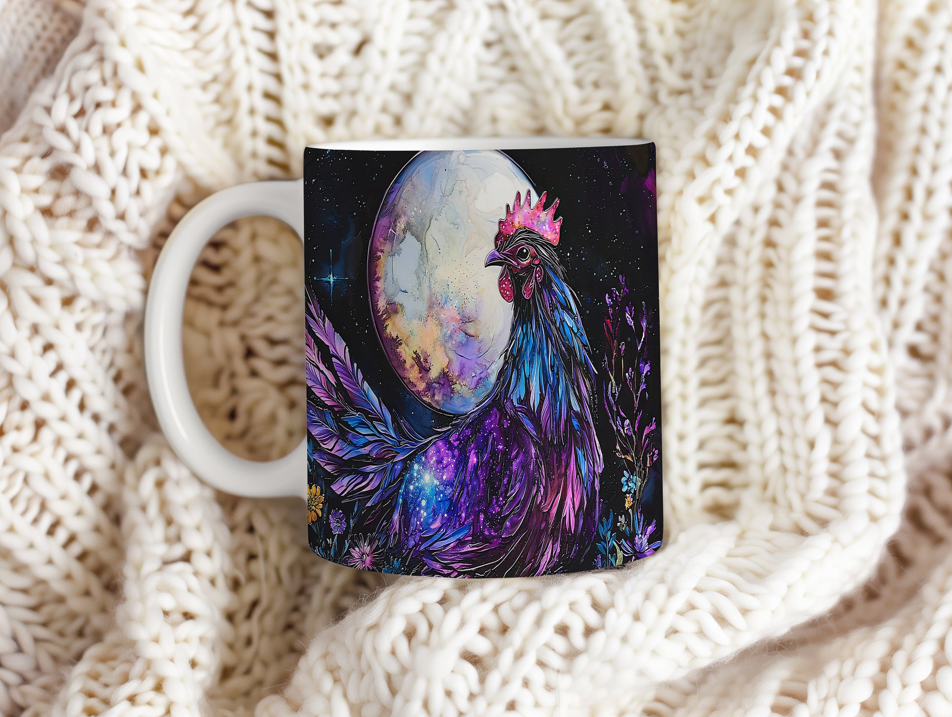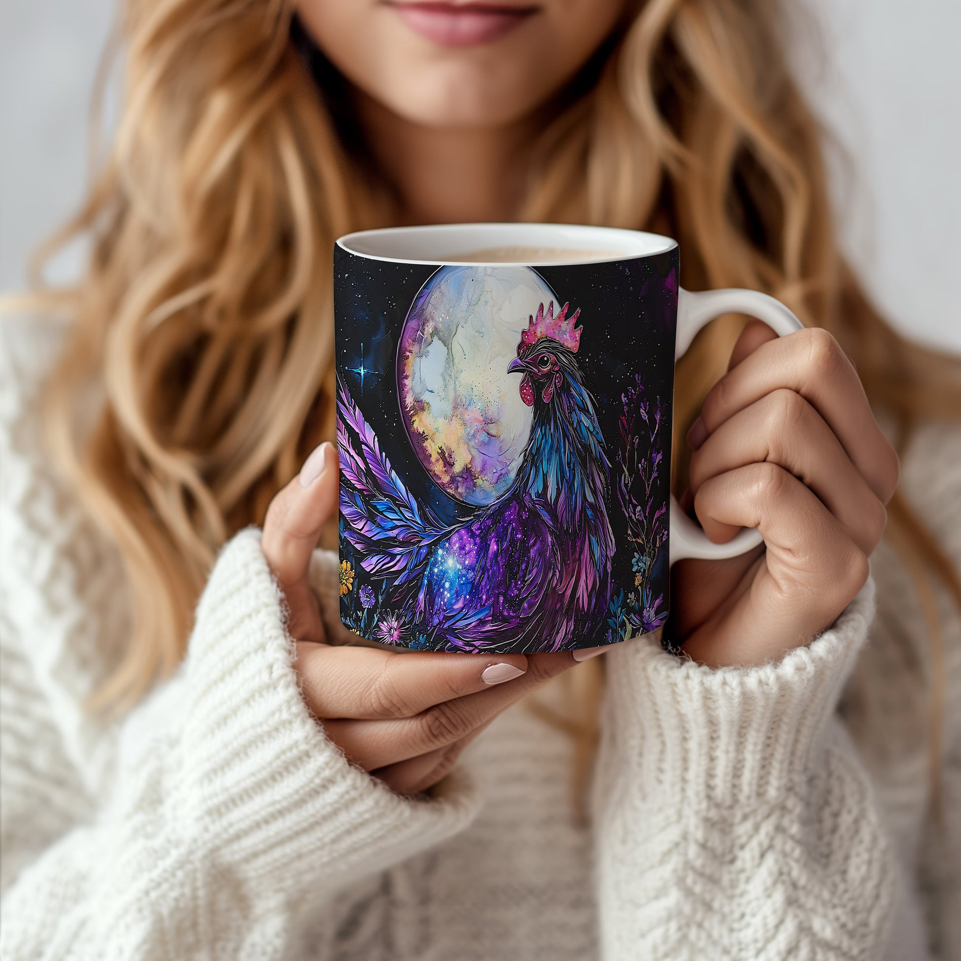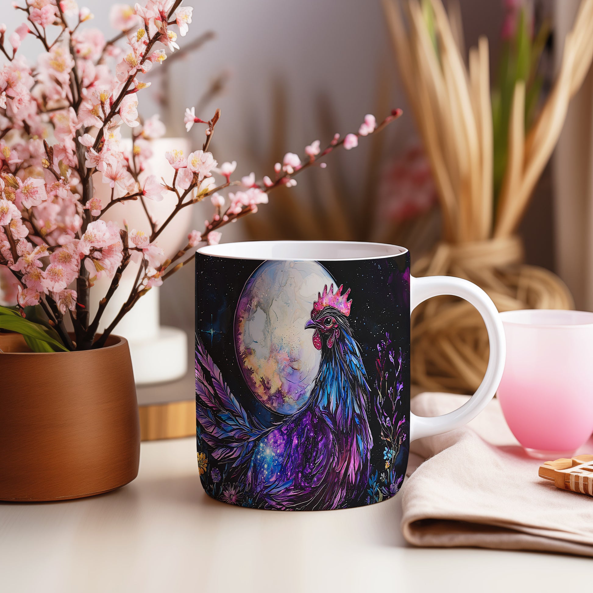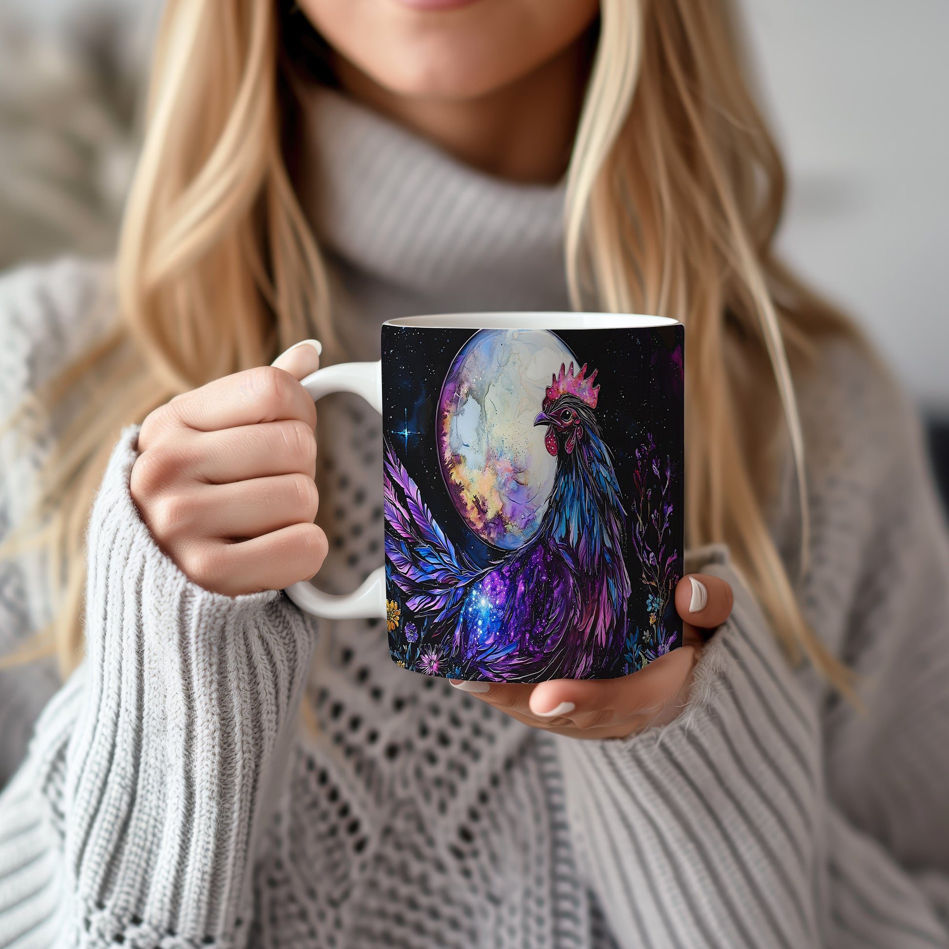 Tento hrnek zobrazuje barevného kohouta na pozadí jasného měsíce. Je ideální pro milovníky zvířat a originálního umění, skvělý tip na dárek pro přátele nebo rodinu. Materiál: keramika. Objem: 330 ml. Vhodné do myčky i mikrovlnky. Používání tohoto hrnku přináší radost a oživí každé ráno.