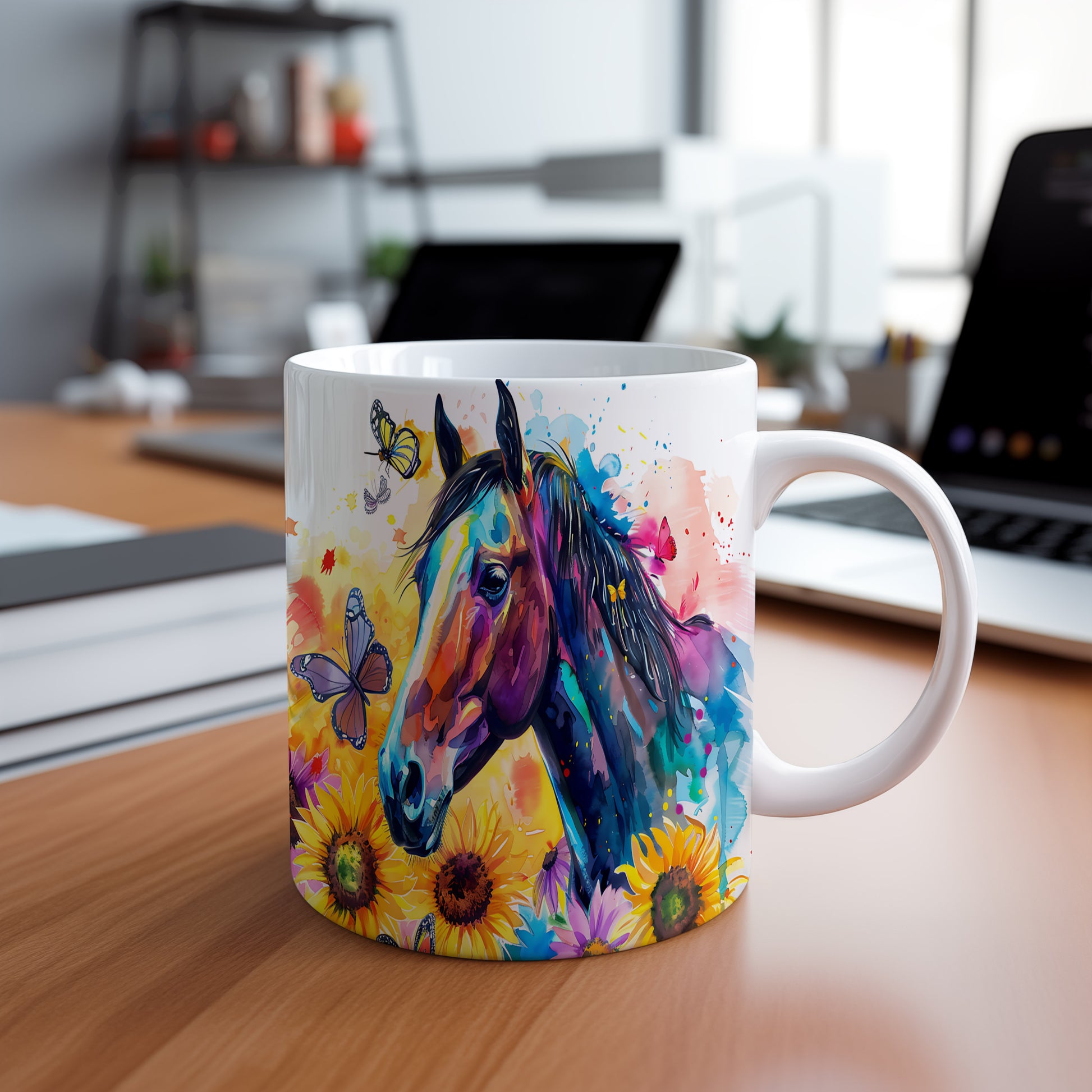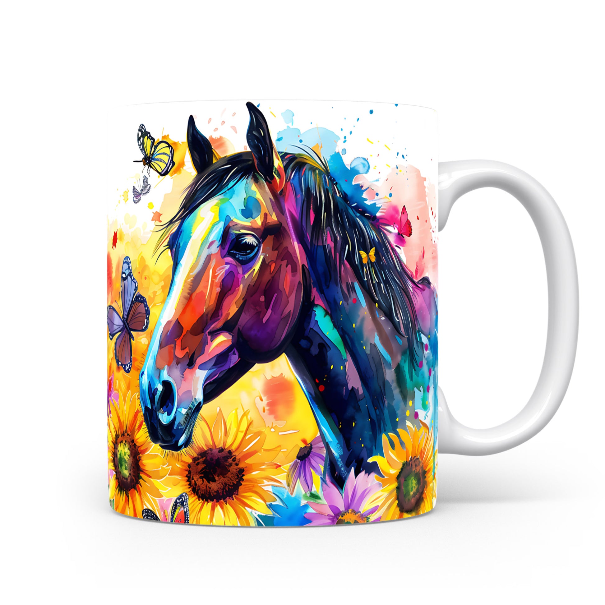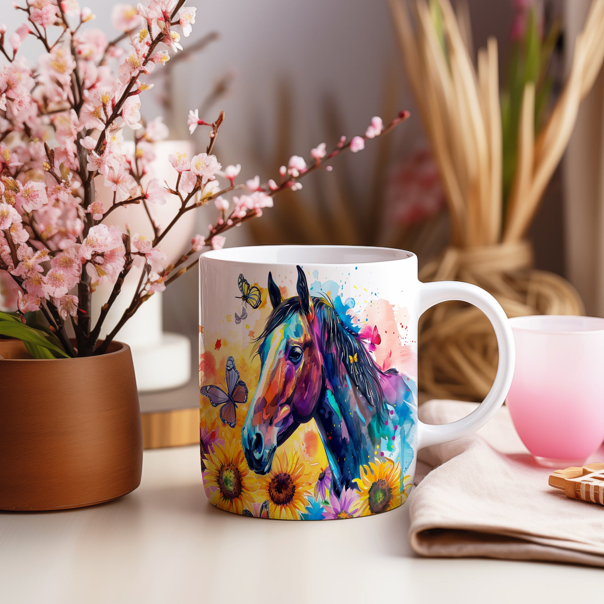 Tento keramický hrnek s motivem barevného koně a květin je skvělou volbou pro milovníky přírody a zvířat. Je ideální jako dárek pro přátele nebo rodinu, kteří ocení originální design. Materiál: keramika. Objem: 330 ml. Vhodné do myčky i mikrovlnky. Díky svému jedinečnému vzhledu přináší do každodenního pití radost a styl.