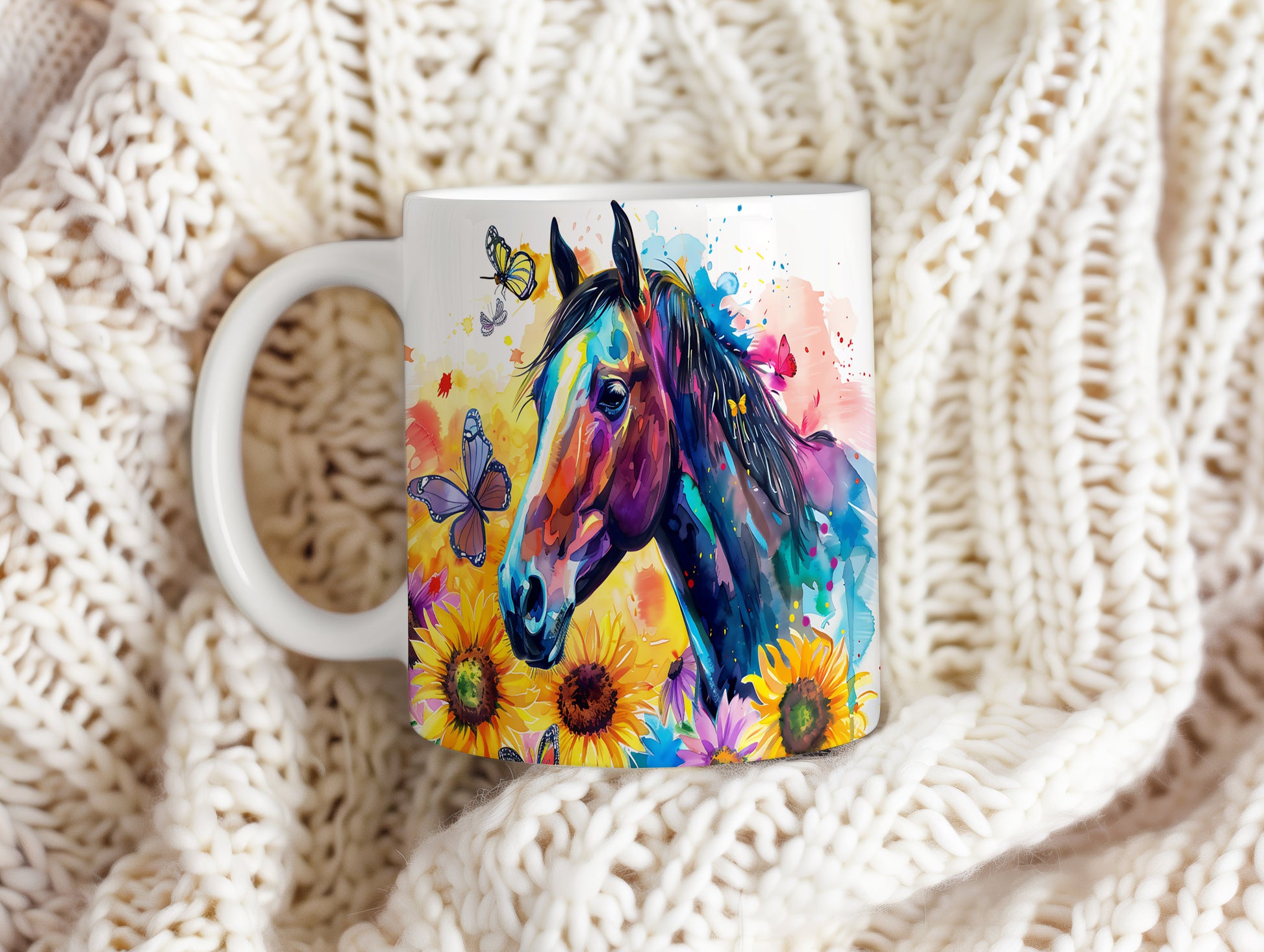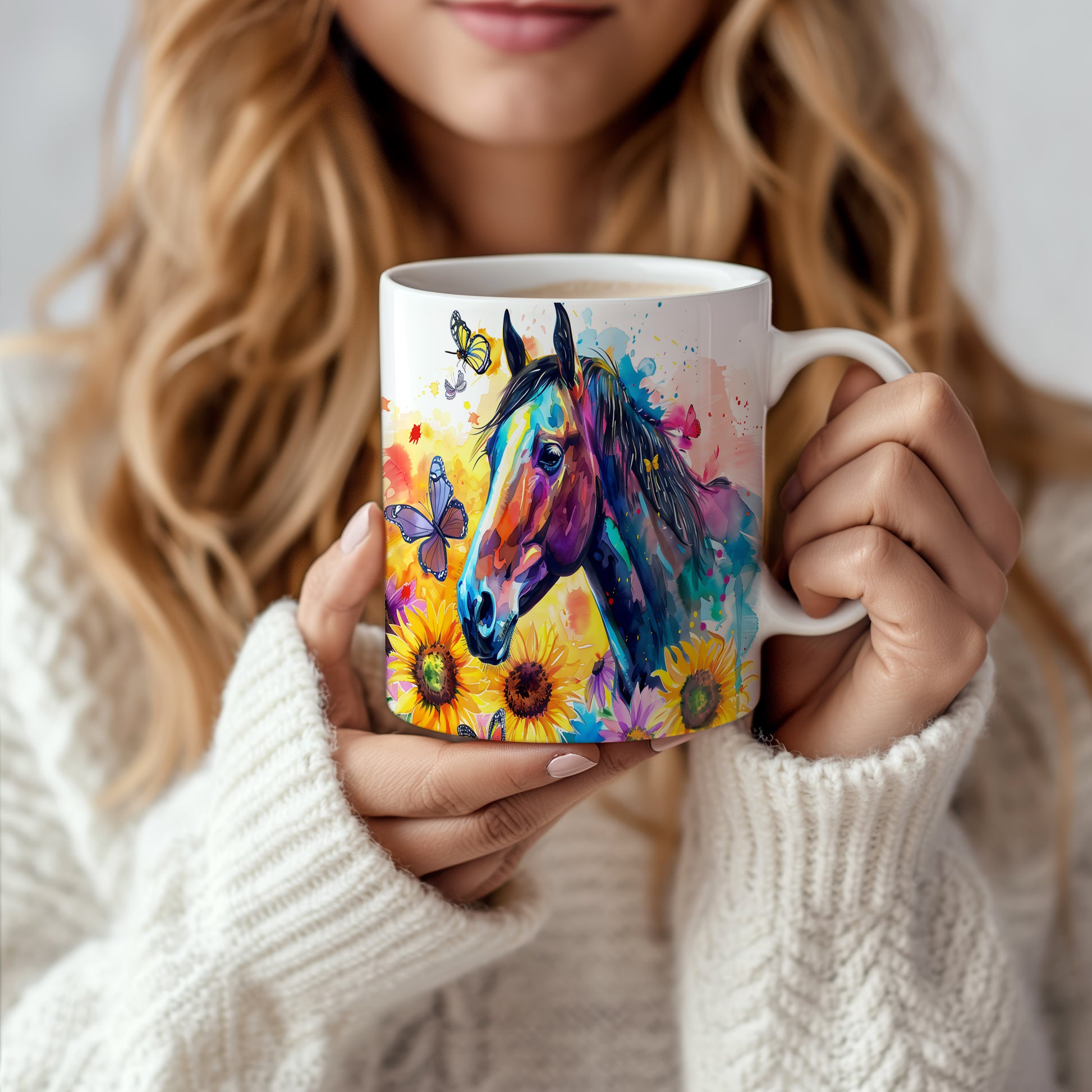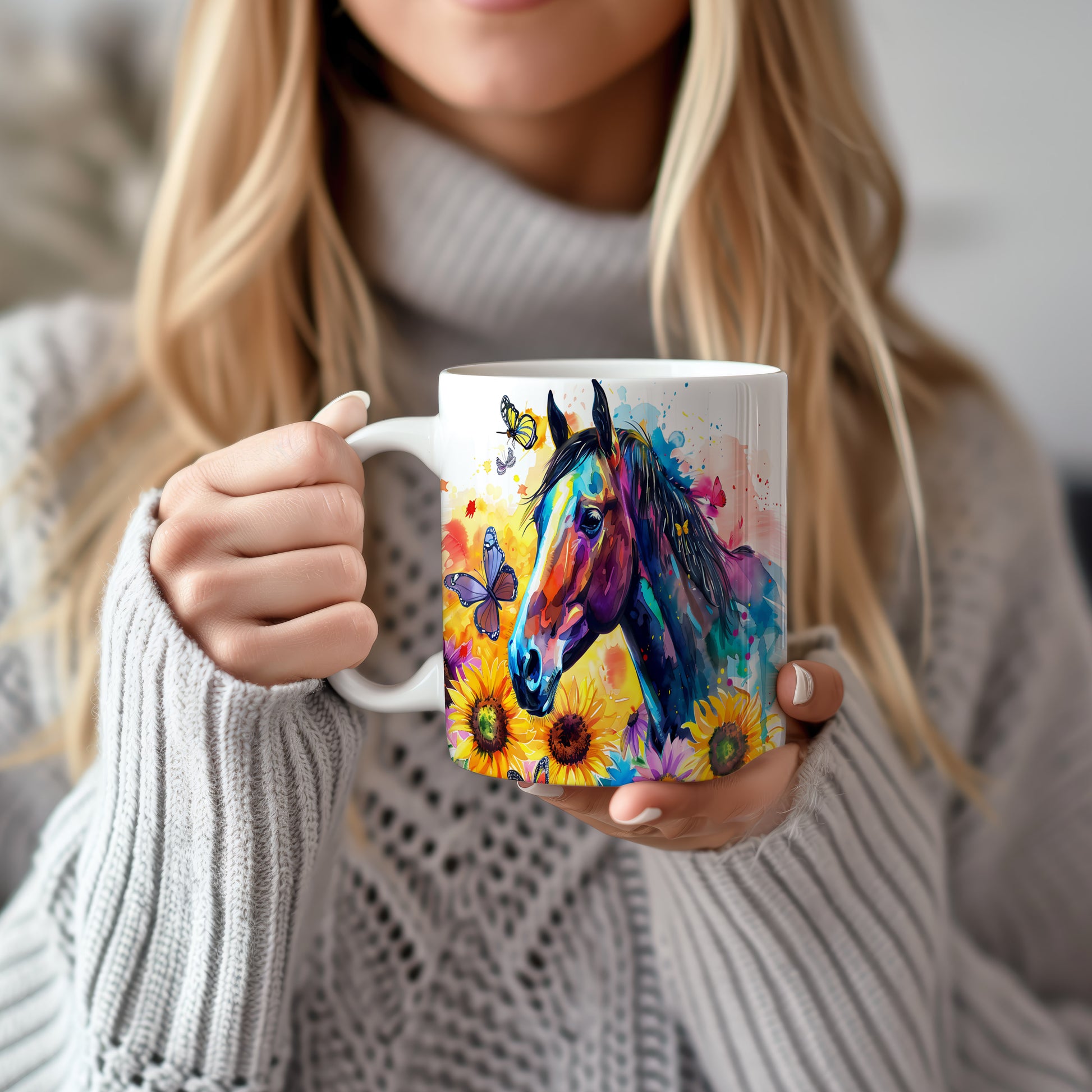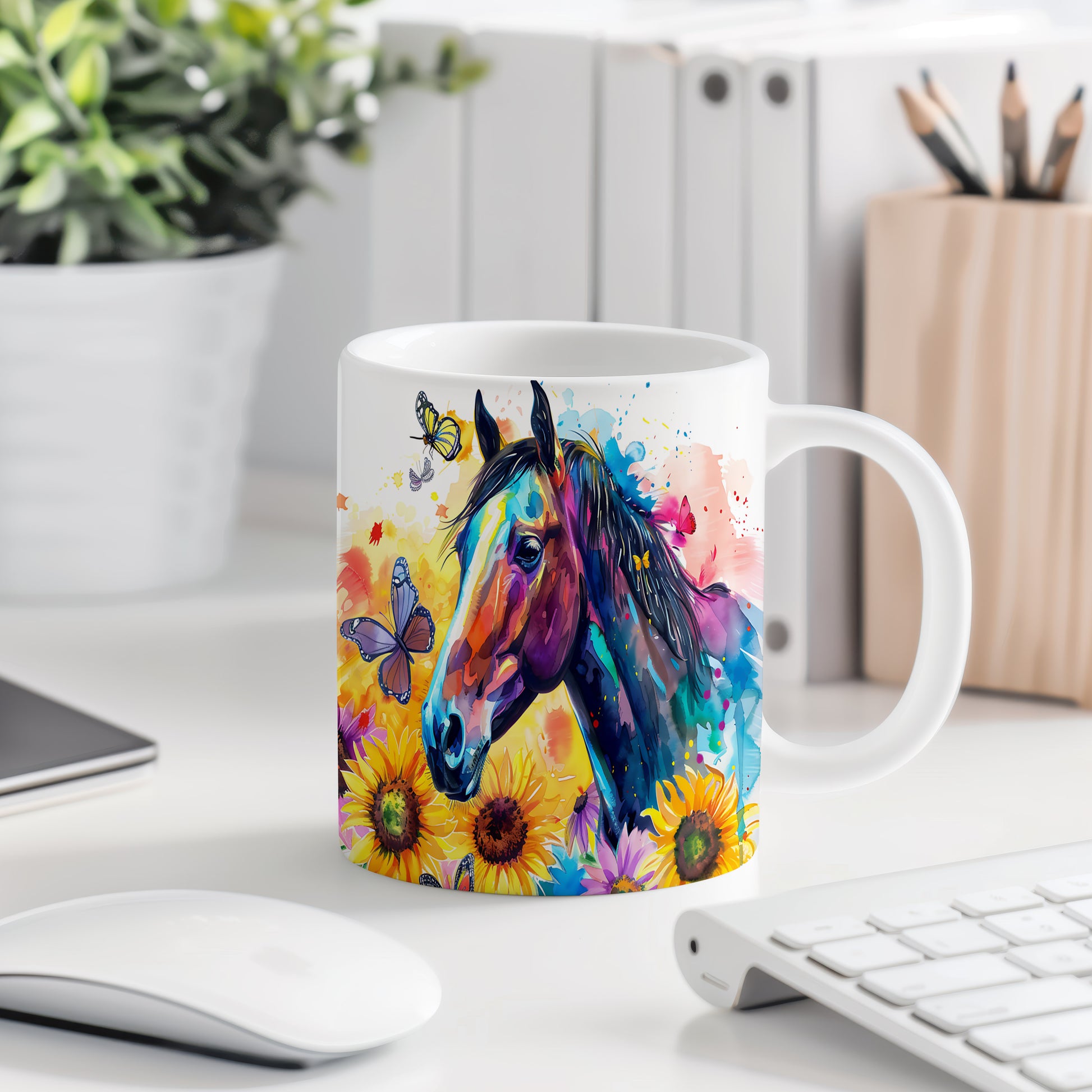 Tento keramický hrnek s motivem barevného koně a květin je skvělou volbou pro milovníky přírody a zvířat. Je ideální jako dárek pro přátele nebo rodinu, kteří ocení originální design. Materiál: keramika. Objem: 330 ml. Vhodné do myčky i mikrovlnky. Díky svému jedinečnému vzhledu přináší do každodenního pití radost a styl.