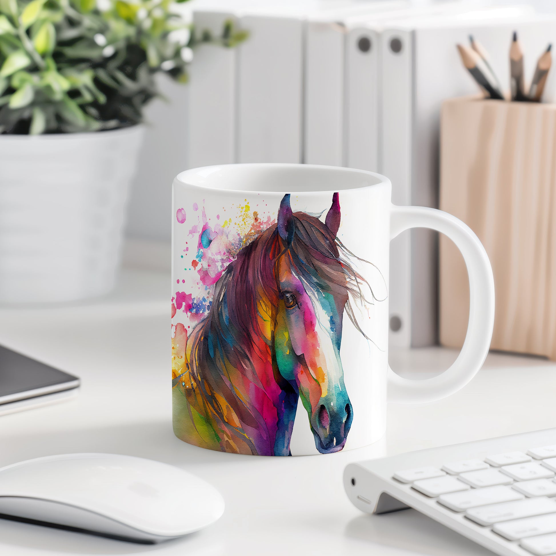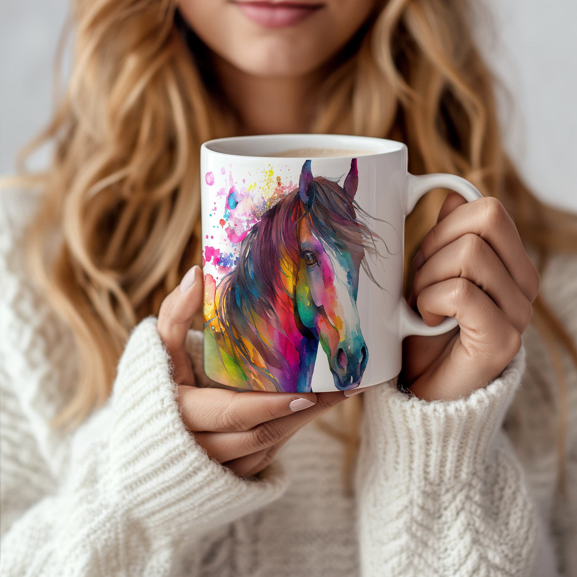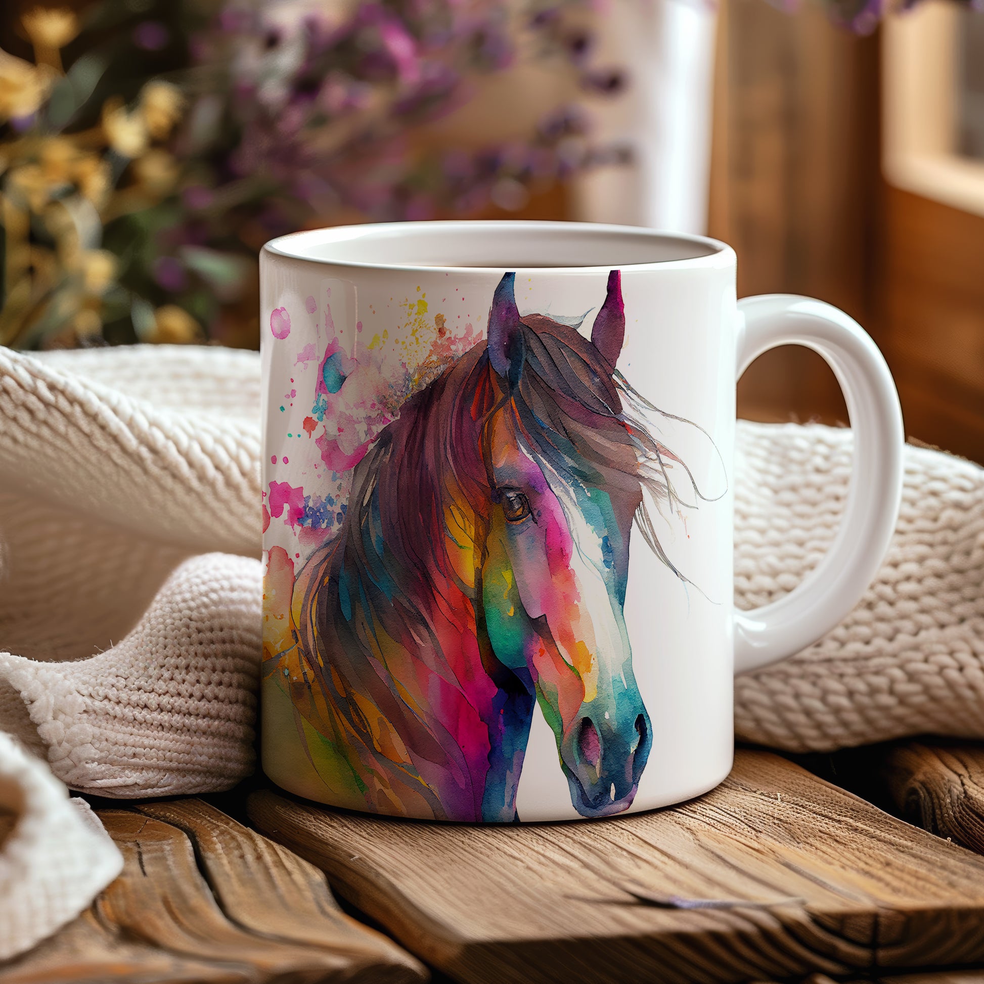 Keramický hrnek s akvarelovým motivem krásného koně. Tento hrnek je ideální pro milovníky koní a skvěle se hodí jako dárek pro každého, kdo ocení krásu přírody. Materiál: keramika. Objem: 330 ml. Vhodné do myčky i mikrovlnky. Používání tohoto hrnku přináší radost při každém doušku.