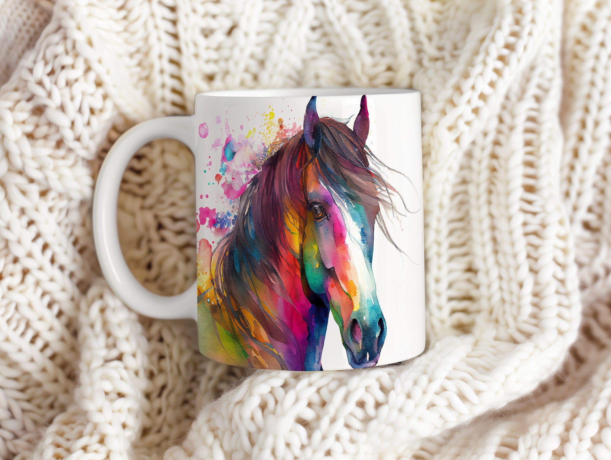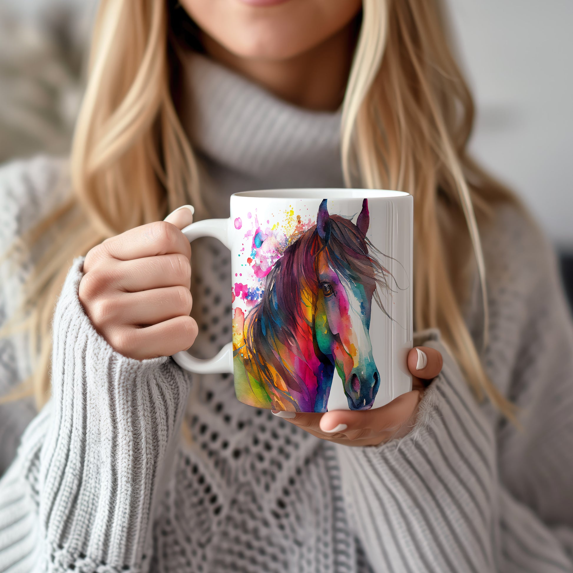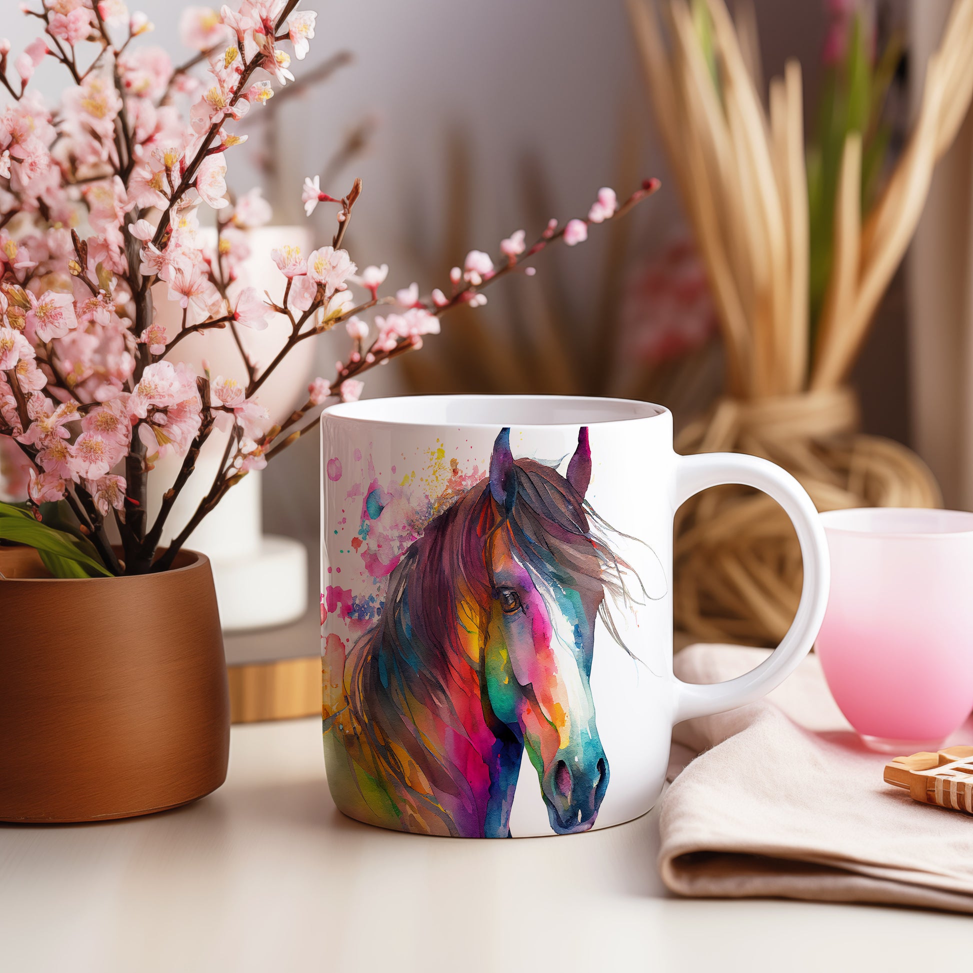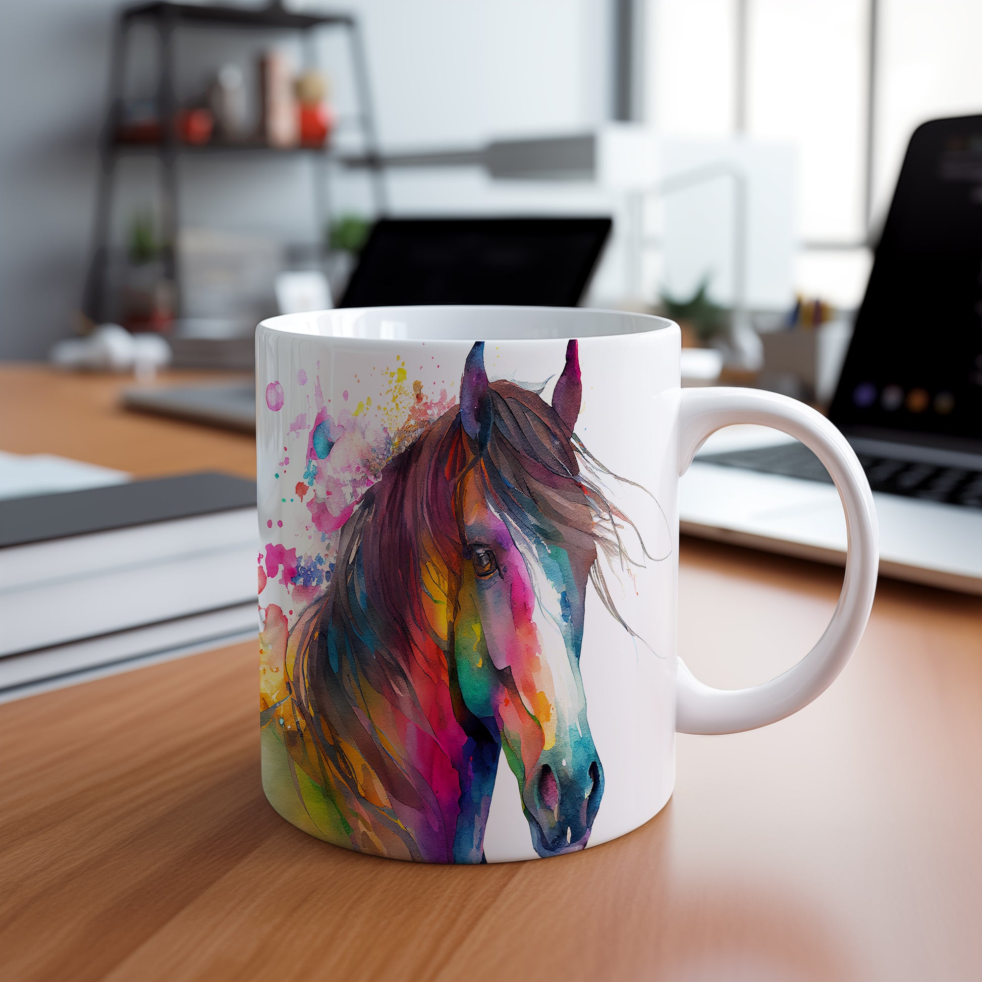 Keramický hrnek s akvarelovým motivem krásného koně. Tento hrnek je ideální pro milovníky koní a skvěle se hodí jako dárek pro každého, kdo ocení krásu přírody. Materiál: keramika. Objem: 330 ml. Vhodné do myčky i mikrovlnky. Používání tohoto hrnku přináší radost při každém doušku.