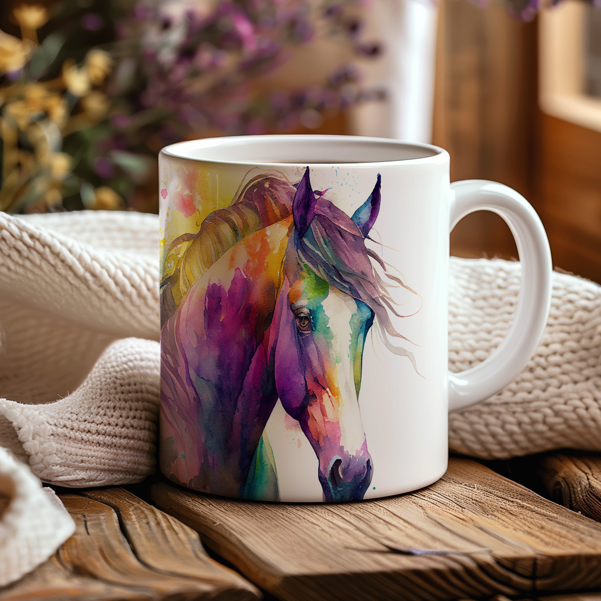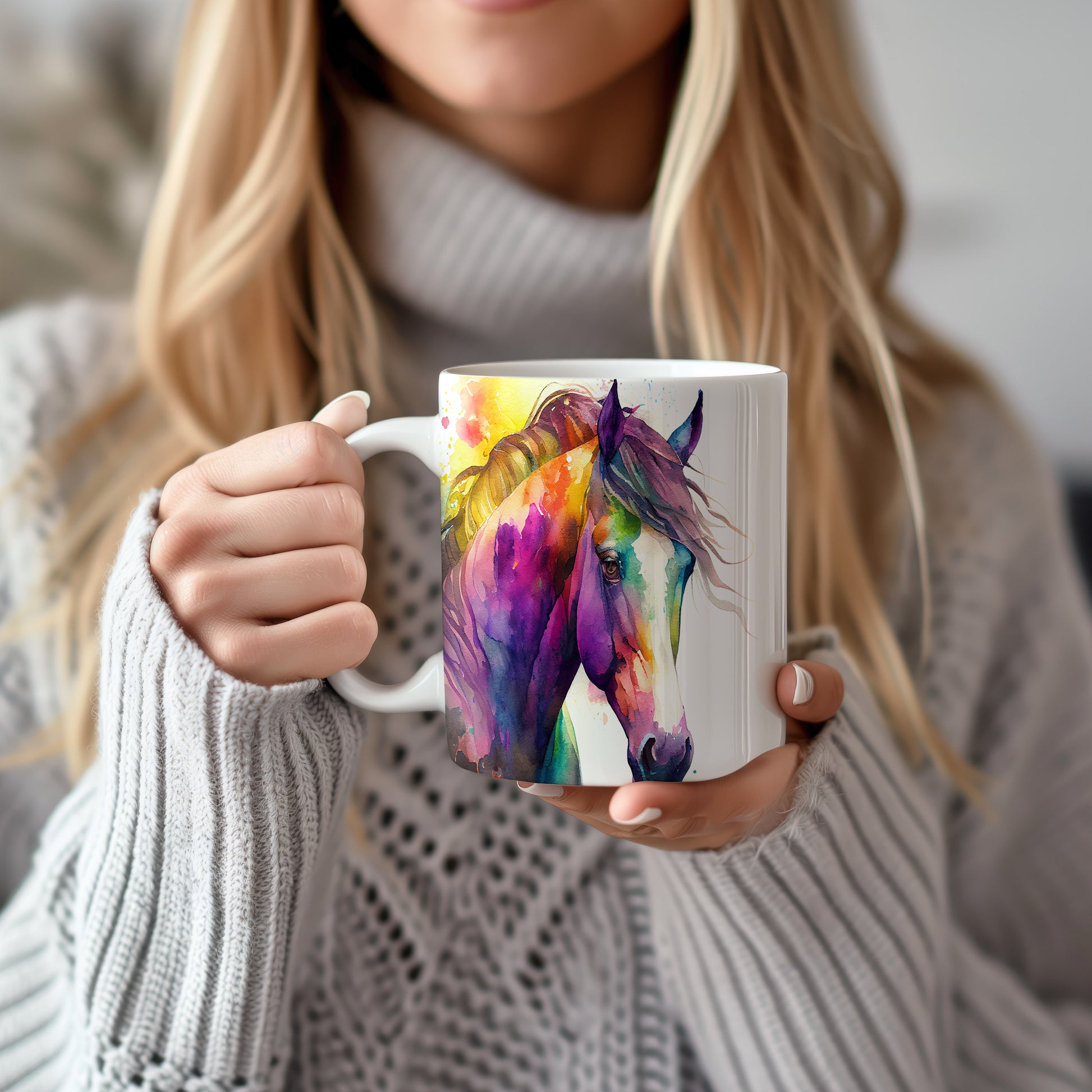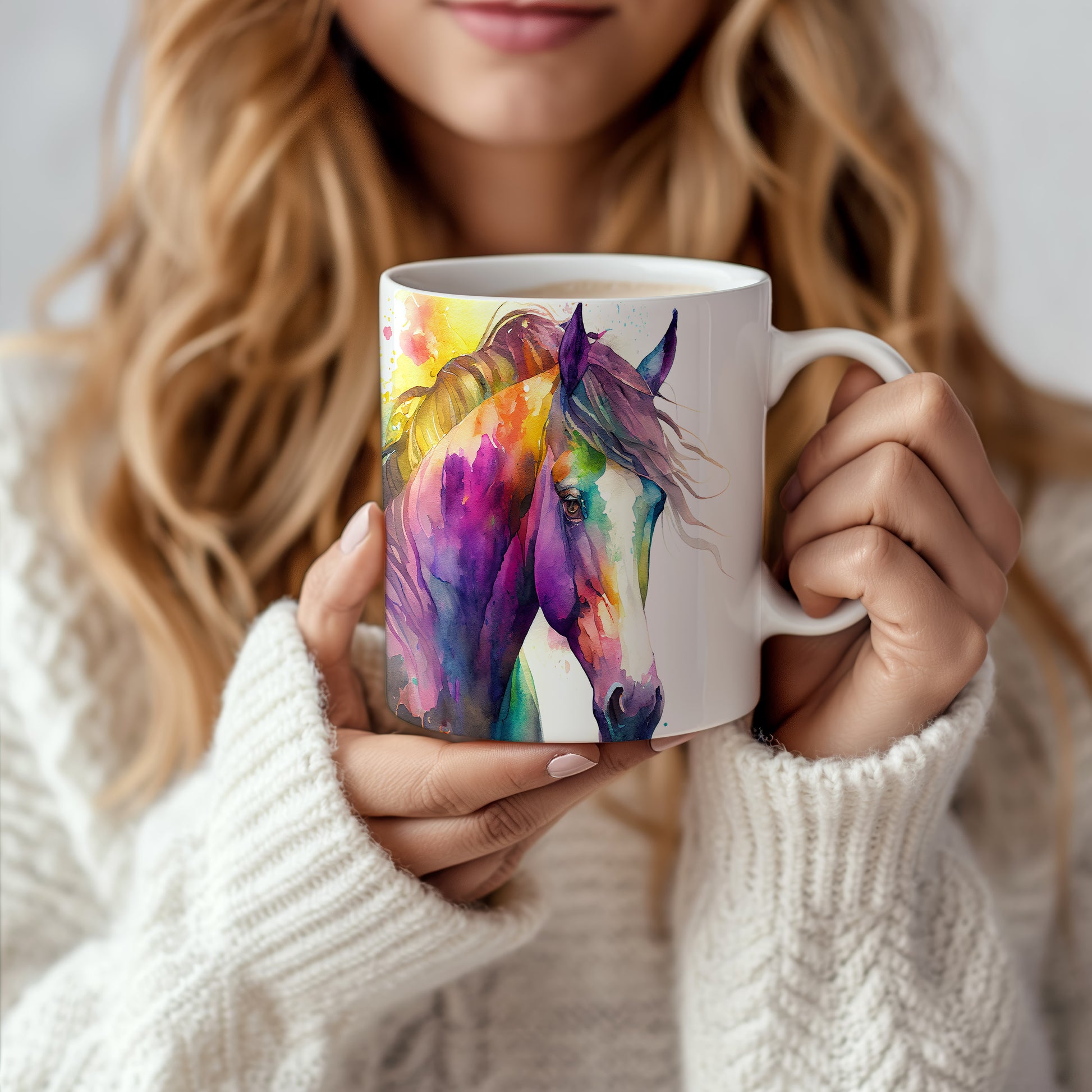 Tento hrnek zobrazuje barevného koně v akvarelovém stylu, který okouzlí každého milovníka koní a umění. Je ideálním dárkem pro přátele nebo rodinu, kteří ocení krásu přírody. Materiál: keramika. Objem: 330 ml. Vhodné do myčky i mikrovlnky. Používáním tohoto hrnku si užijete nejen skvělý design, ale i pohodlné pití oblíbených nápojů.