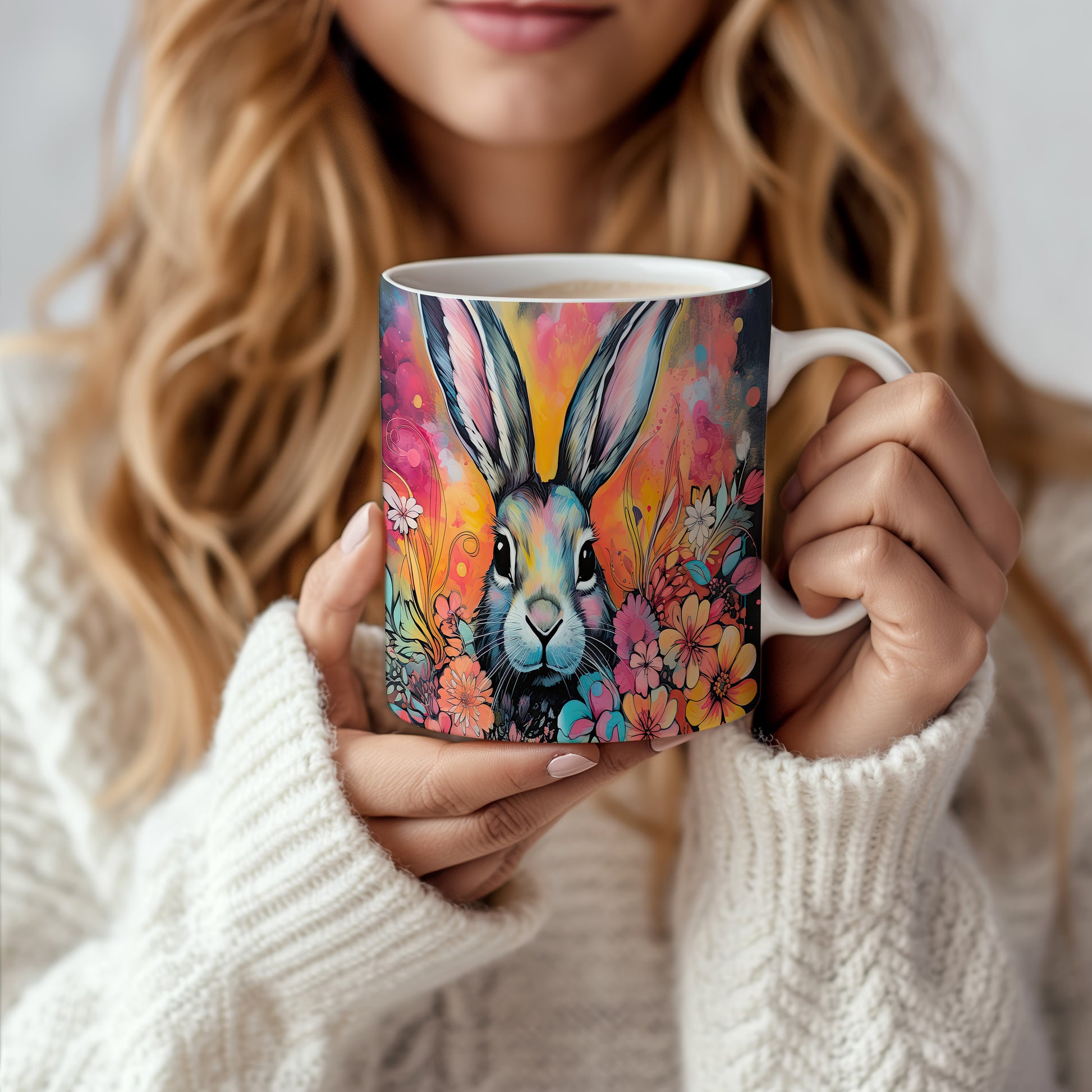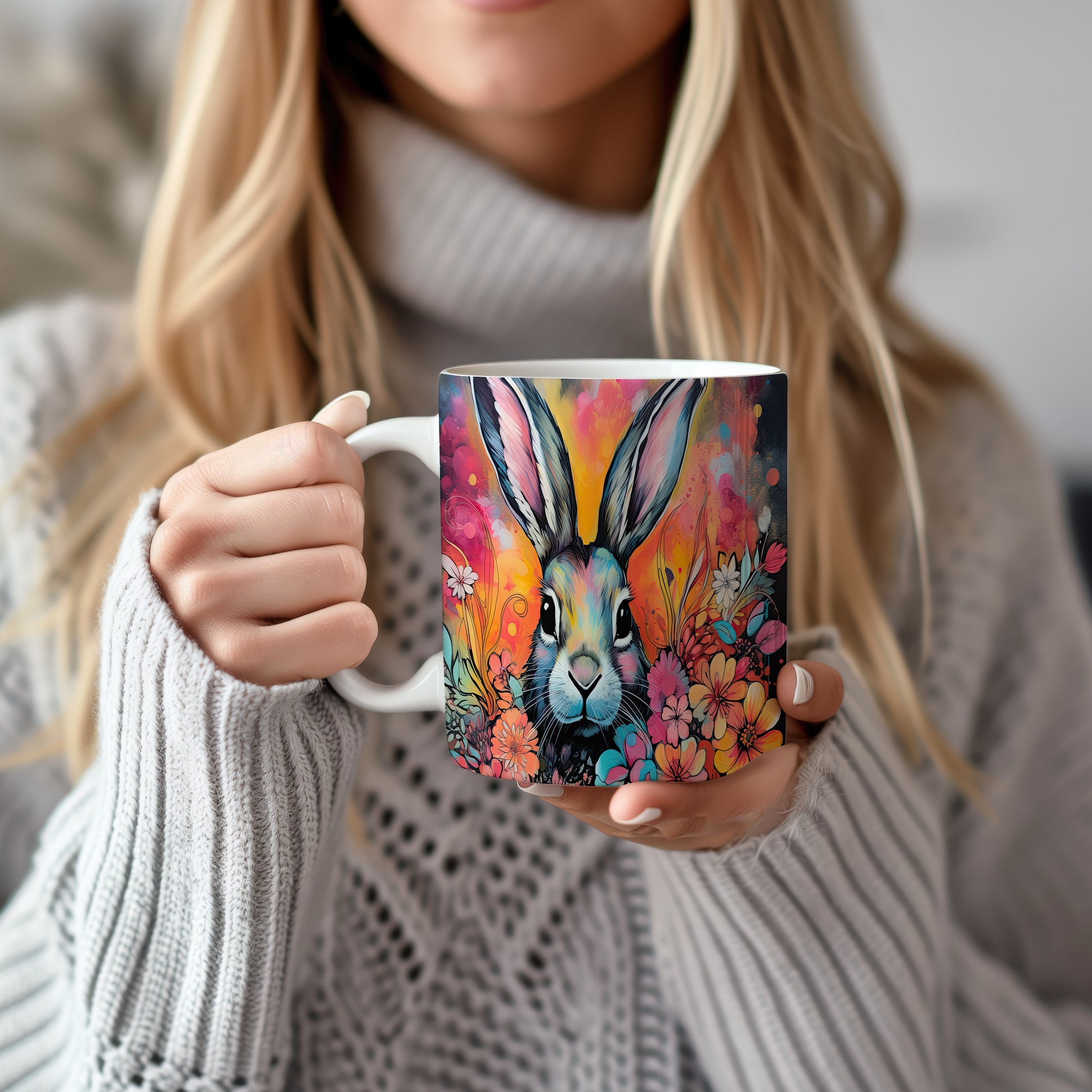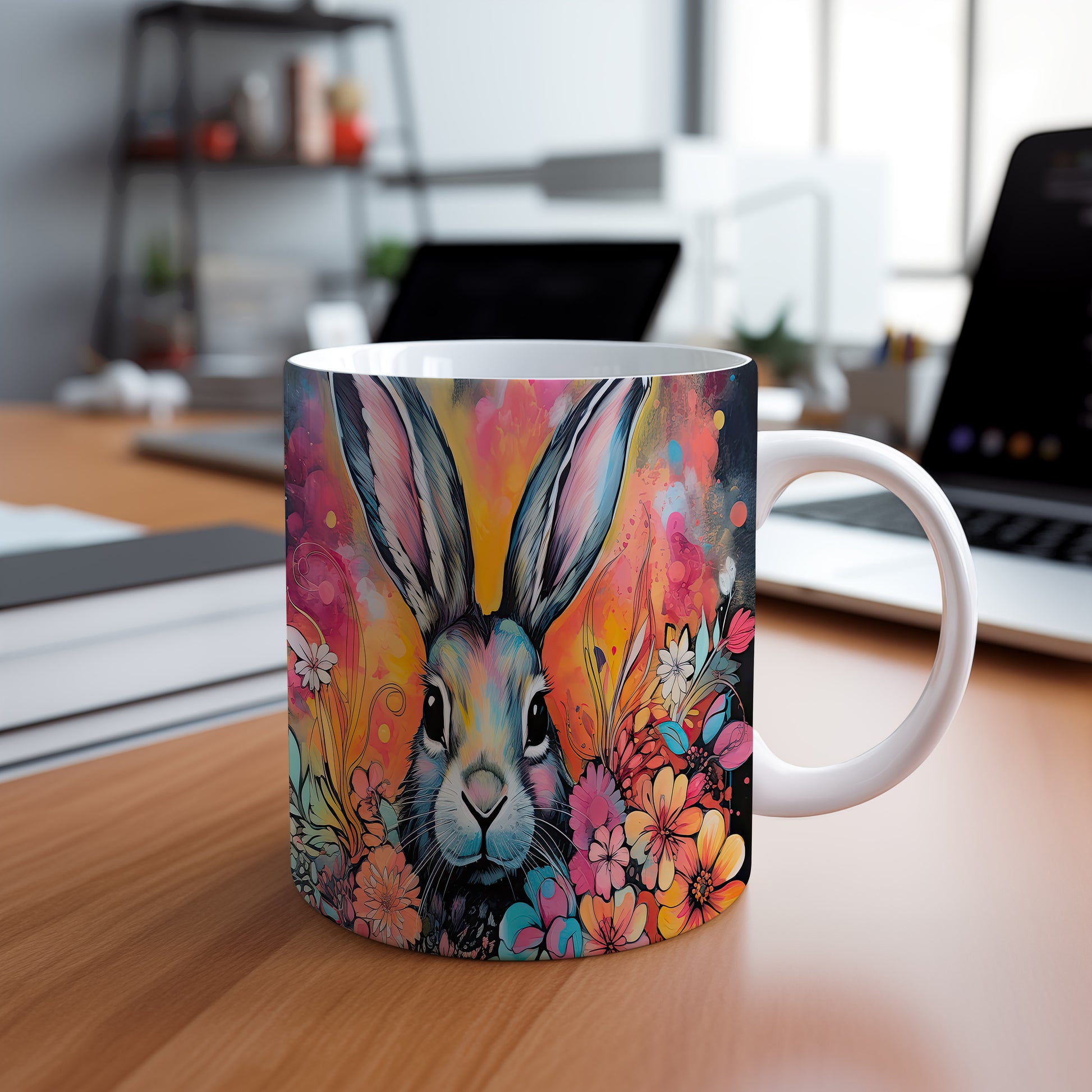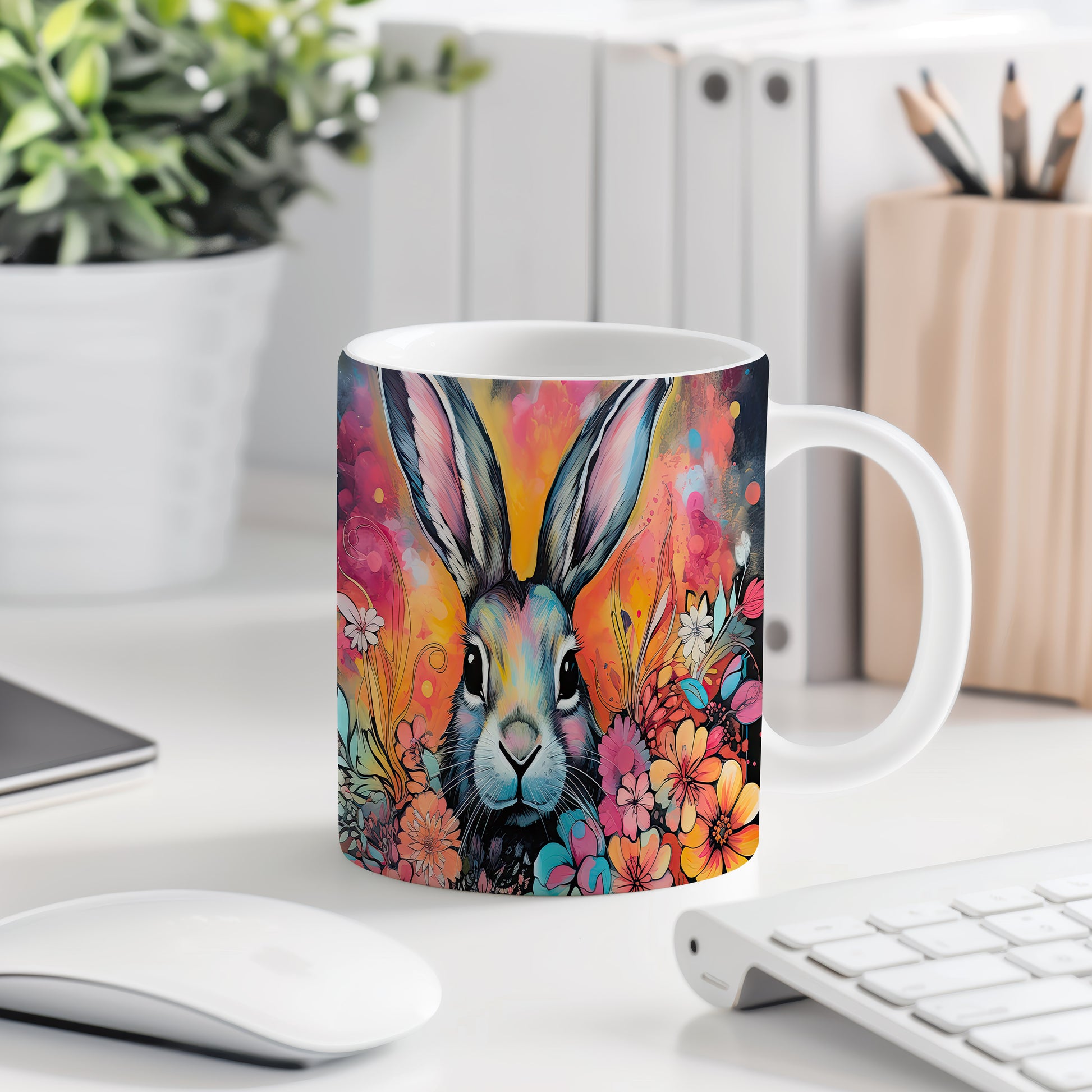 Tento krásný keramický hrnek s motivem barevného králíka a květin je ideální pro milovníky přírody a zvířat. Skvěle se hodí jako dárek pro děti nebo přátele, kteří ocení originální design. Materiál: keramika. Objem: 330 ml. Vhodné do myčky i mikrovlnky. Díky svému jedinečnému vzhledu přinese do vašeho každodenního pití radost a pohodu.