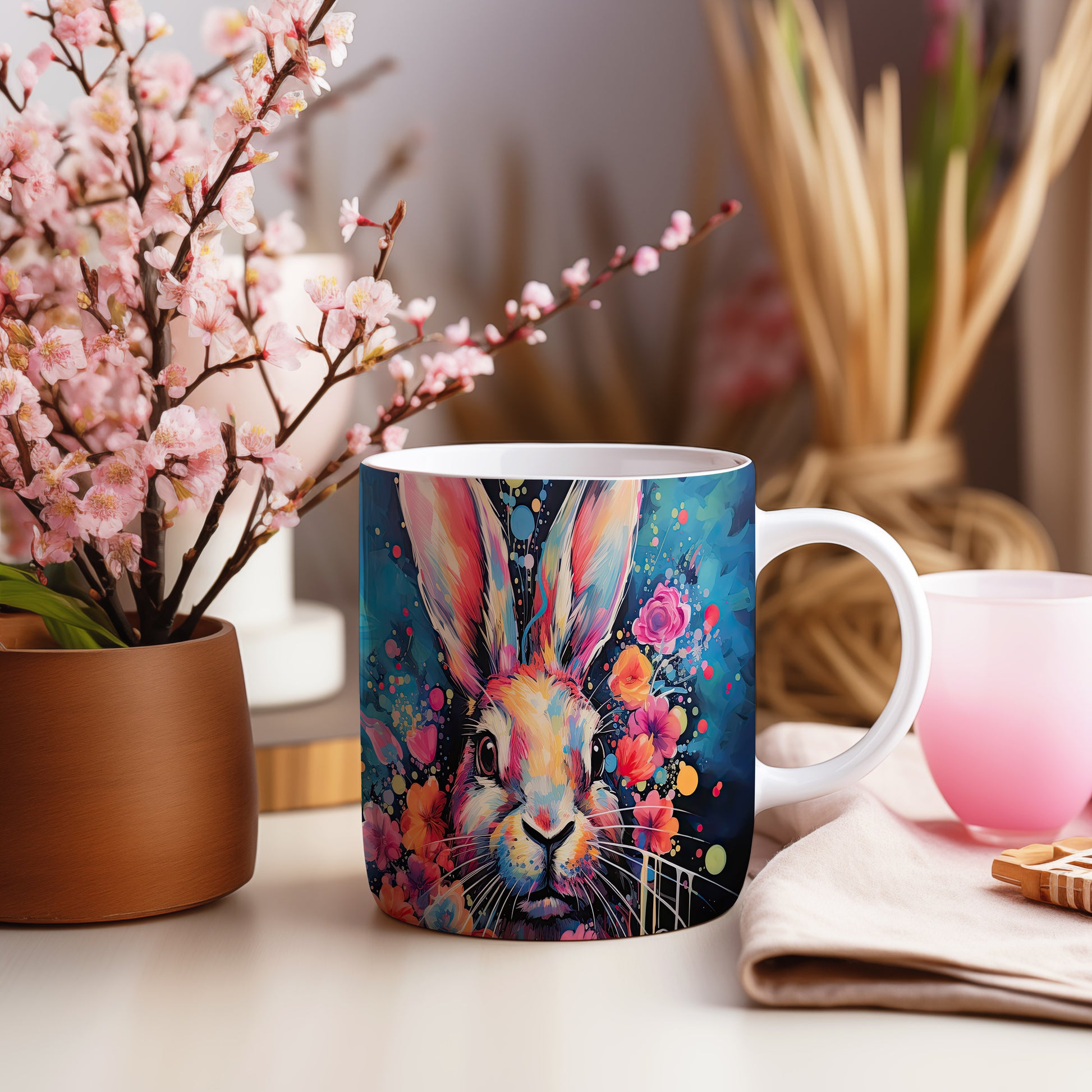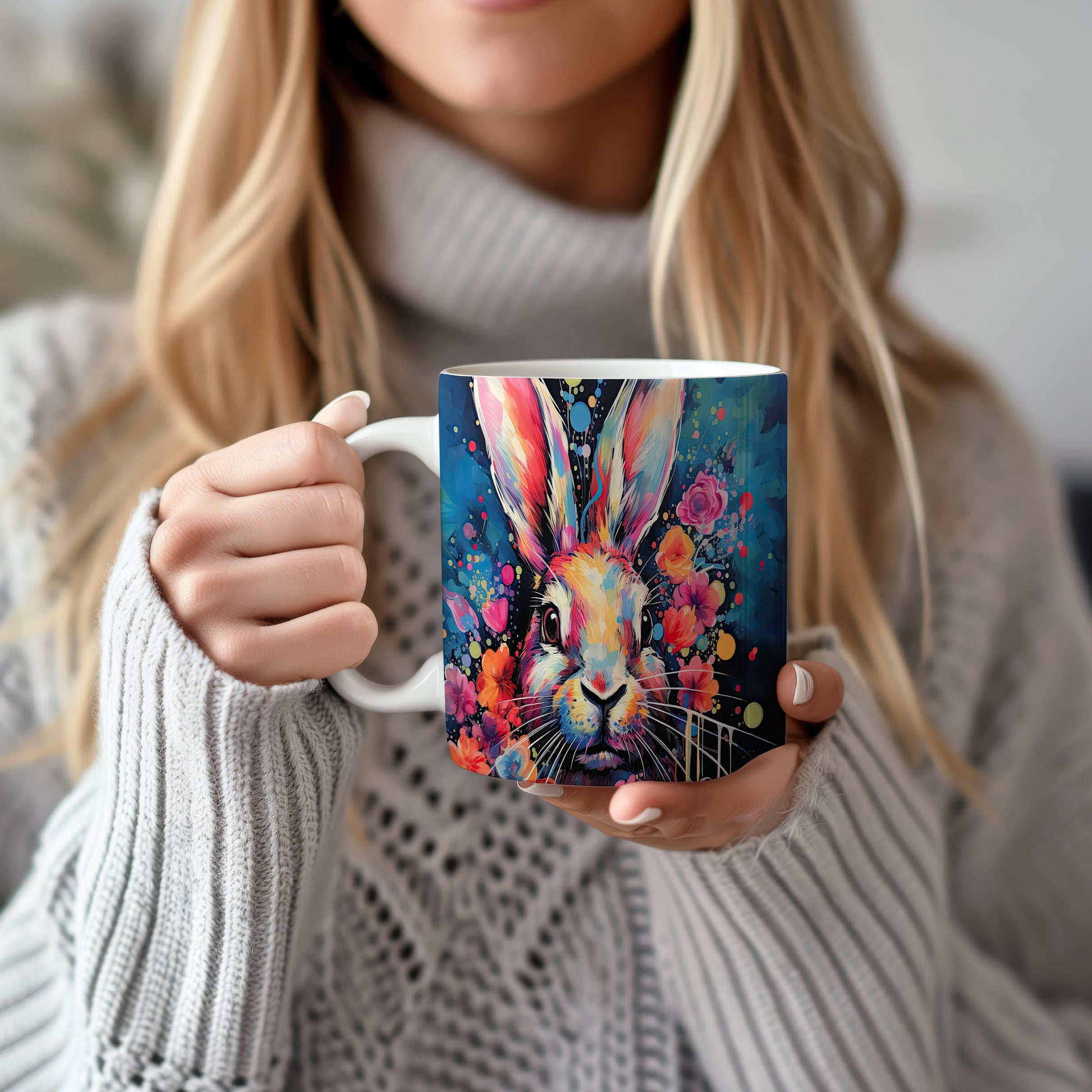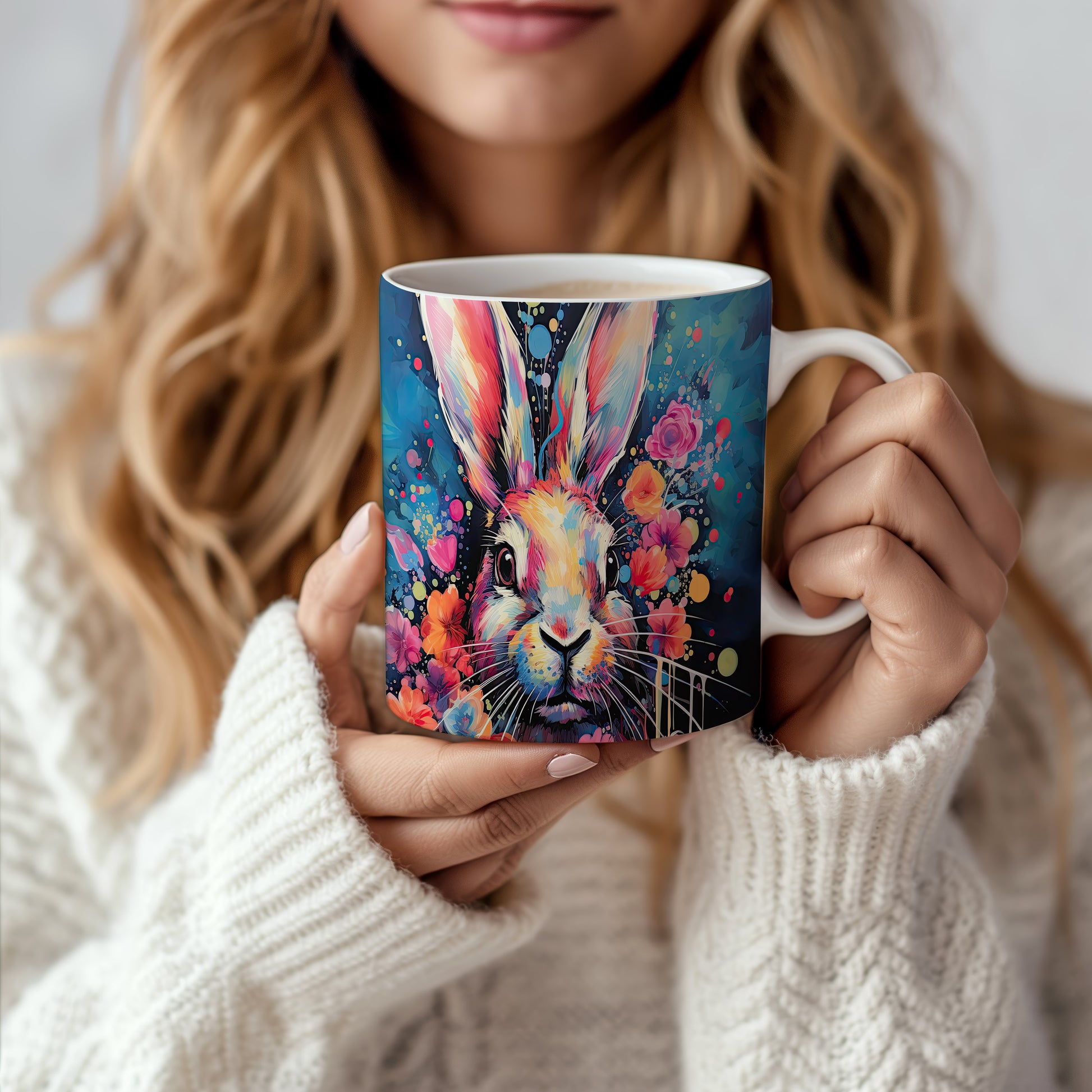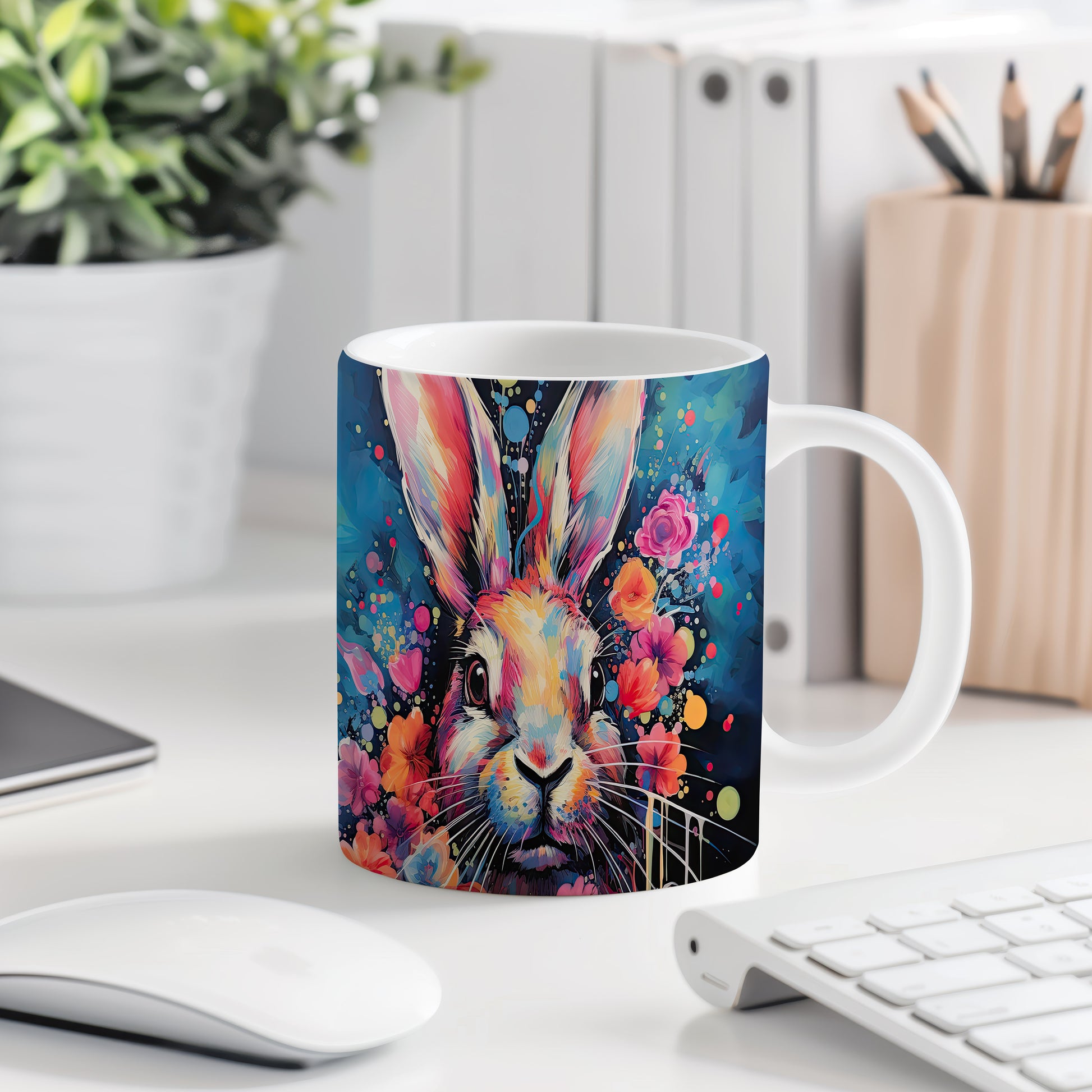 Hrnek s barevným králíkem – malířským vzhledem