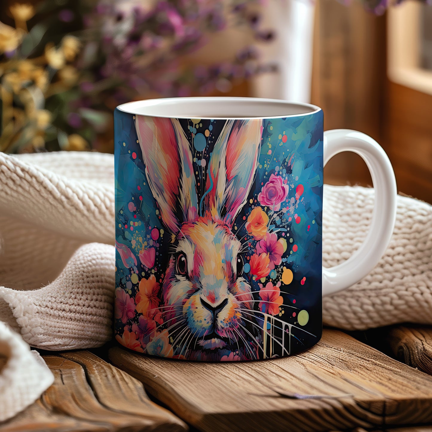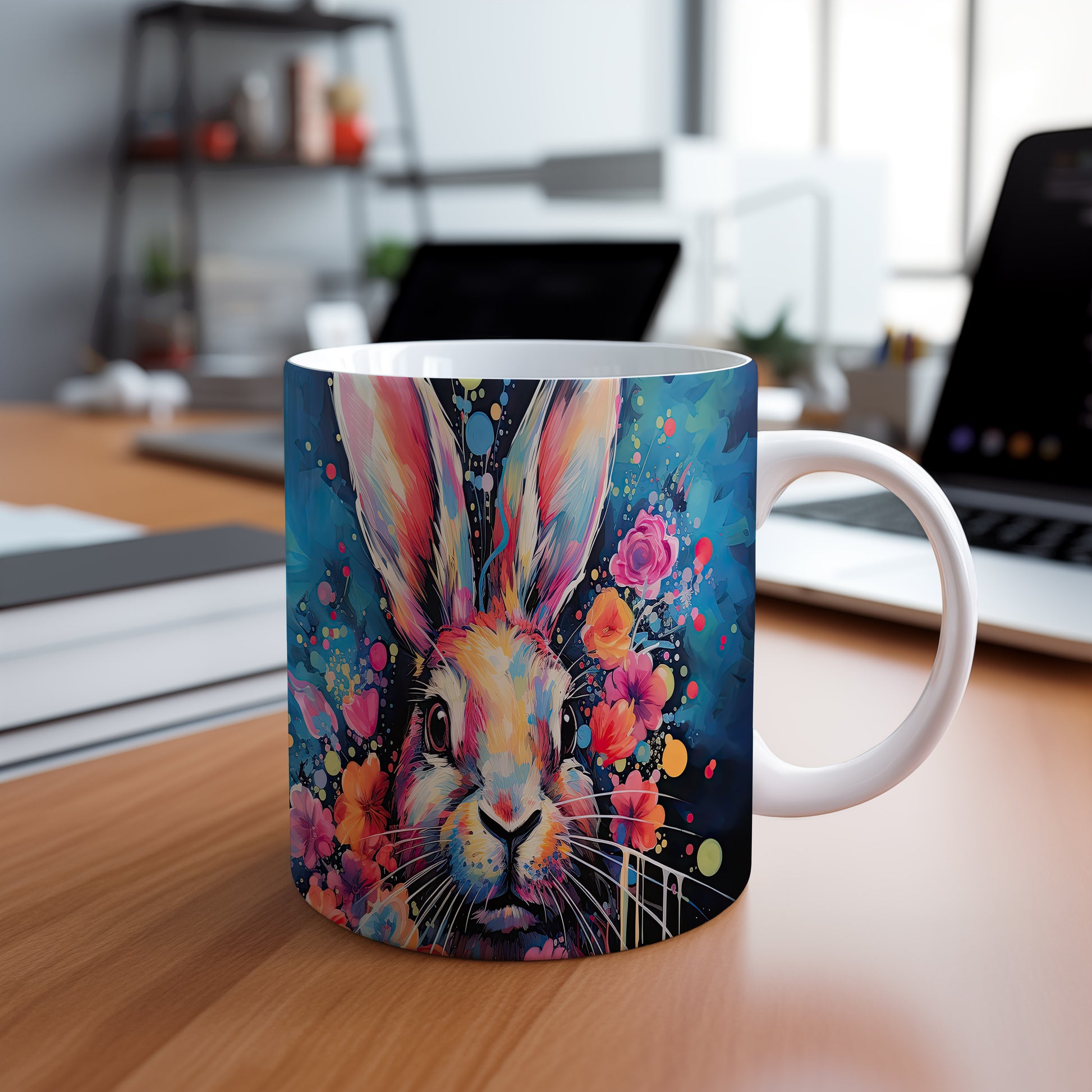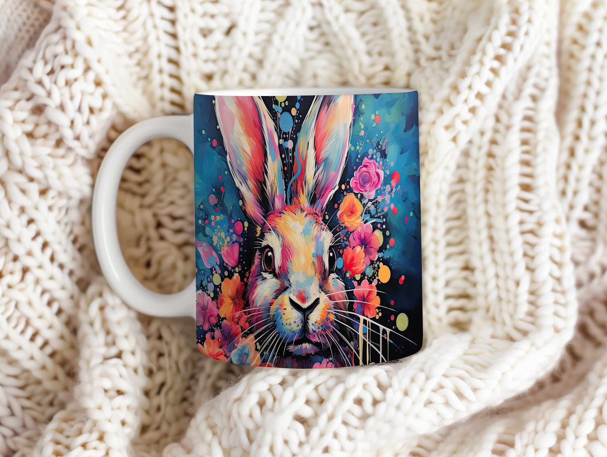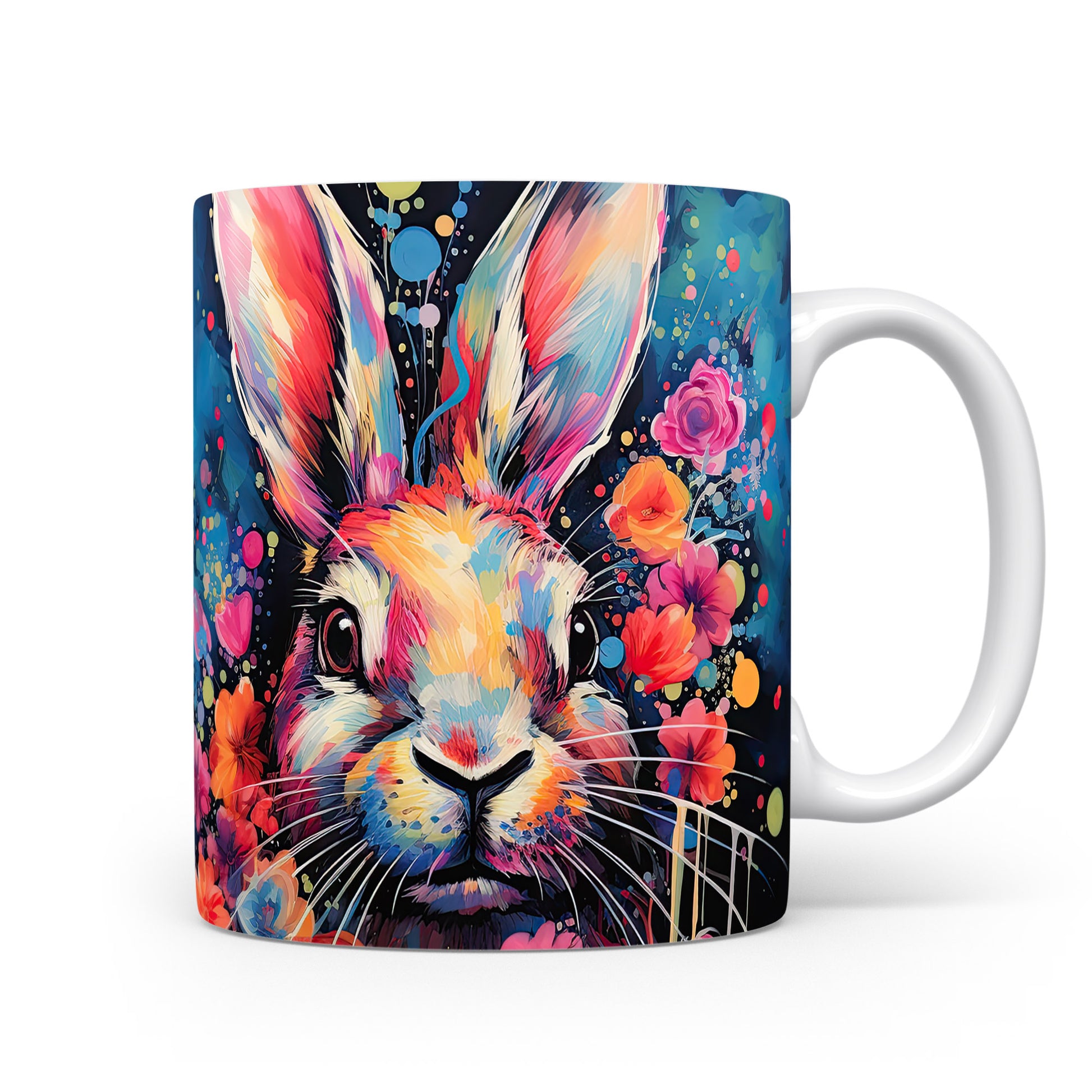 Hrnek s barevným králíkem – malířským vzhledem
