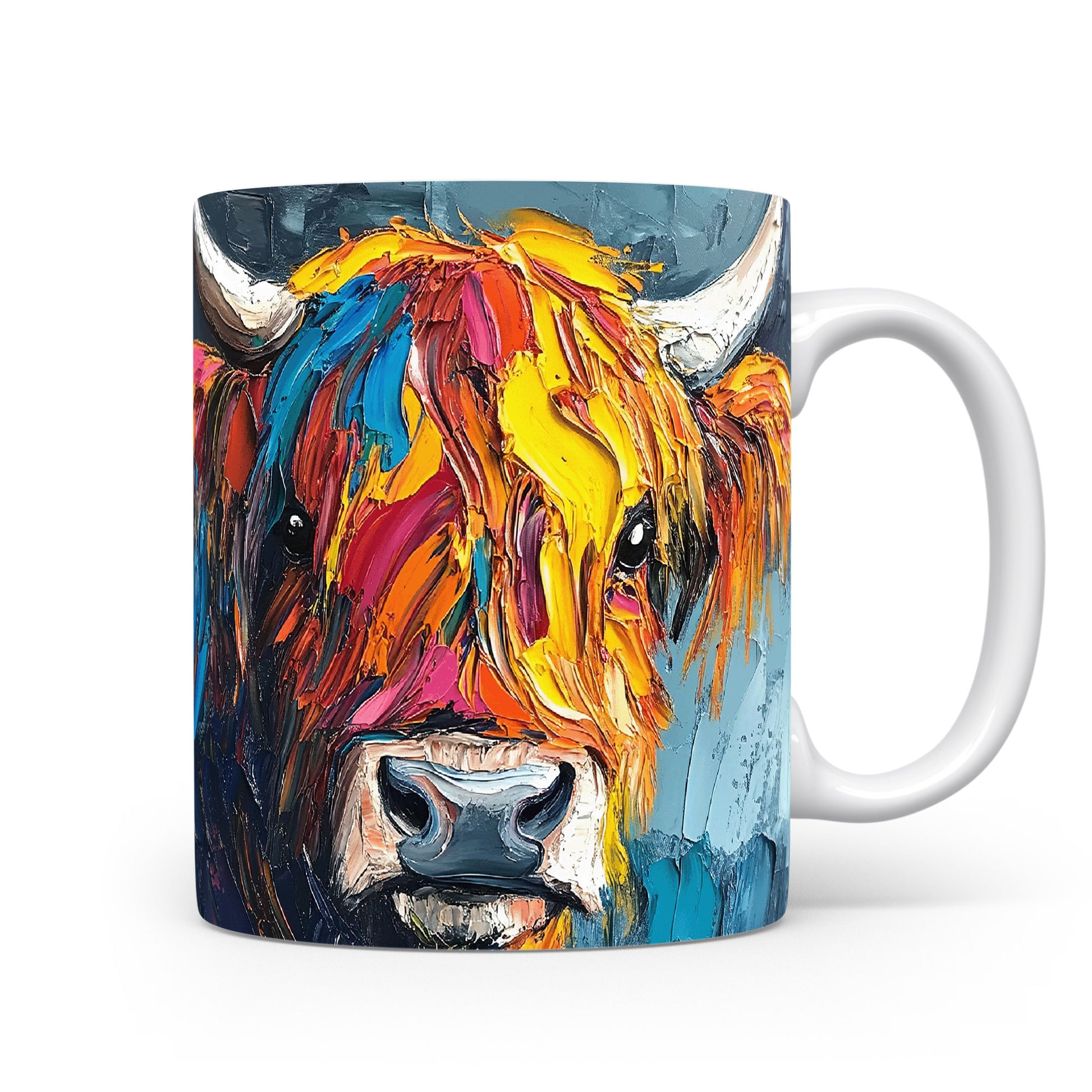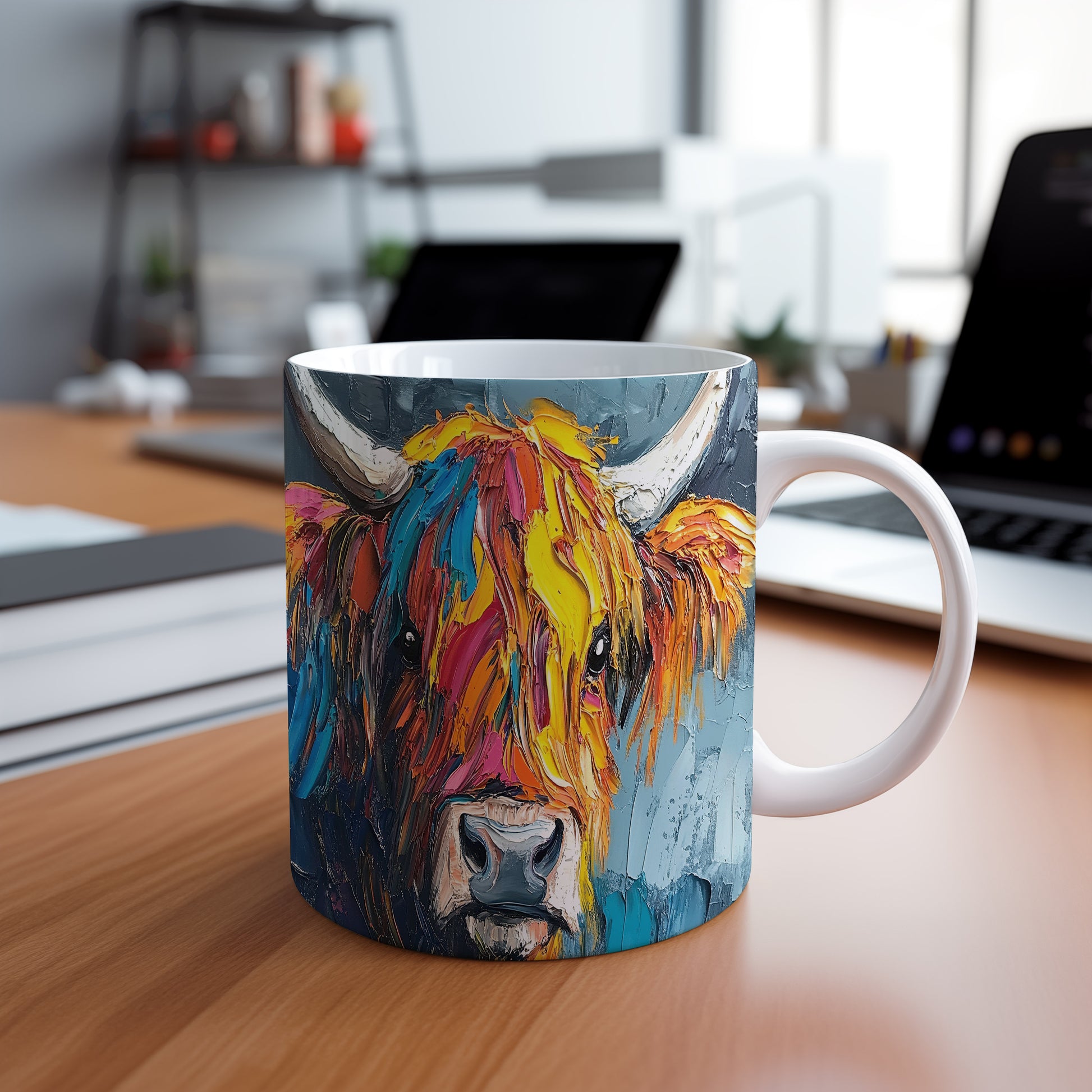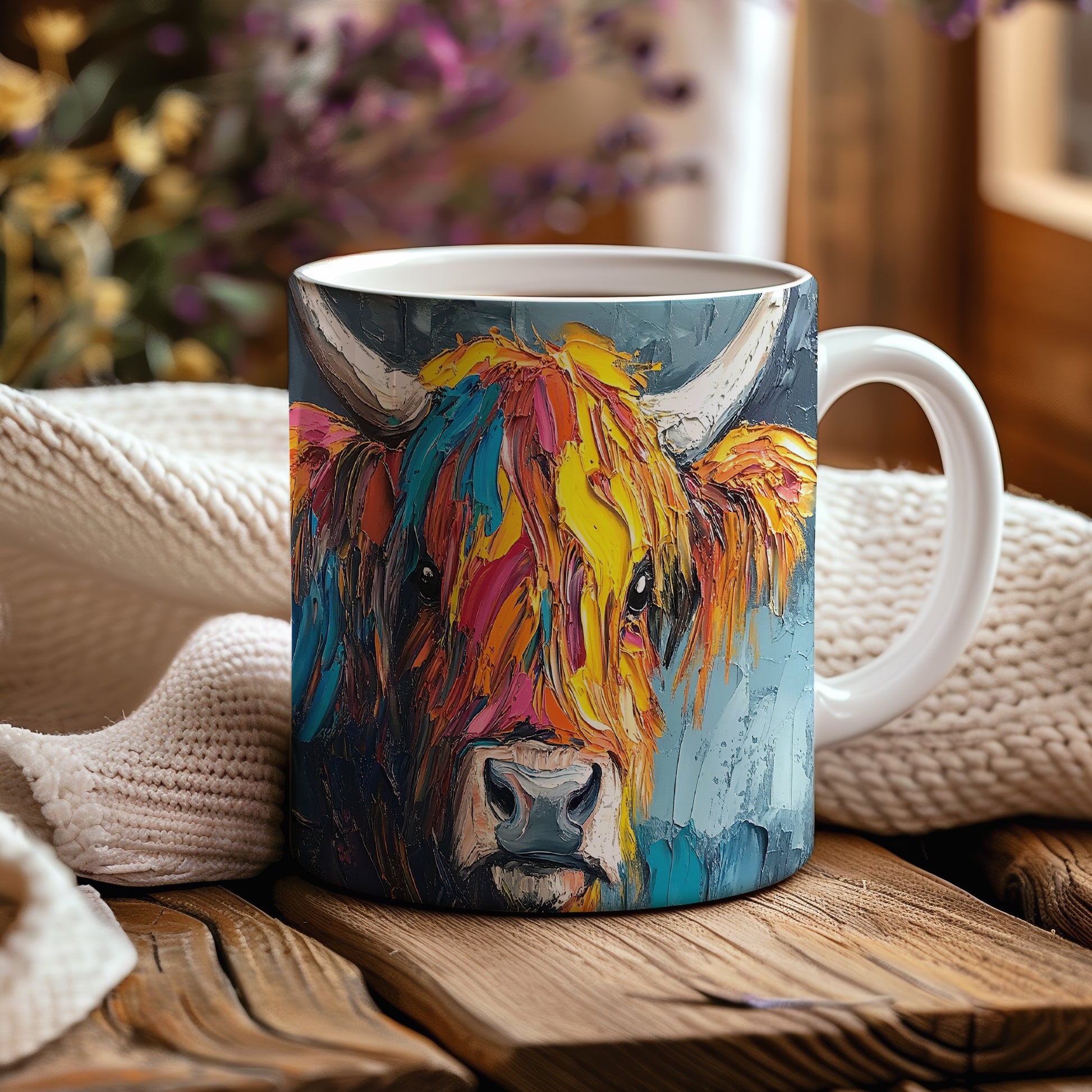 Hrnek s barevným kravským motivem přináší do vašeho dne nádech originality a hravosti. Je ideální pro milovníky zvířat a skvělým dárkem pro přátele nebo rodinu. Materiál: keramika. Objem: 330 ml. Vhodné do myčky i mikrovlnky. Tento hrnek vám zpříjemní každé ráno a dodá vašemu pití osobitý styl.