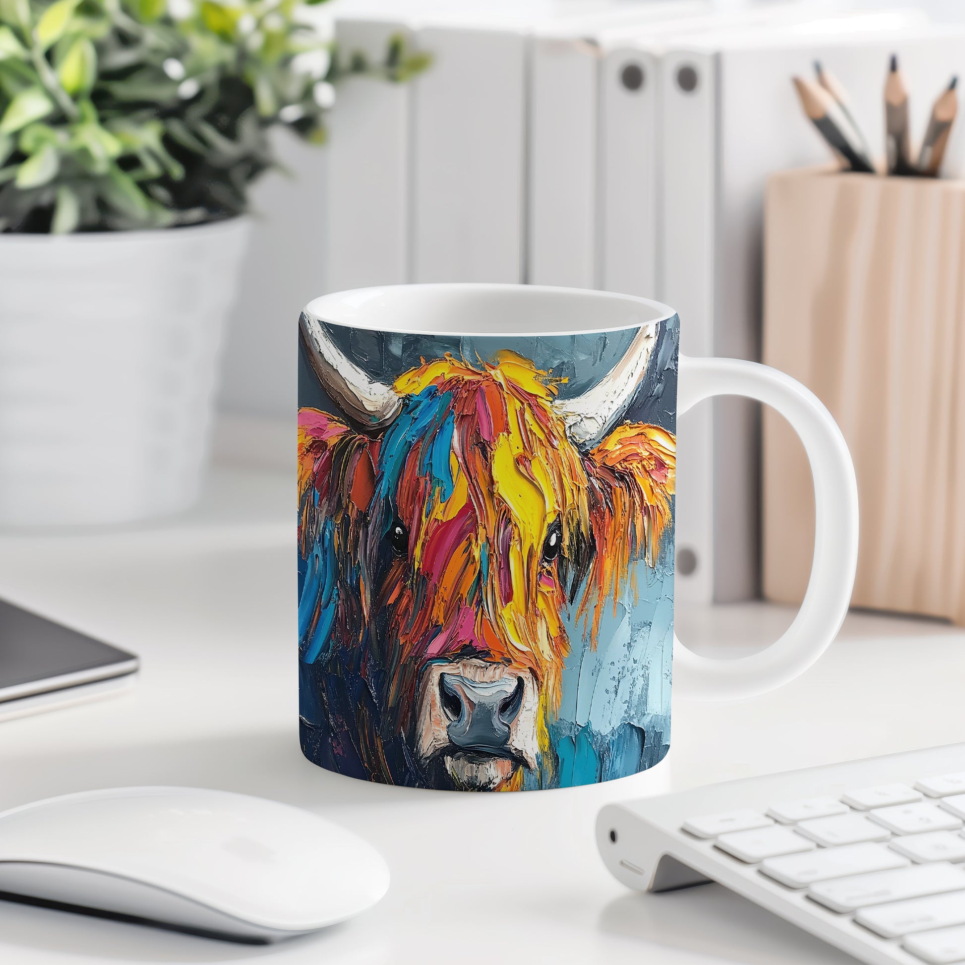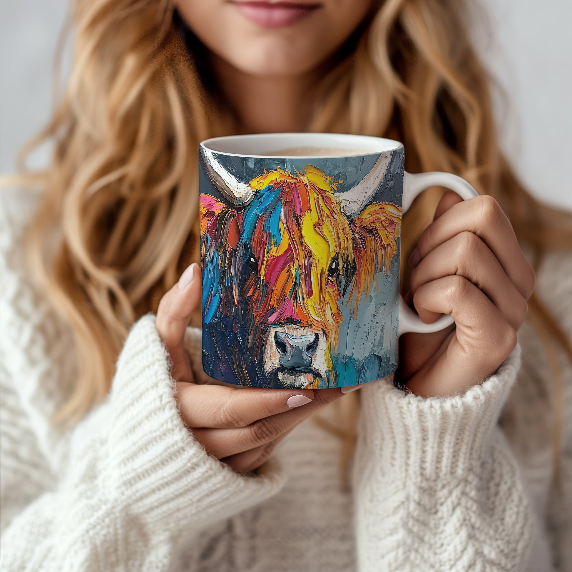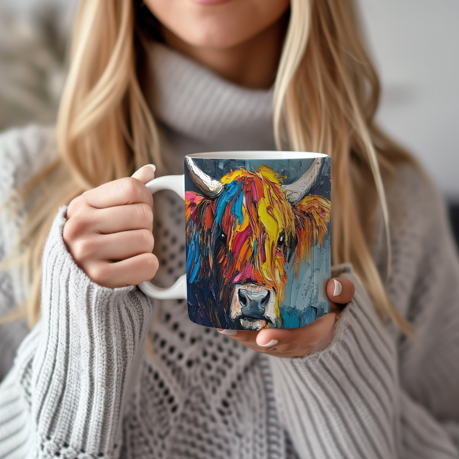 Hrnek s barevným kravským motivem přináší do vašeho dne nádech originality a hravosti. Je ideální pro milovníky zvířat a skvělým dárkem pro přátele nebo rodinu. Materiál: keramika. Objem: 330 ml. Vhodné do myčky i mikrovlnky. Tento hrnek vám zpříjemní každé ráno a dodá vašemu pití osobitý styl.