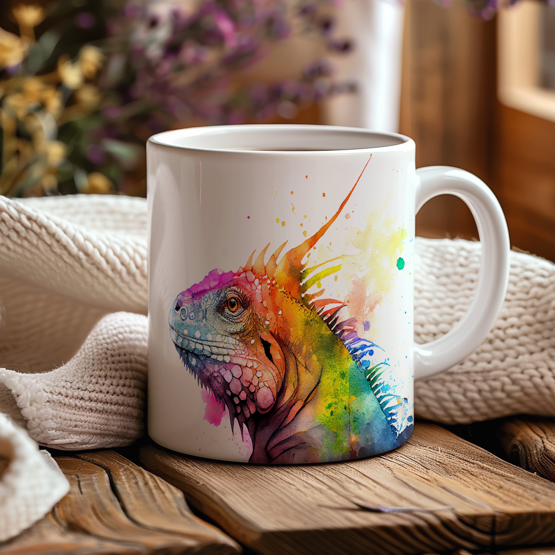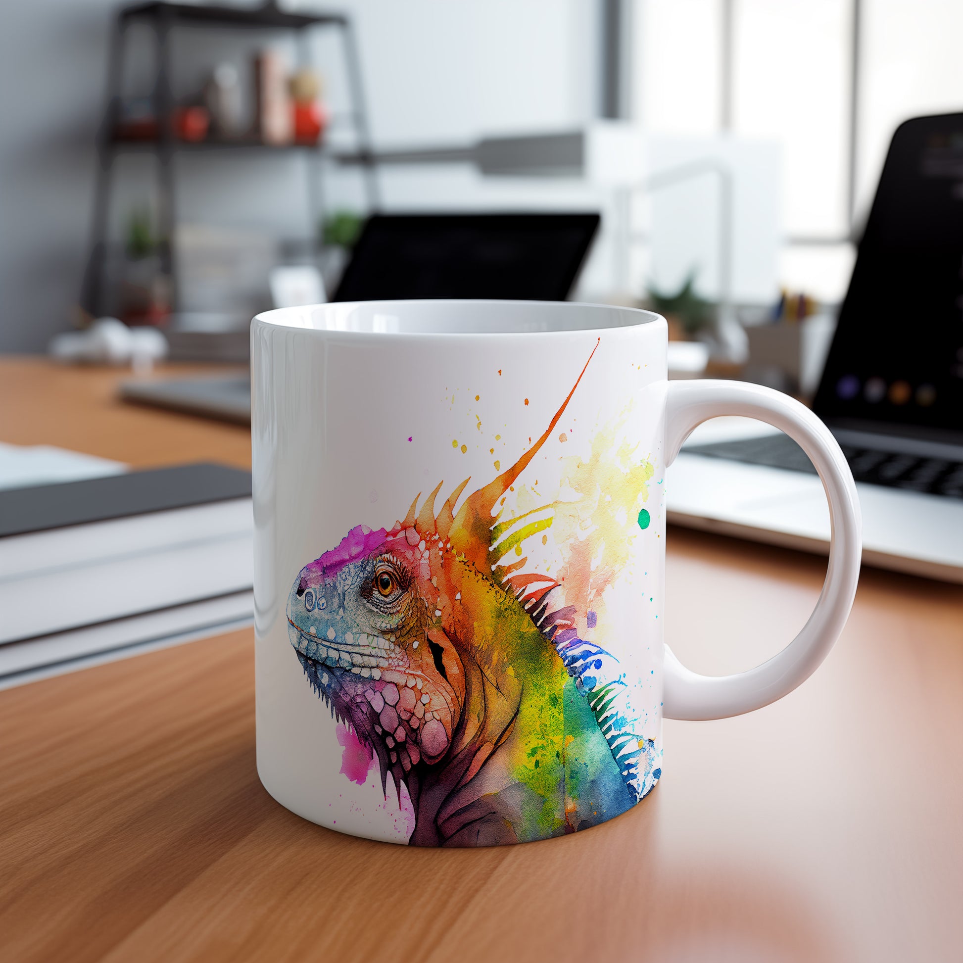 Tento keramický hrnek s realistickým obrazem leguána v pestrých barvách potěší každého milovníka zvířat. Je ideálním dárkem pro přátele nebo rodinu, kteří ocení originální design. Materiál: keramika. Objem: 330 ml. Vhodné do myčky i mikrovlnky. Používání tohoto hrnku přináší radost z každého doušku.