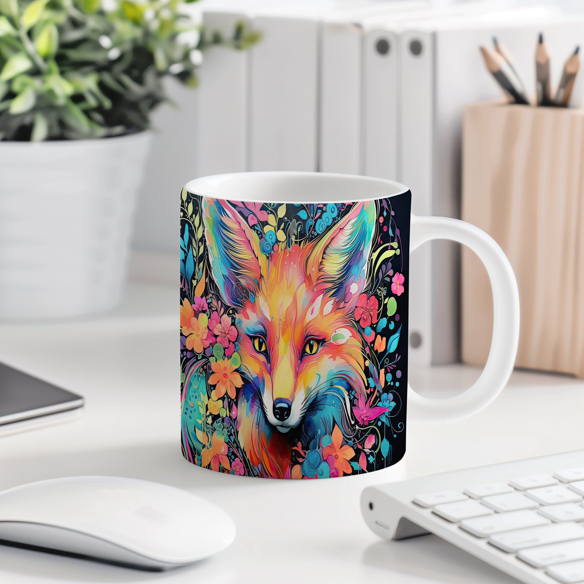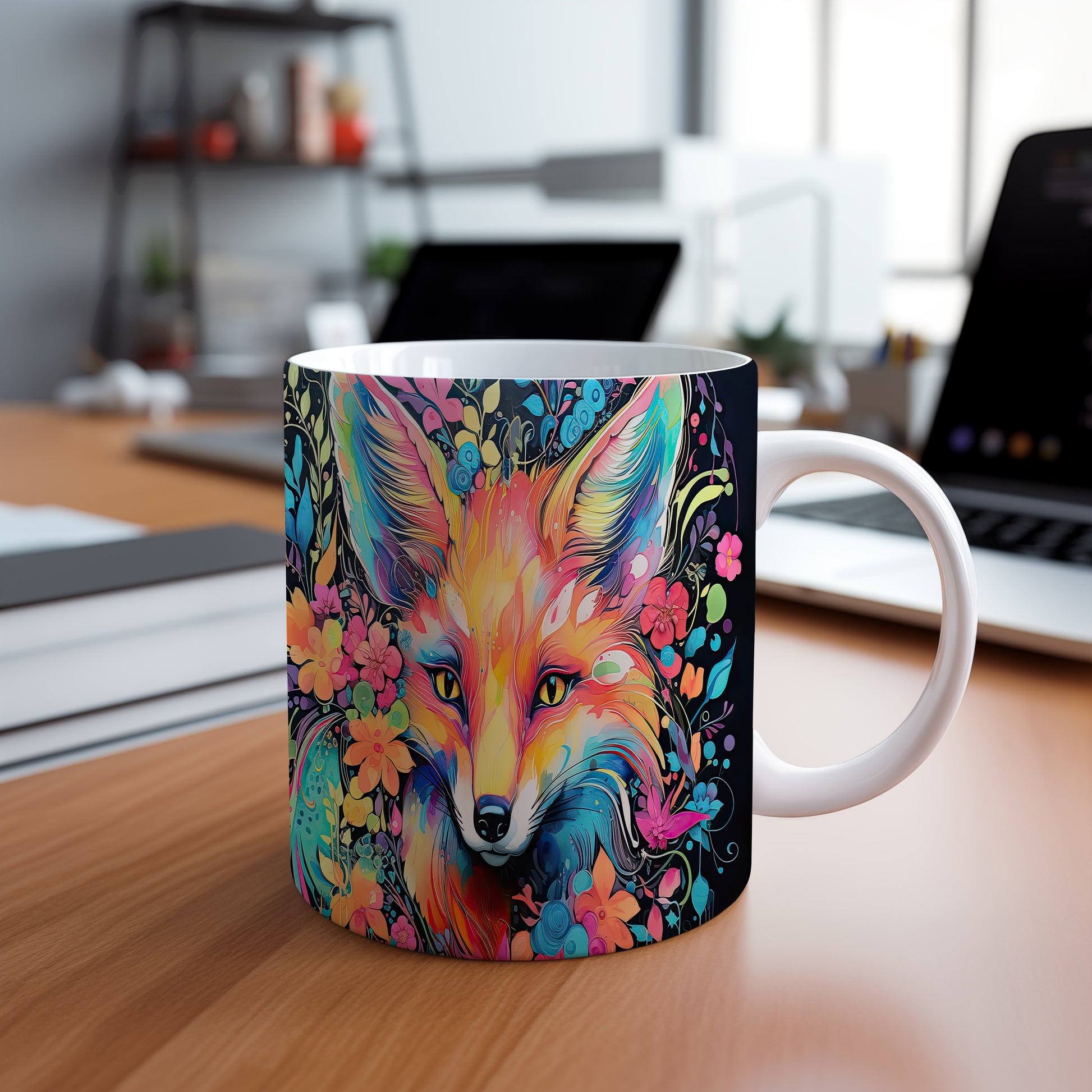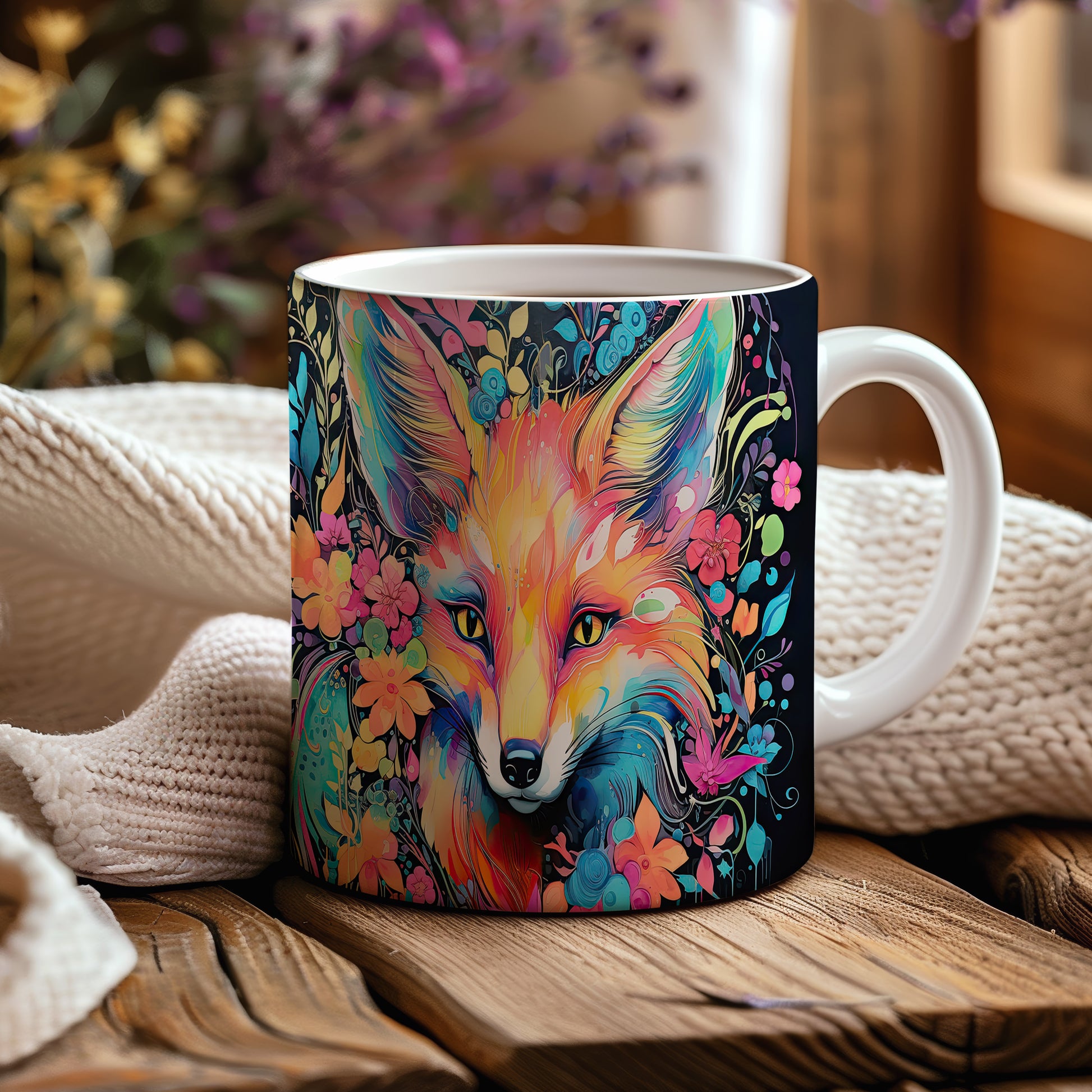 Tento hrnek zaujme originálním designem lišáka obklopeného květinami. Je ideální pro milovníky přírody a zvířat, skvělý tip na dárek pro přátele nebo rodinu. Materiál: keramika. Objem: 330 ml. Vhodné do myčky i mikrovlnky. Díky svému jedinečnému vzhledu přinese radost do každodenního pití.