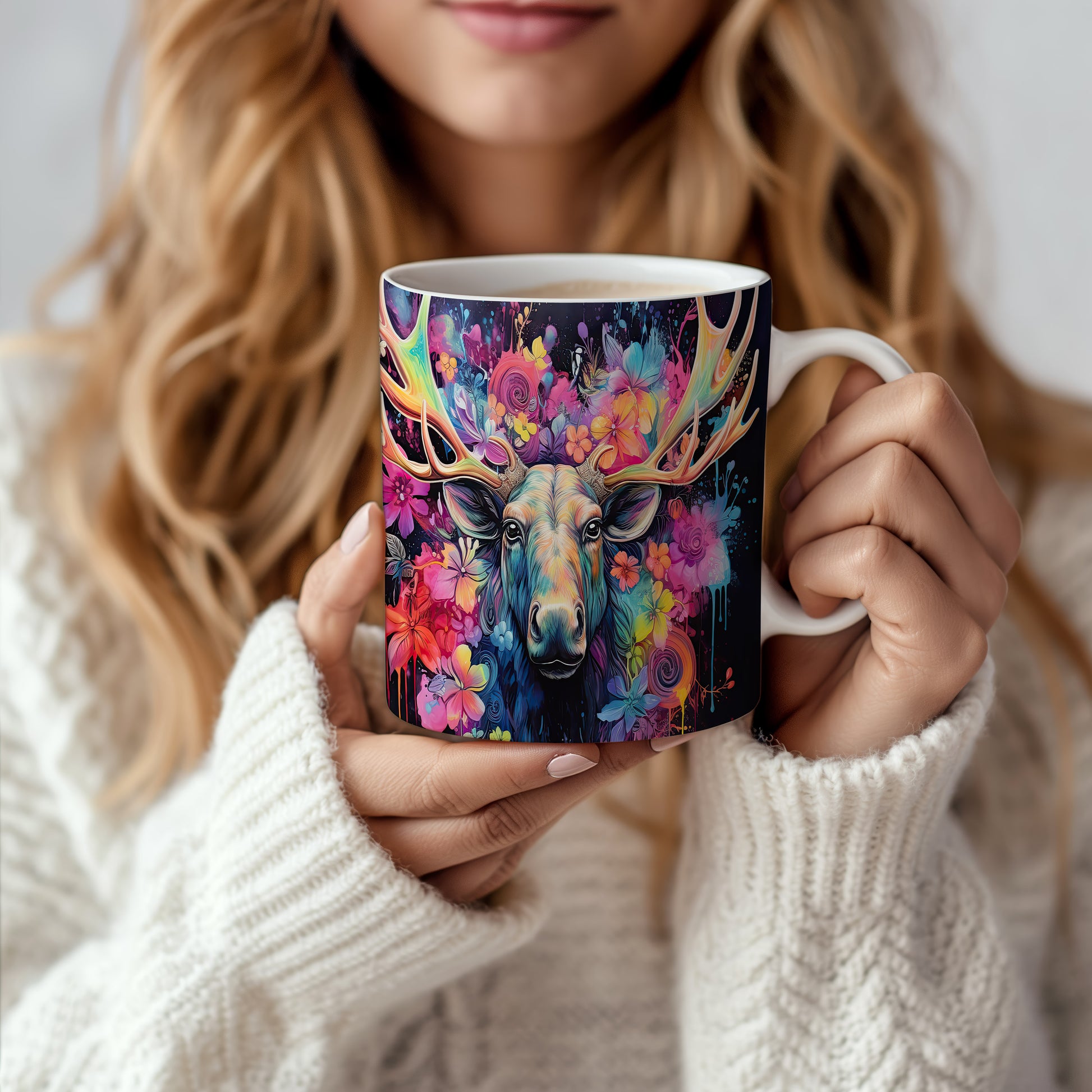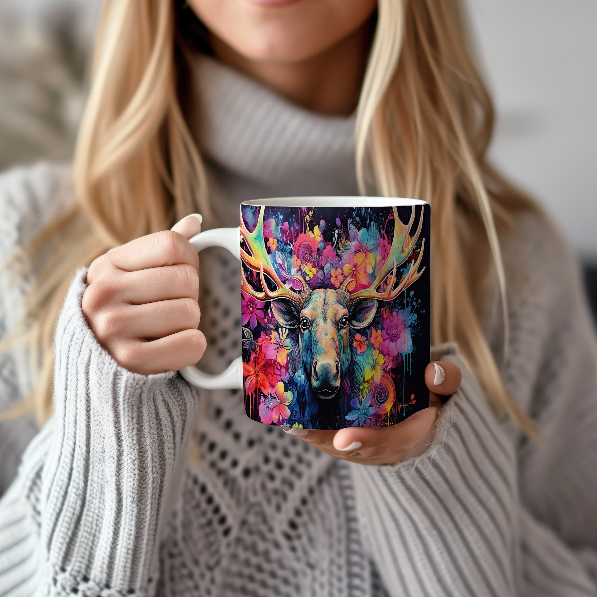 Tento hrnek zobrazuje barevného losa obklopeného květinami. Je ideální pro milovníky přírody a originálních designů, skvělý tip na dárek pro přátele či rodinu. Materiál: keramika. Objem: 330 ml. Vhodné do myčky i mikrovlnky. Používání tohoto hrnku přináší radost z každého doušku.