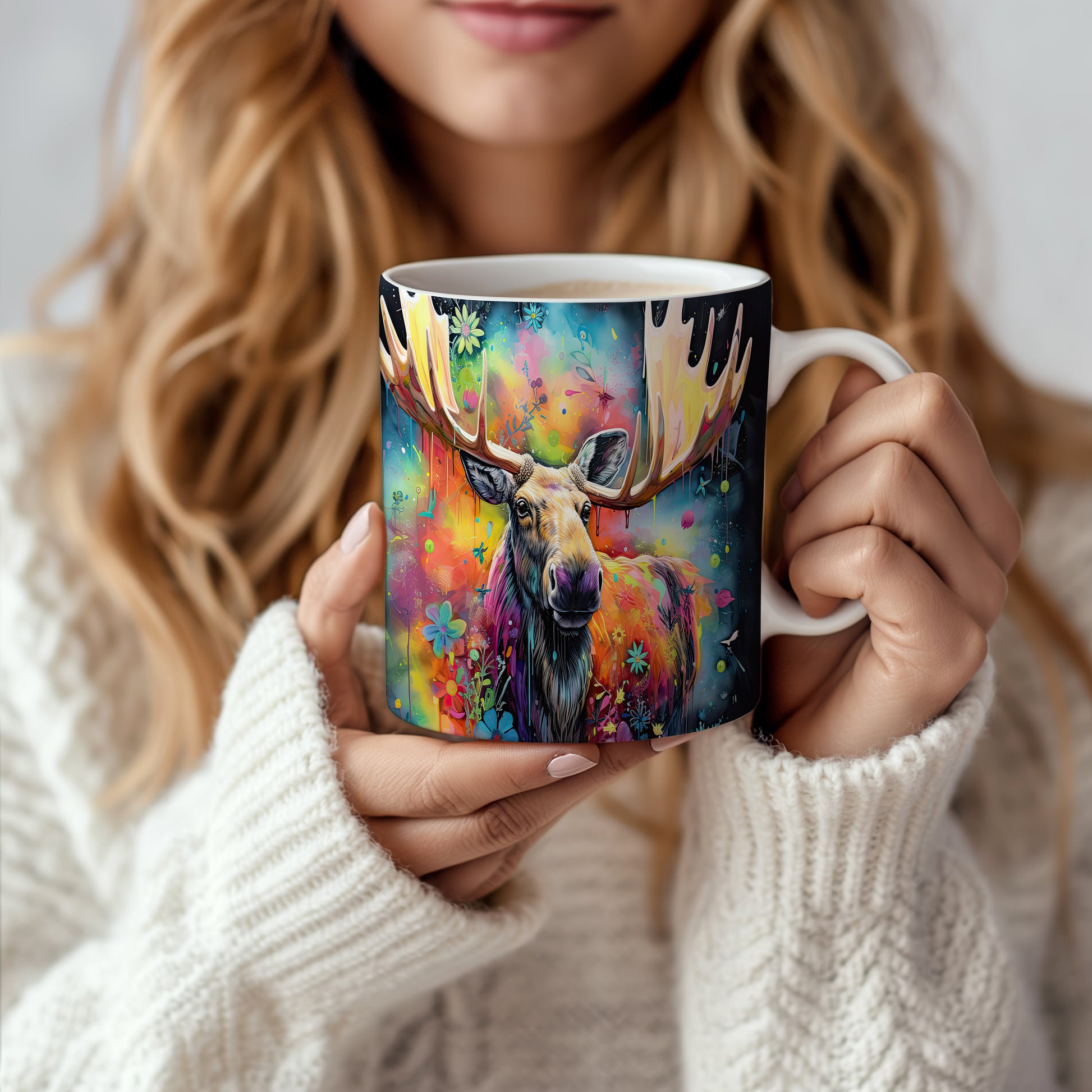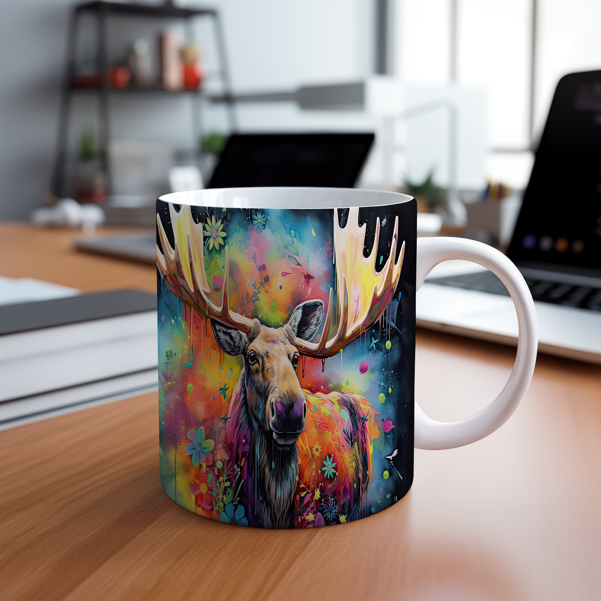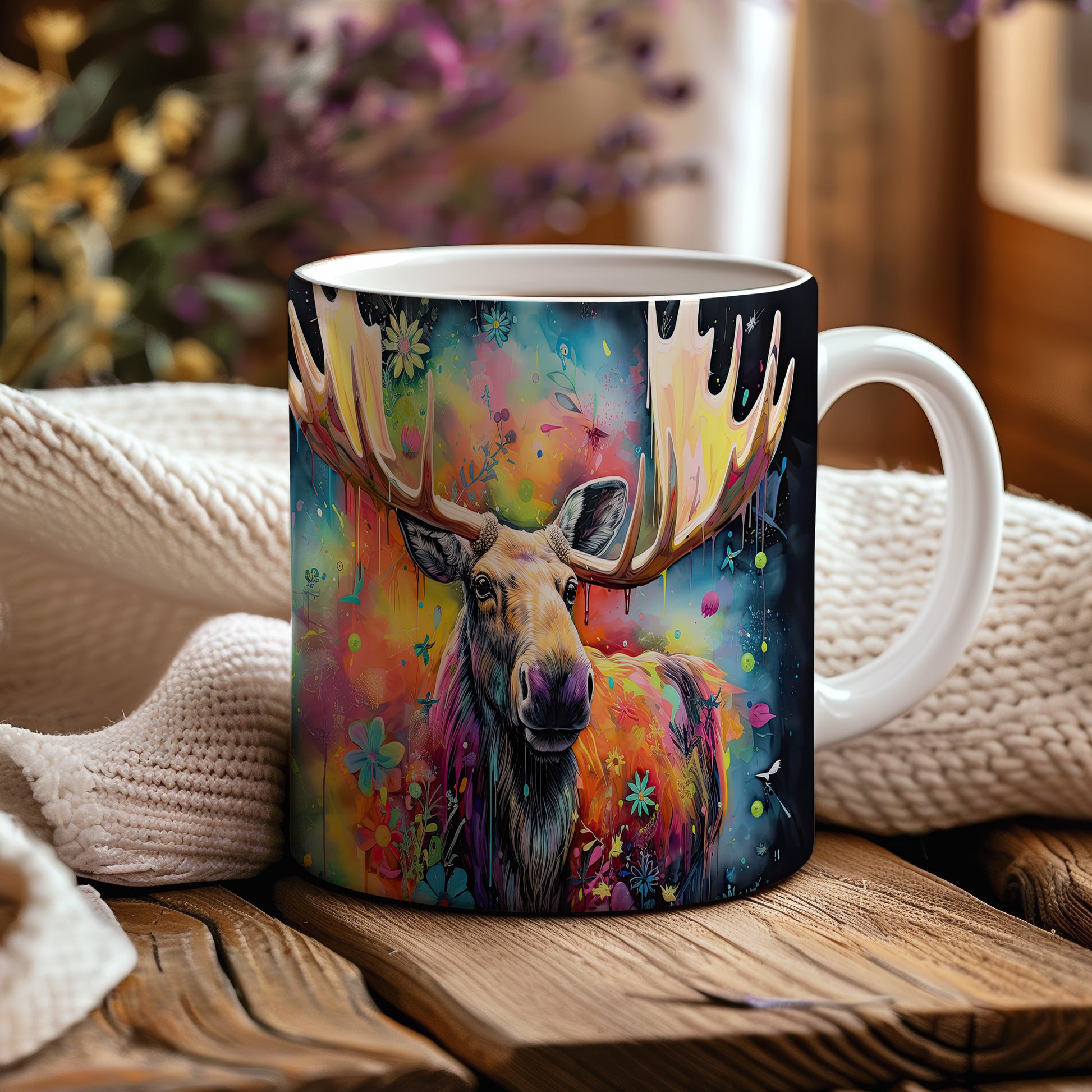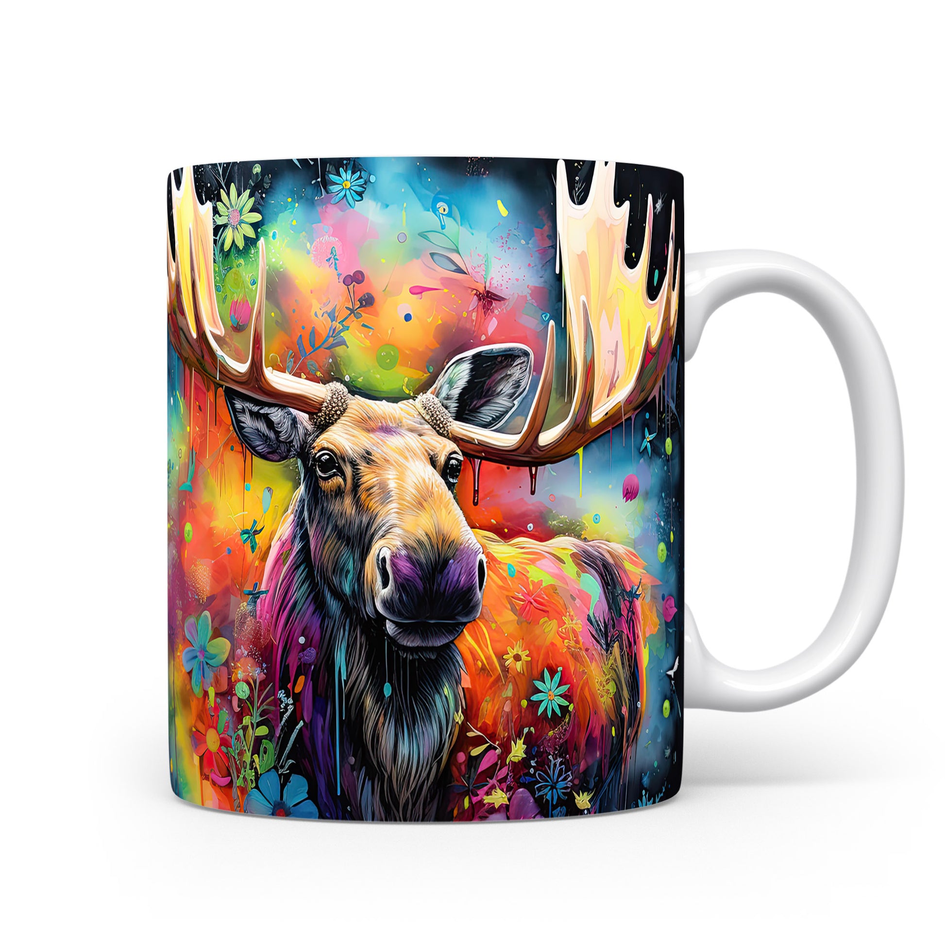 Tento hrnek s ilustrací losa obklopeného barevnými květinami je skvělým kouskem pro milovníky přírody a zvířat. Je ideální jako dárek pro přátele nebo rodinu, kteří ocení originální design. Materiál: keramika. Objem: 330 ml. Vhodné do myčky i mikrovlnky. Používání tohoto hrnku přináší radost z každého doušku.