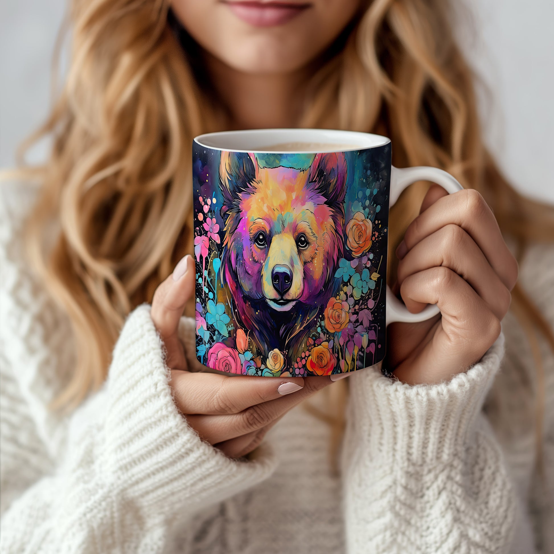 Tento hrnek zobrazuje barevného medvěda v přírodním stylu. Je ideální pro milovníky zvířat a přírody, skvělý dárek pro každou příležitost. Materiál: keramika. Objem: 330 ml. Vhodné do myčky i mikrovlnky. Umožňuje si vychutnat oblíbený nápoj s radostí a stylem.