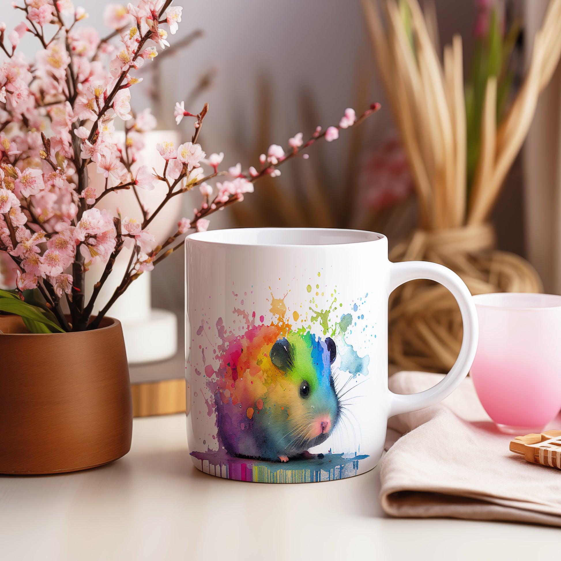 Keramický hrnek s motivem barevného morčete v akvarelovém stylu. Tento hrnek je ideální pro milovníky zvířat a skvělým dárkem pro každého, kdo ocení originální design. Materiál: keramika. Objem: 330 ml. Vhodné do myčky i mikrovlnky. Používání tohoto hrnku přináší radost a oživí váš každodenní rituál pití.