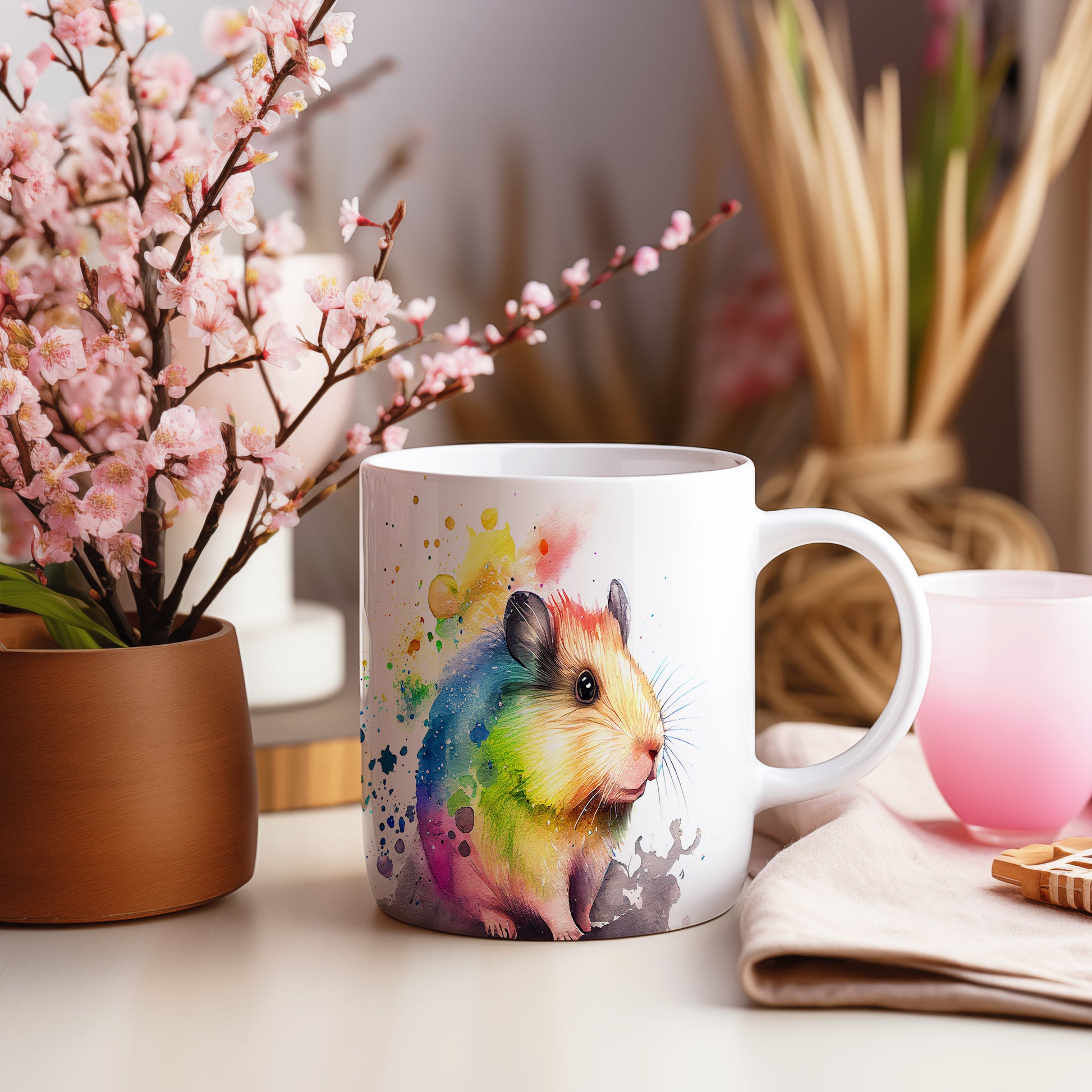 Hrnek s barevným morčetem v hravém stylu je skvělou volbou pro milovníky zvířat. Tento hrnek potěší každého, kdo má rád roztomilé a veselá zvířátka, a je ideálním dárkem pro přátele či rodinu. Materiál: keramika. Objem: 330 ml. Vhodné do myčky i mikrovlnky. Používáním tohoto hrnku si užijete každé sousto a nápoj s úsměvem.