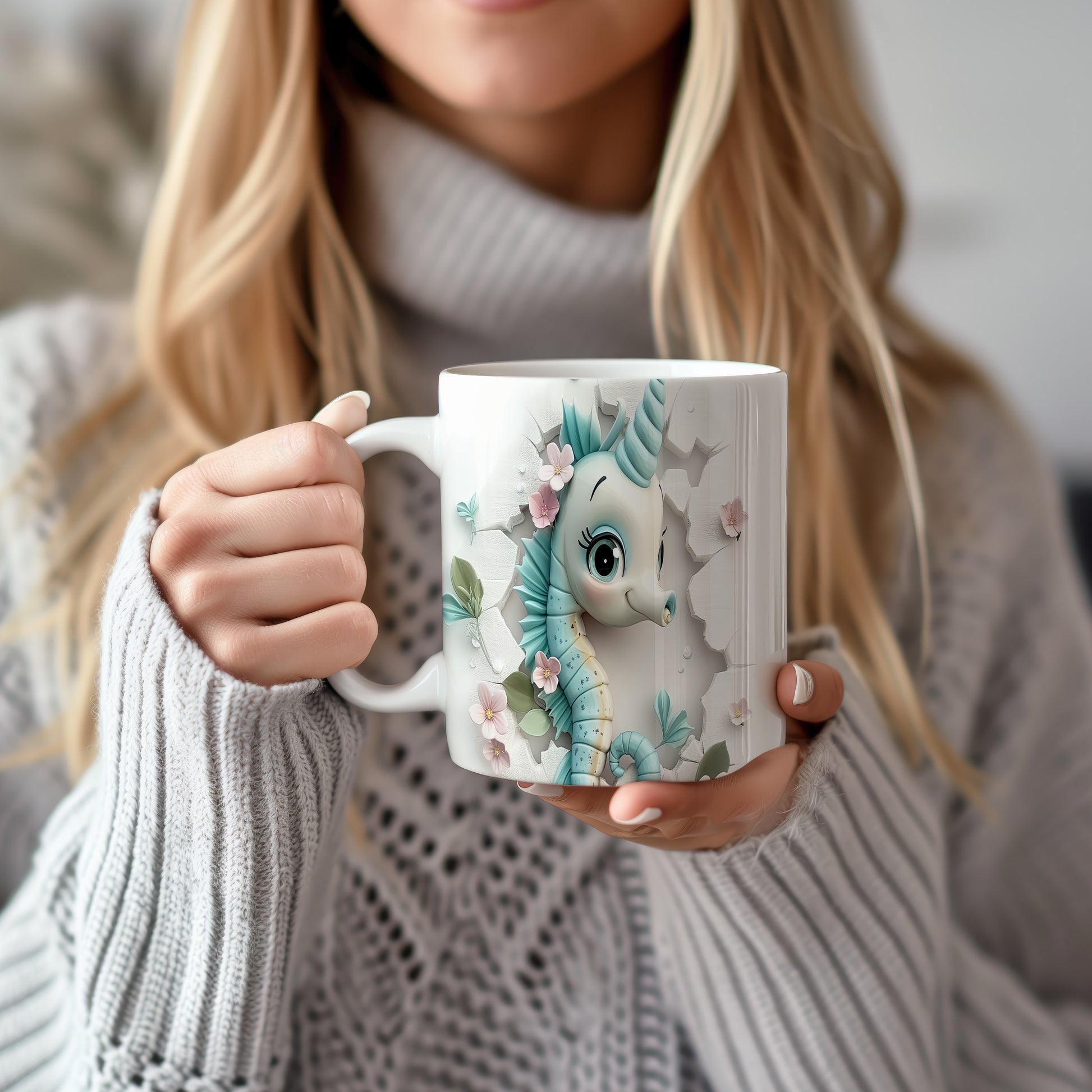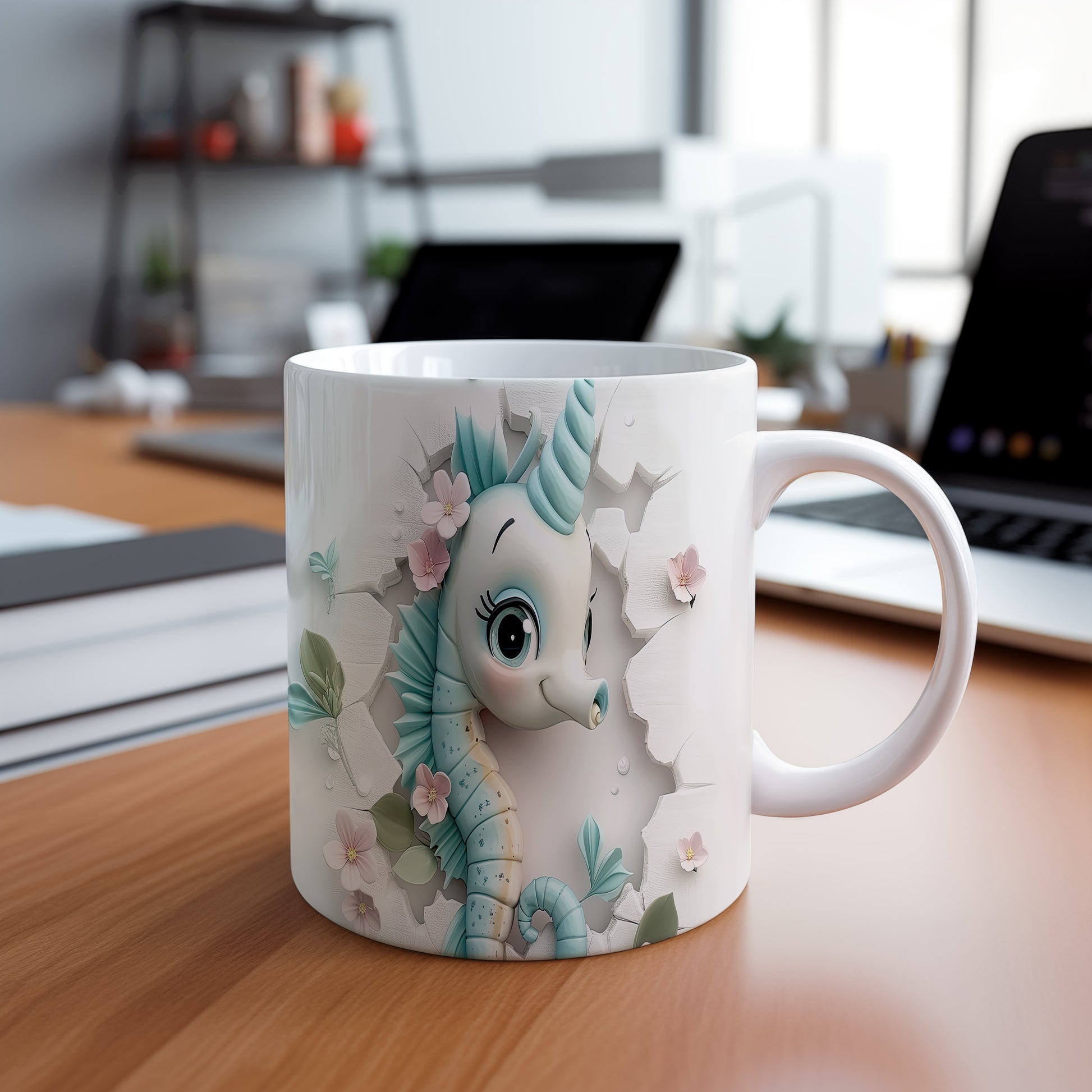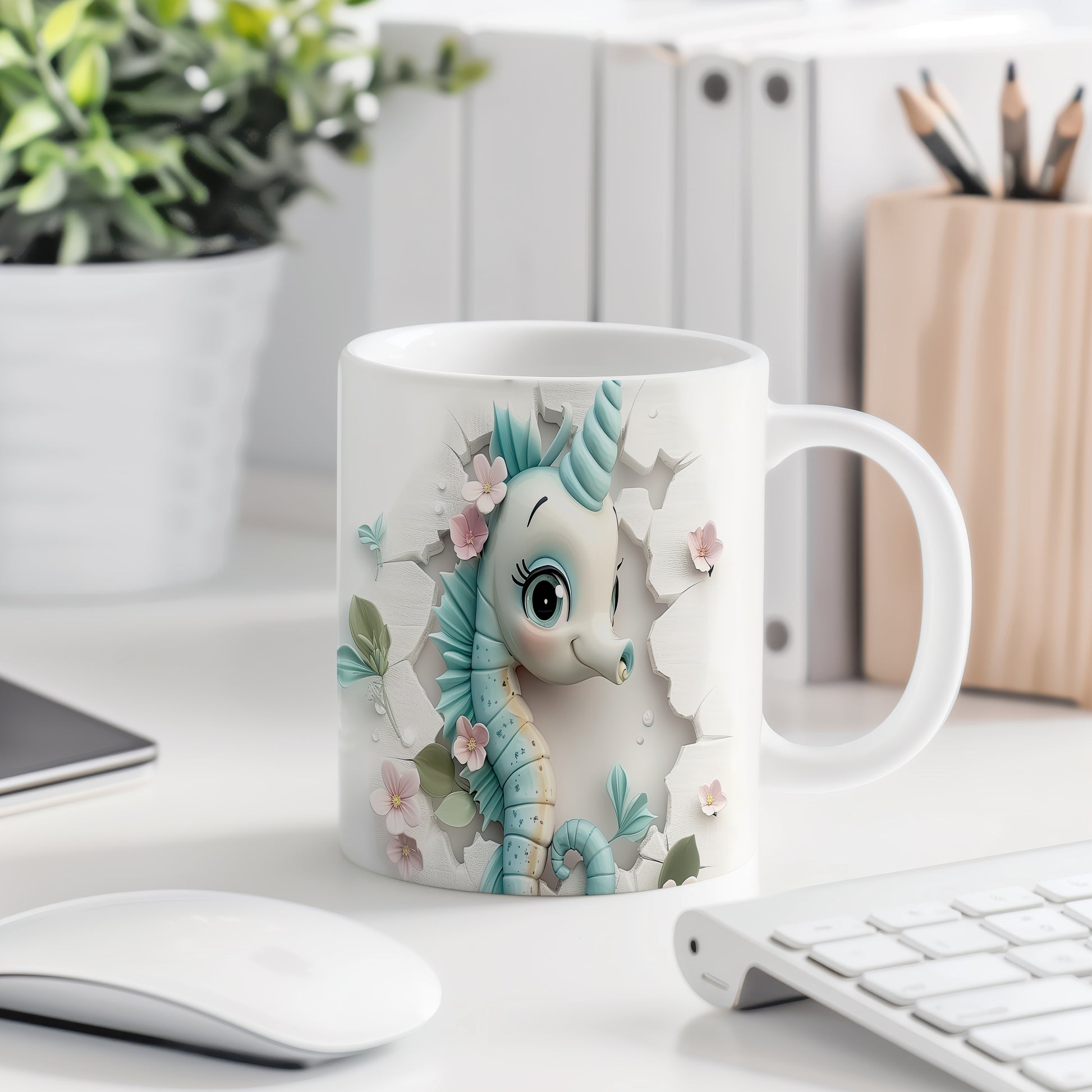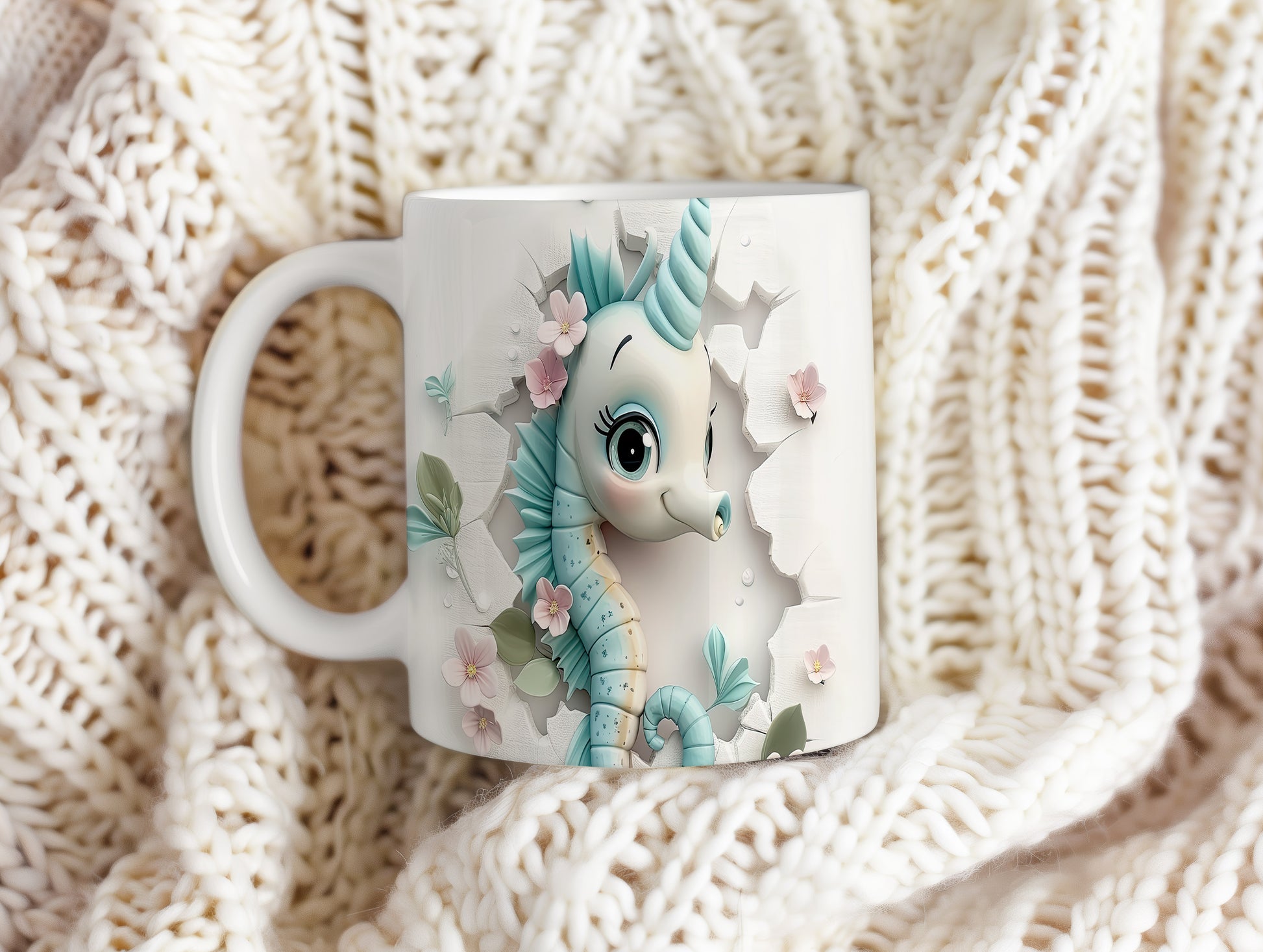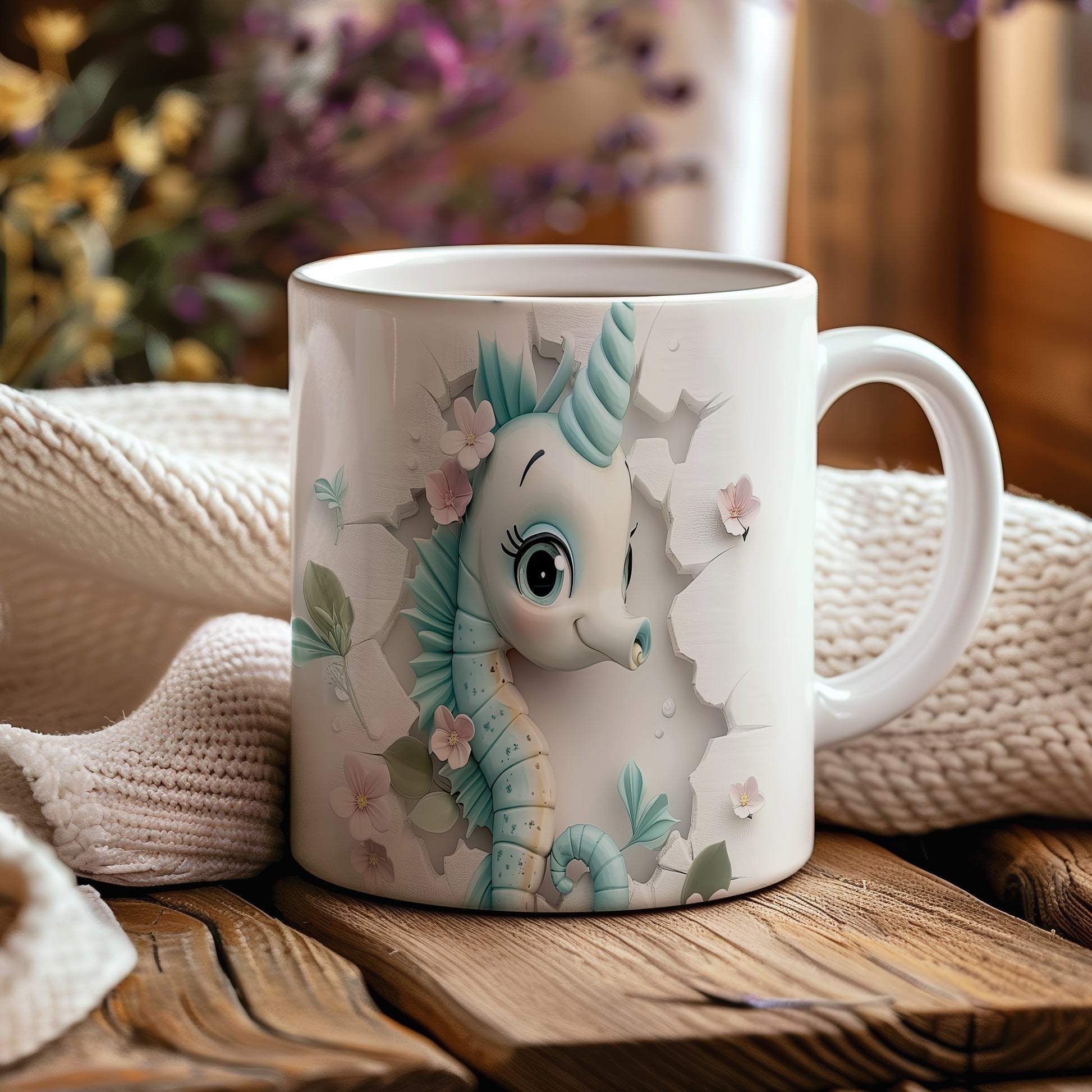 Na hrnku je zobrazen roztomilý mořský koník s velkýma očima, který vykukuje z 3D efektu obklopený květinami. Tento hrnek je ideální pro milovníky mořské fauny a přírody, skvělý tip na dárek pro děti i dospělé. Materiál: keramika. Objem: 330 ml. Vhodné do myčky i mikrovlnky. Používání tohoto hrnku přináší radost z každého doušku.