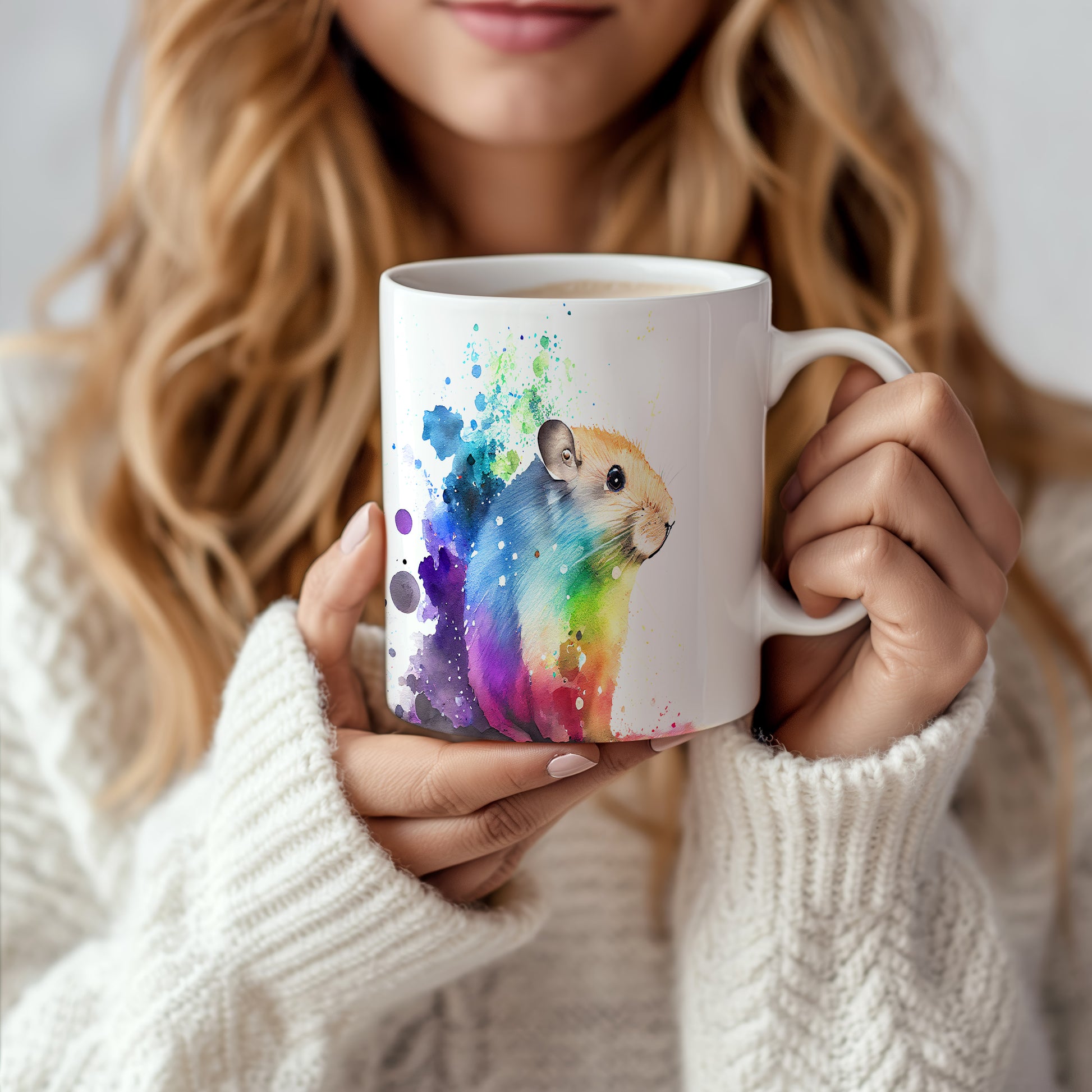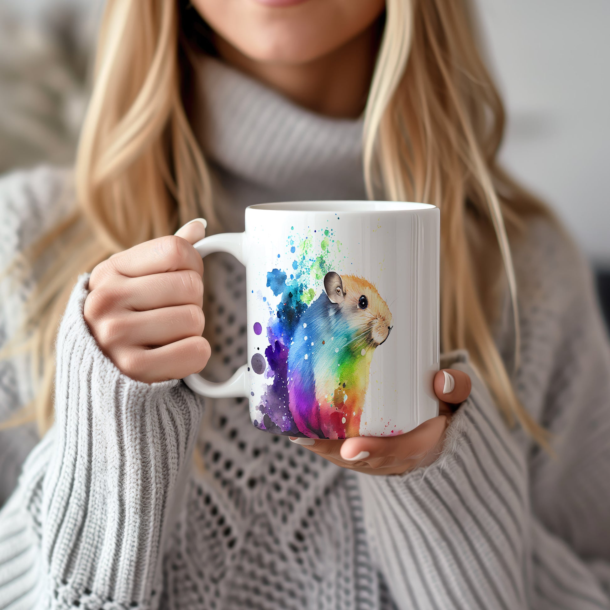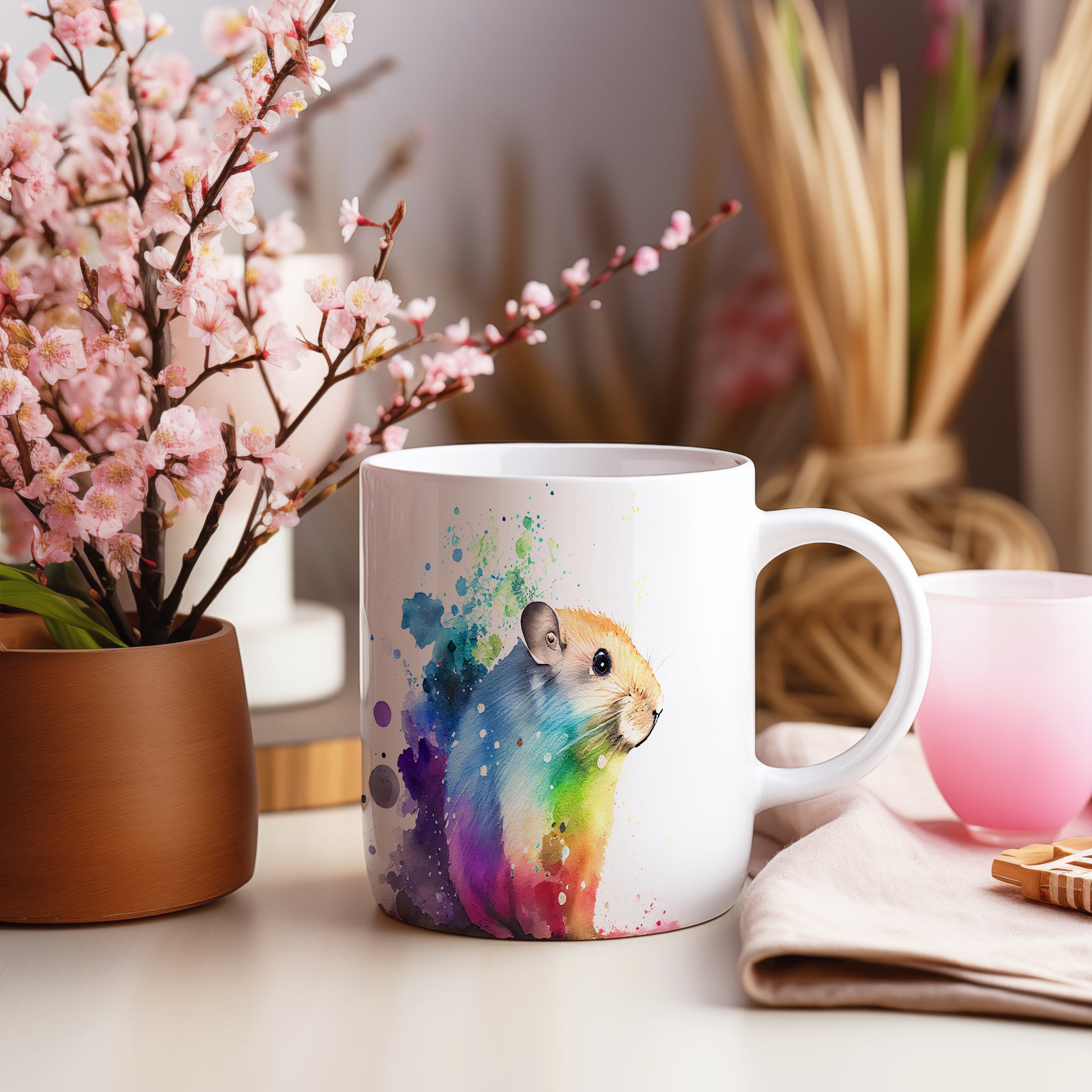 Tento keramický hrnek s motivem křečka v veselých barvách a květinových vzorech potěší každého milovníka zvířat. Je ideální jako dárek pro děti nebo přátele, kteří mají rádi roztomilé designy. Materiál: keramika. Objem: 330 ml. Vhodné do myčky i mikrovlnky. Používání tohoto hrnku přináší radost a zábavu při každém doušku.