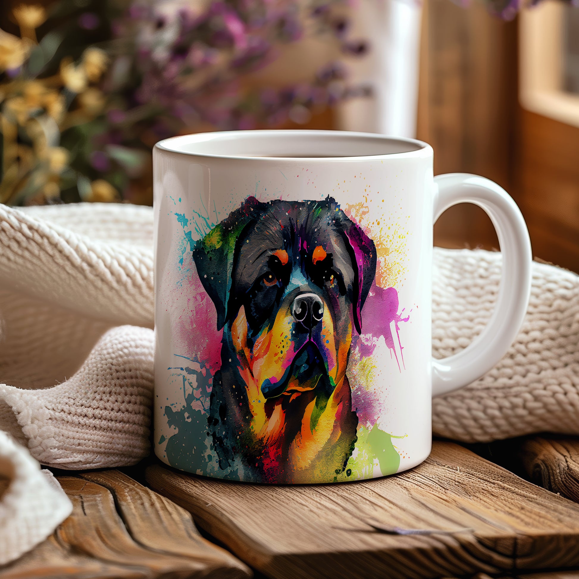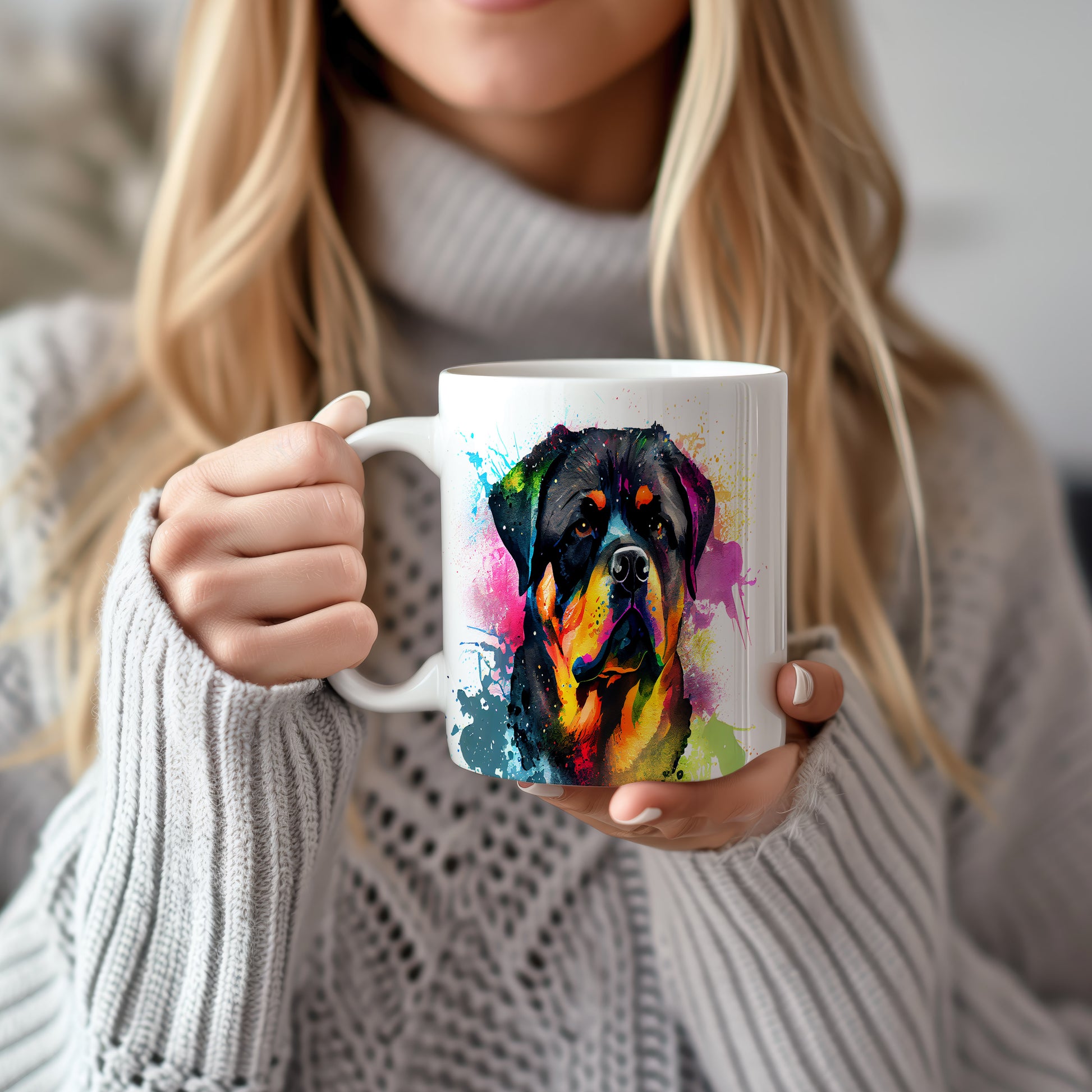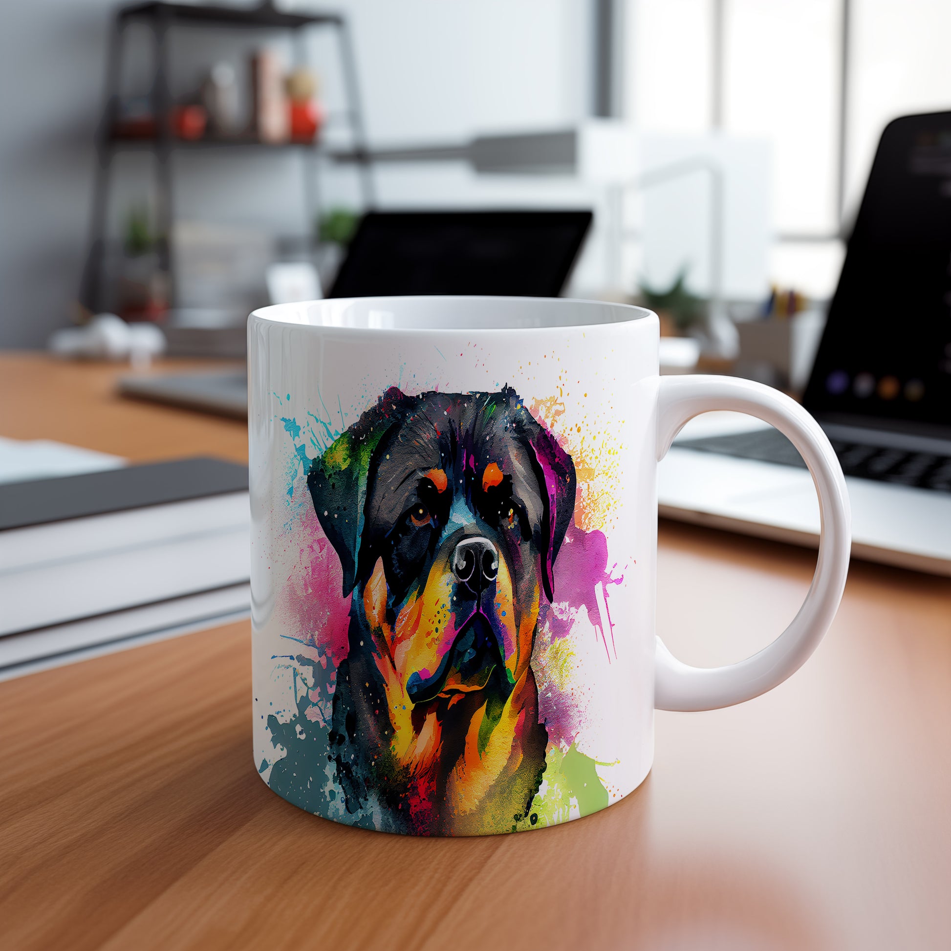 Stylový hrnek s uměleckým ztvárněním Rotvajlera, ideální pro milovníky psů. Tento hrnek je skvělým dárkem pro každého, kdo má rád originální design. Materiál: keramika. Objem: 330 ml. Vhodné do myčky i mikrovlnky. Používání tohoto hrnku přináší radost a oživí každé pití.