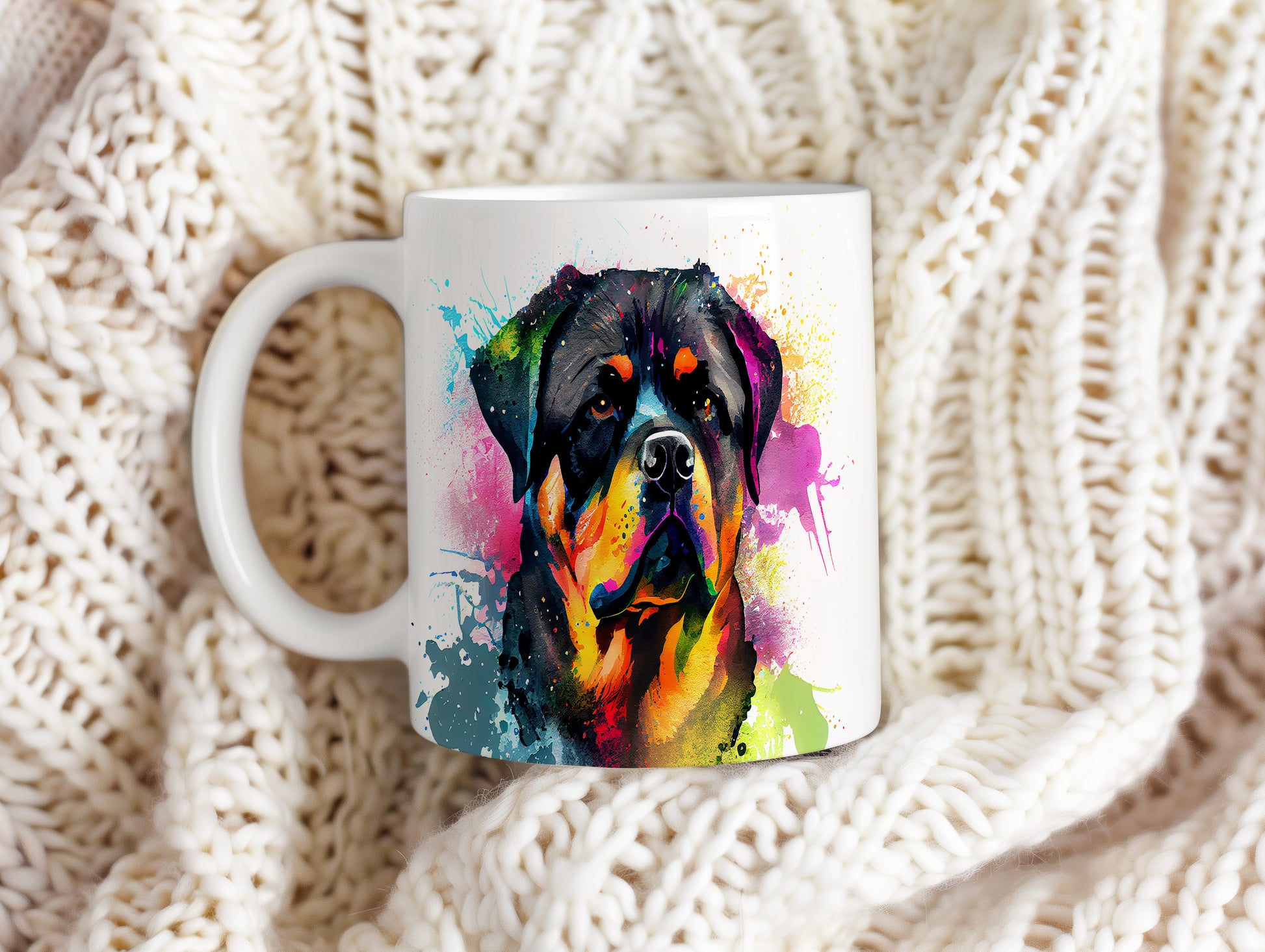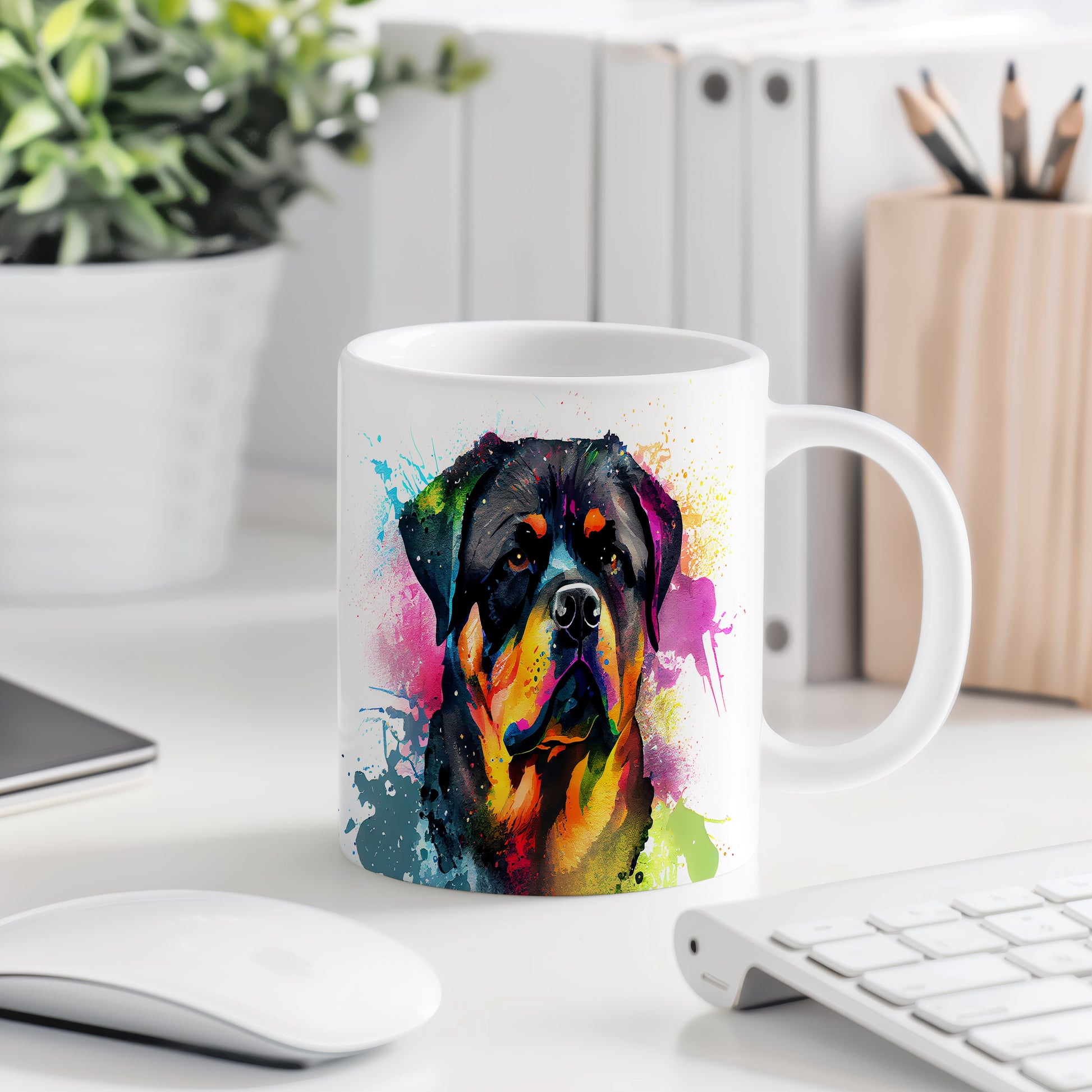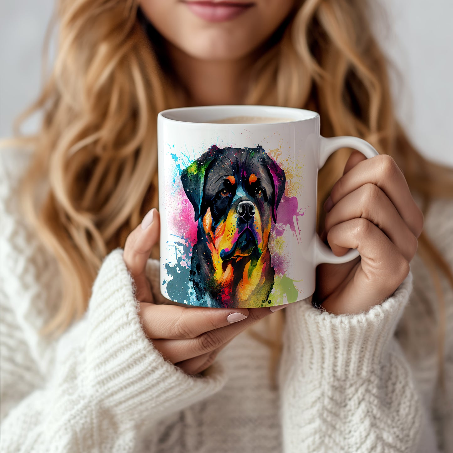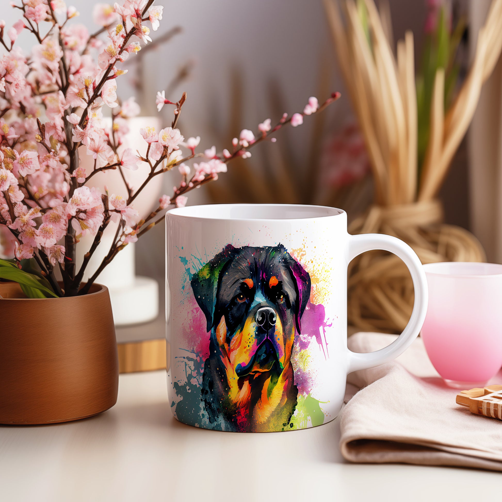 Stylový hrnek s uměleckým ztvárněním Rotvajlera, ideální pro milovníky psů. Tento hrnek je skvělým dárkem pro každého, kdo má rád originální design. Materiál: keramika. Objem: 330 ml. Vhodné do myčky i mikrovlnky. Používání tohoto hrnku přináší radost a oživí každé pití.