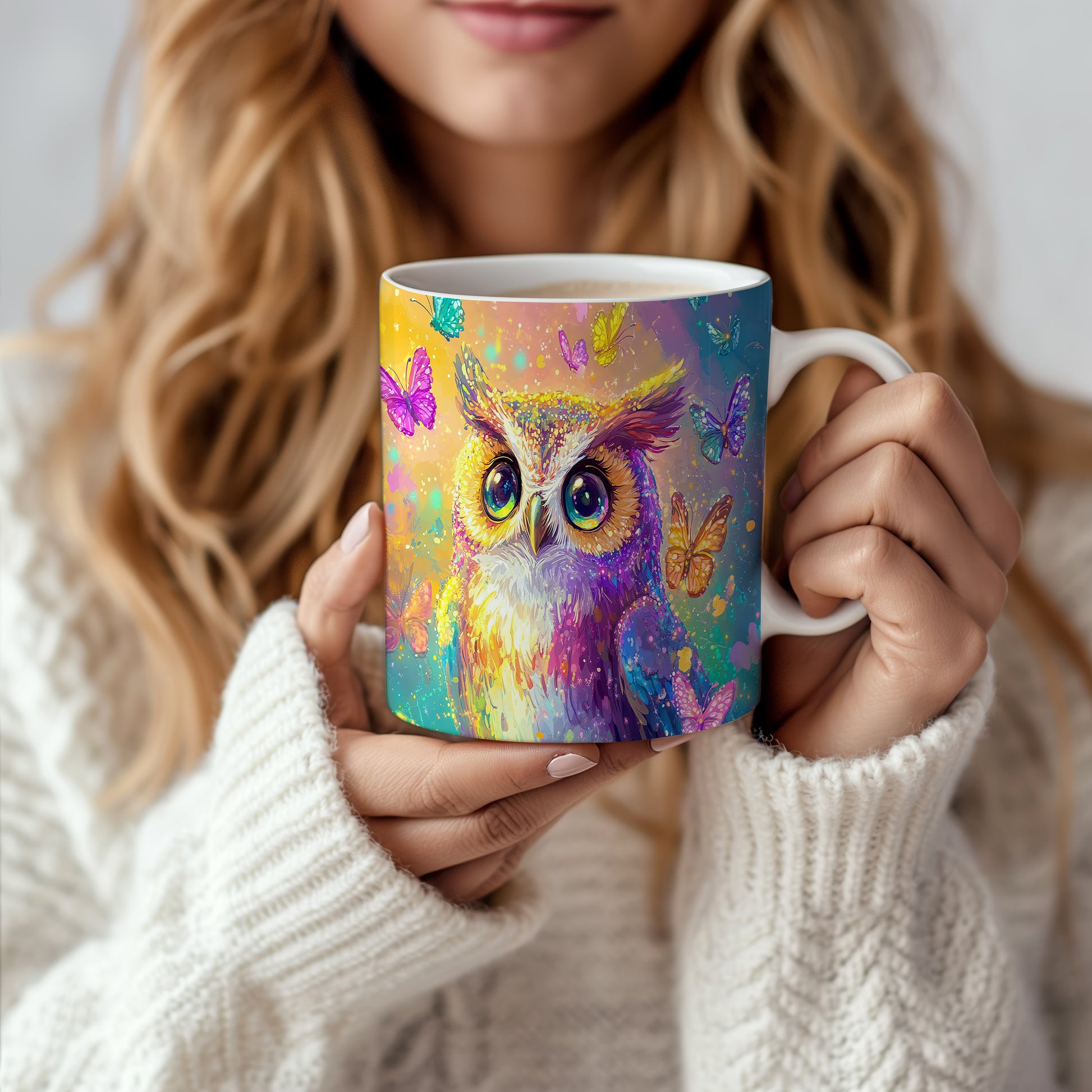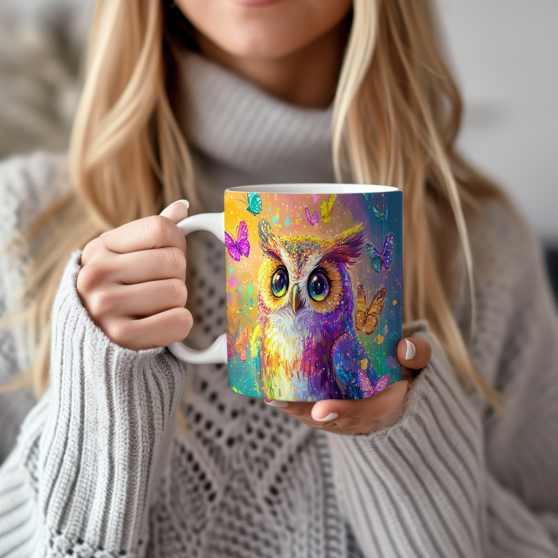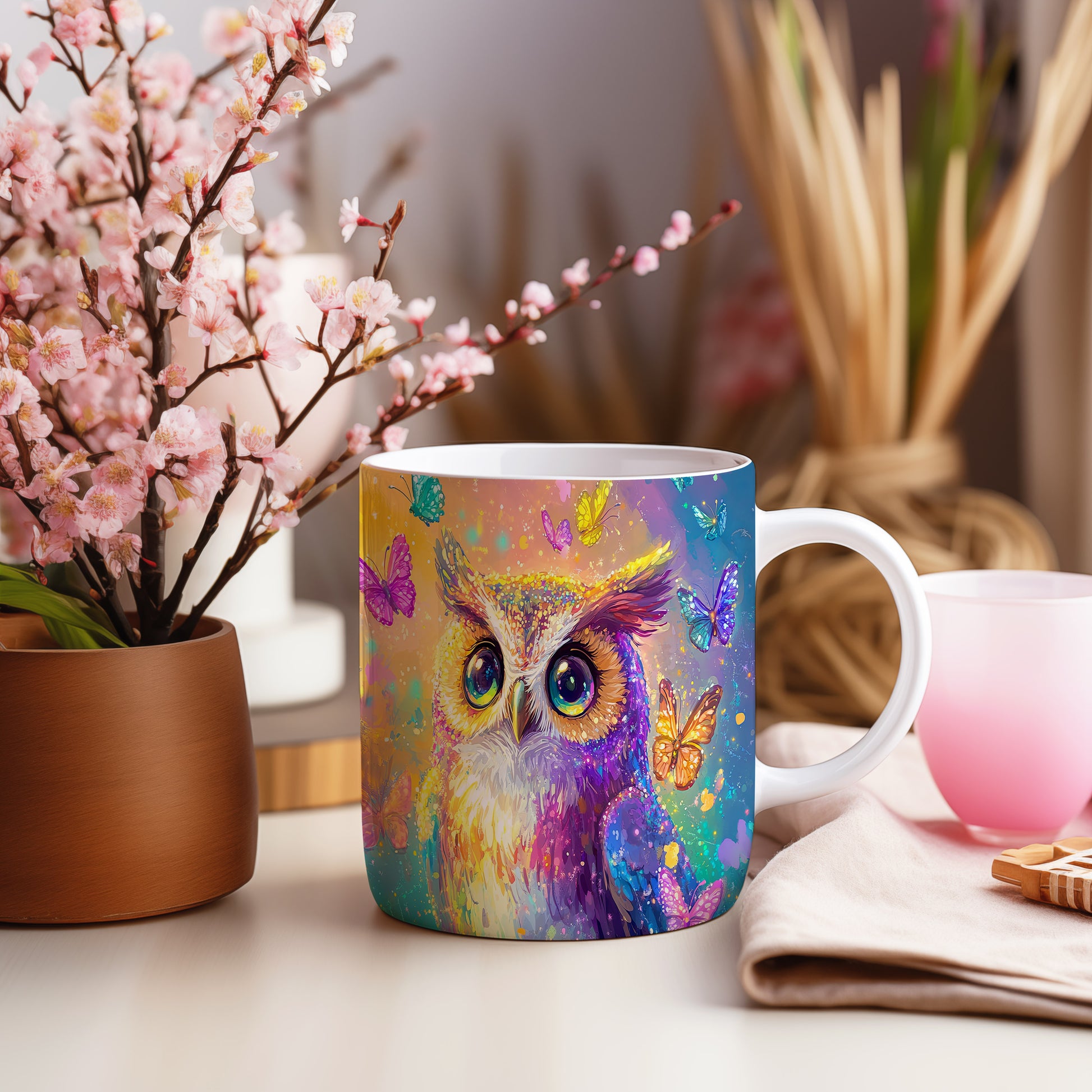 Tento krásný keramický hrnek s motivem roztomilé sovy obklopené barevnými motýly je ideální volbou pro milovníky přírody a originálního designu. Skvěle se hodí jako dárek pro přátele nebo rodinu, kteří ocení jedinečné kousky. Materiál: keramika. Objem: 330 ml. Vhodné do myčky i mikrovlnky. Používání tohoto hrnku přináší radost z každého doušku.