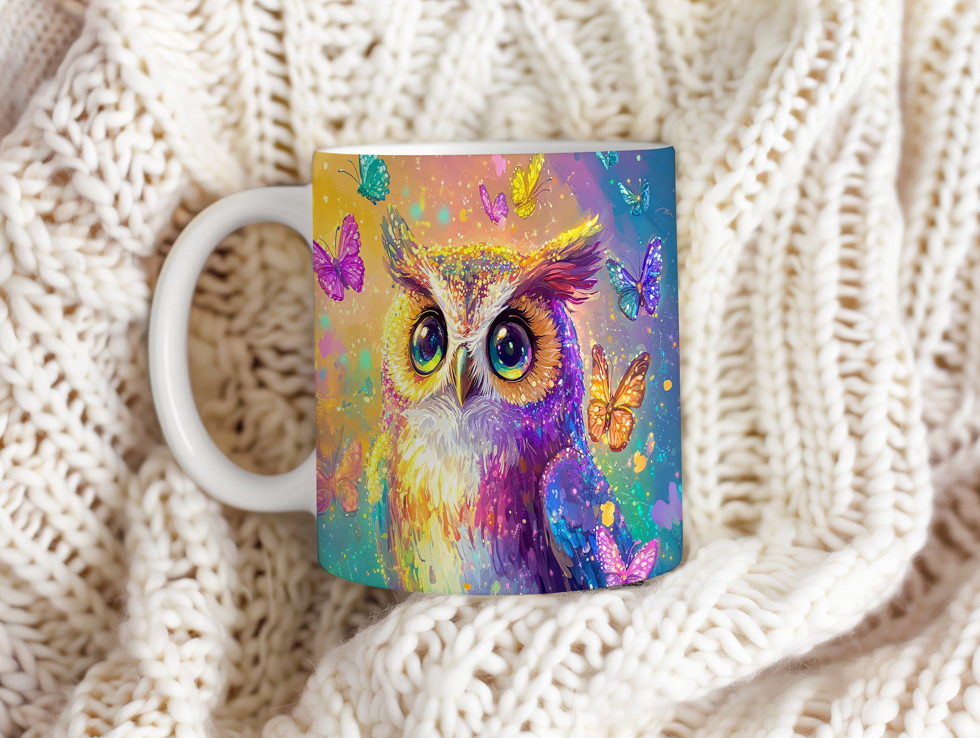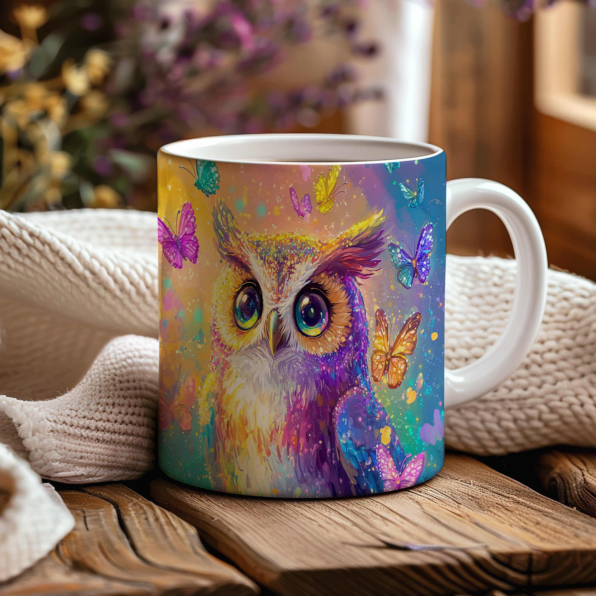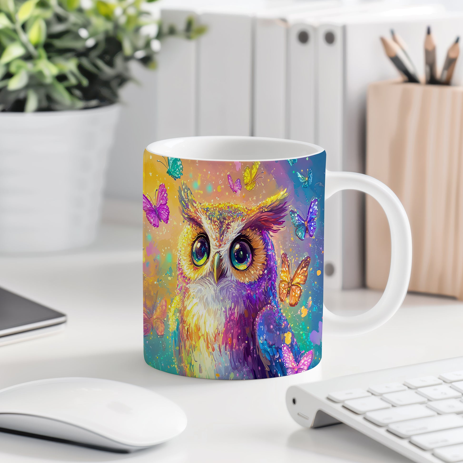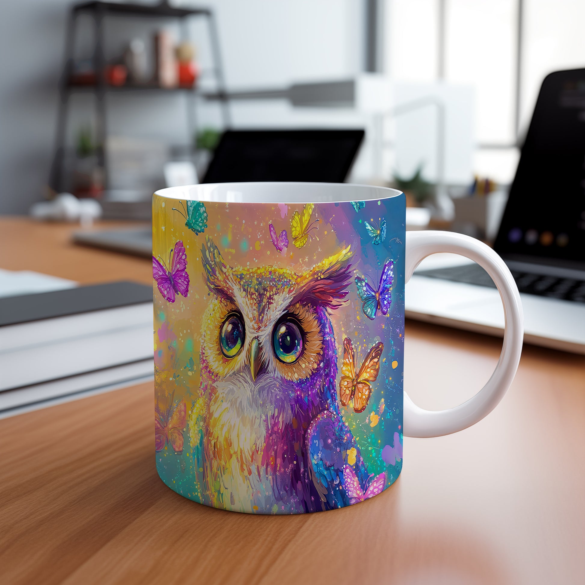 Tento krásný keramický hrnek s motivem roztomilé sovy obklopené barevnými motýly je ideální volbou pro milovníky přírody a originálního designu. Skvěle se hodí jako dárek pro přátele nebo rodinu, kteří ocení jedinečné kousky. Materiál: keramika. Objem: 330 ml. Vhodné do myčky i mikrovlnky. Používání tohoto hrnku přináší radost z každého doušku.