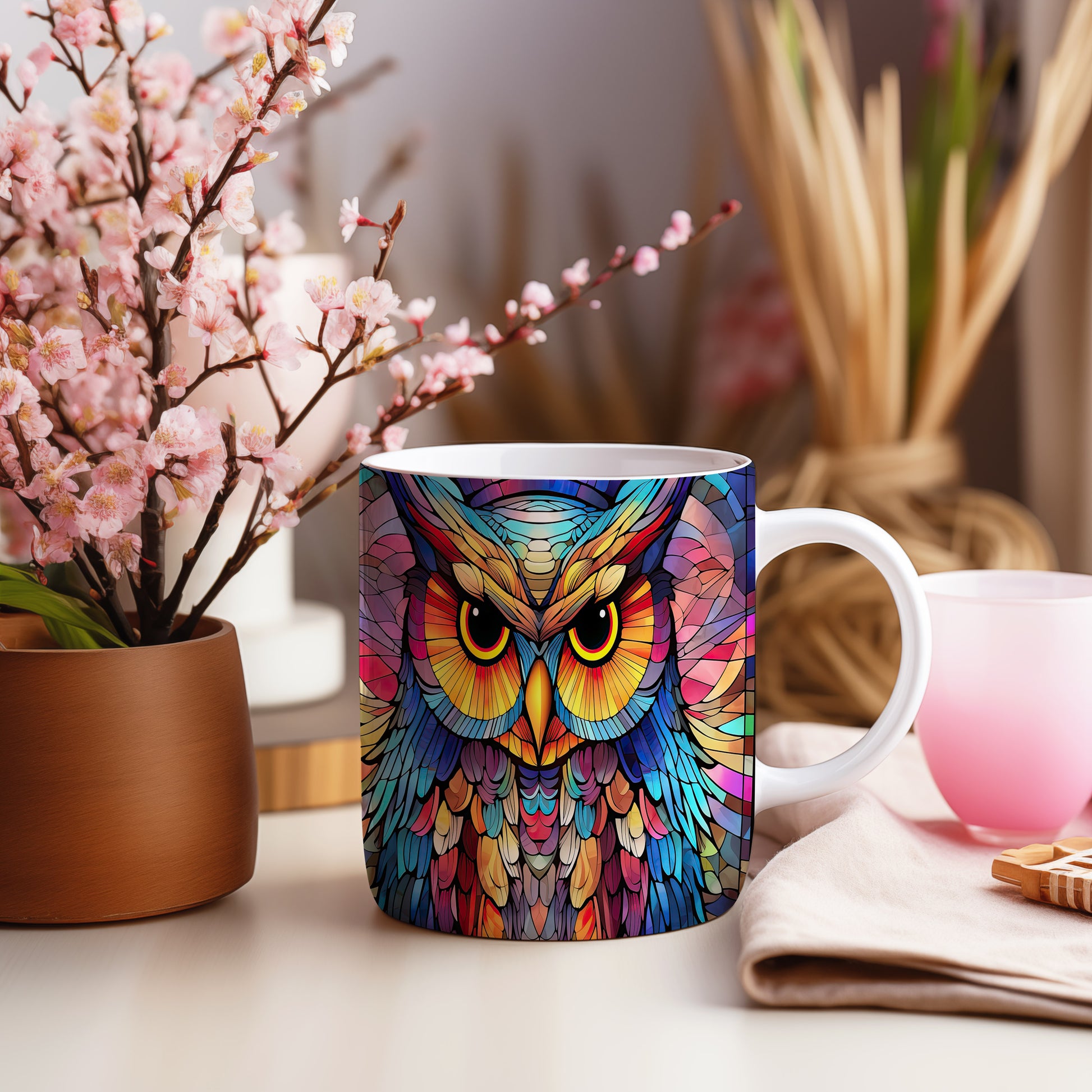 Hrnek s barevným motivem sovy – unikátní variantou