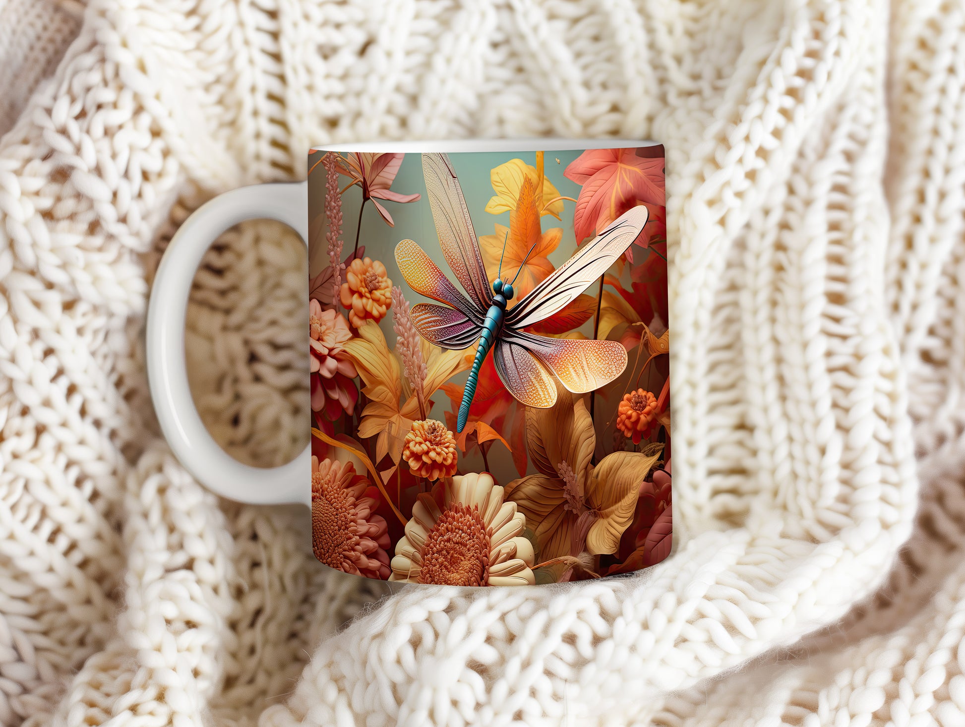 Hrnek s barevným motivem vážky