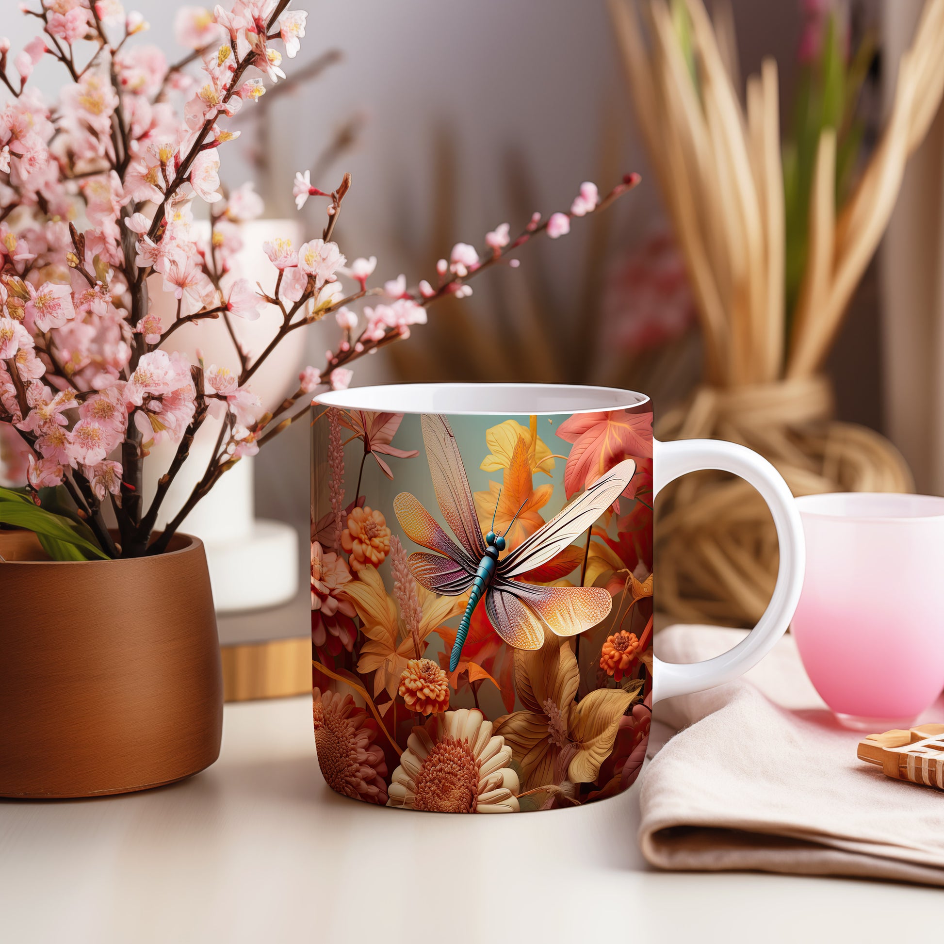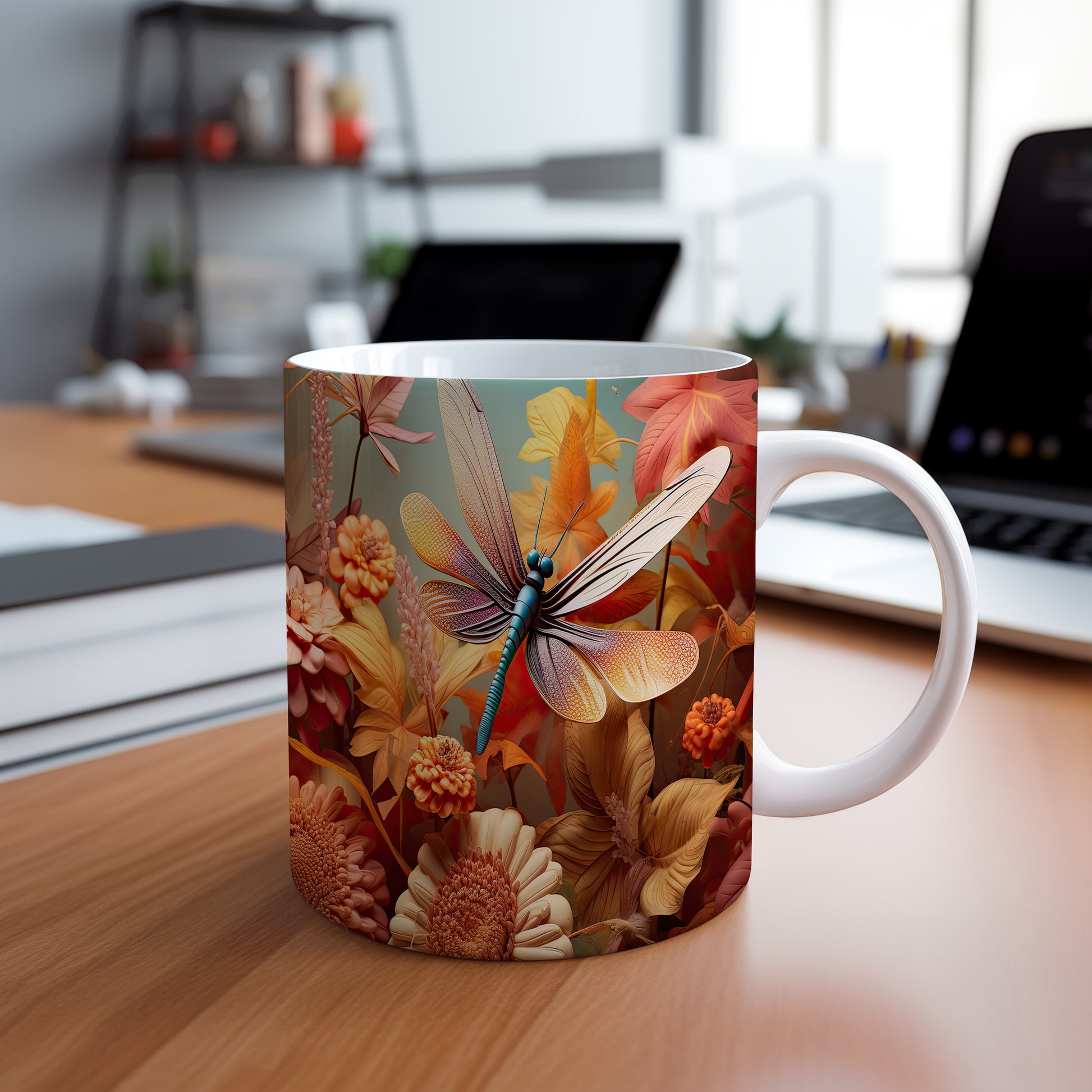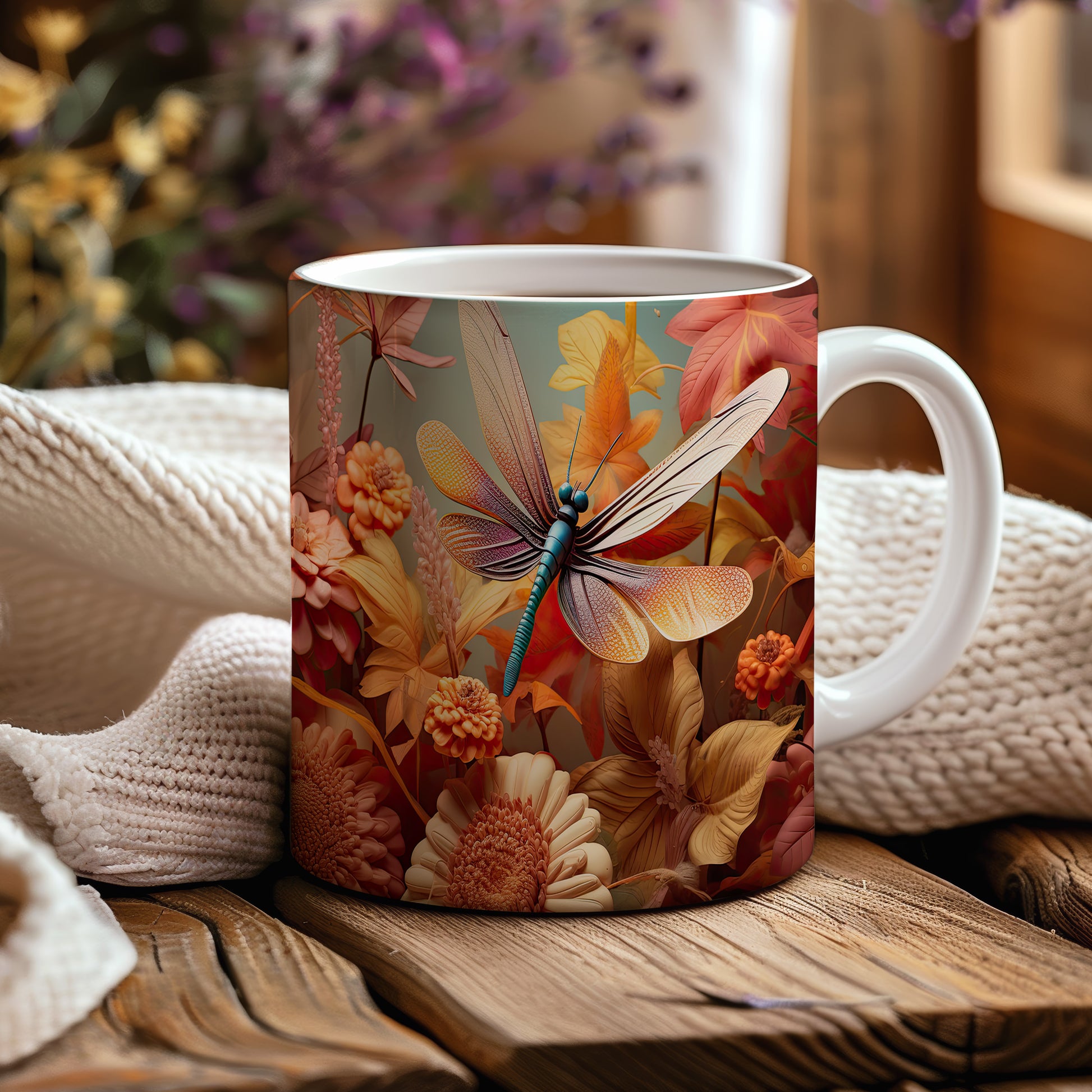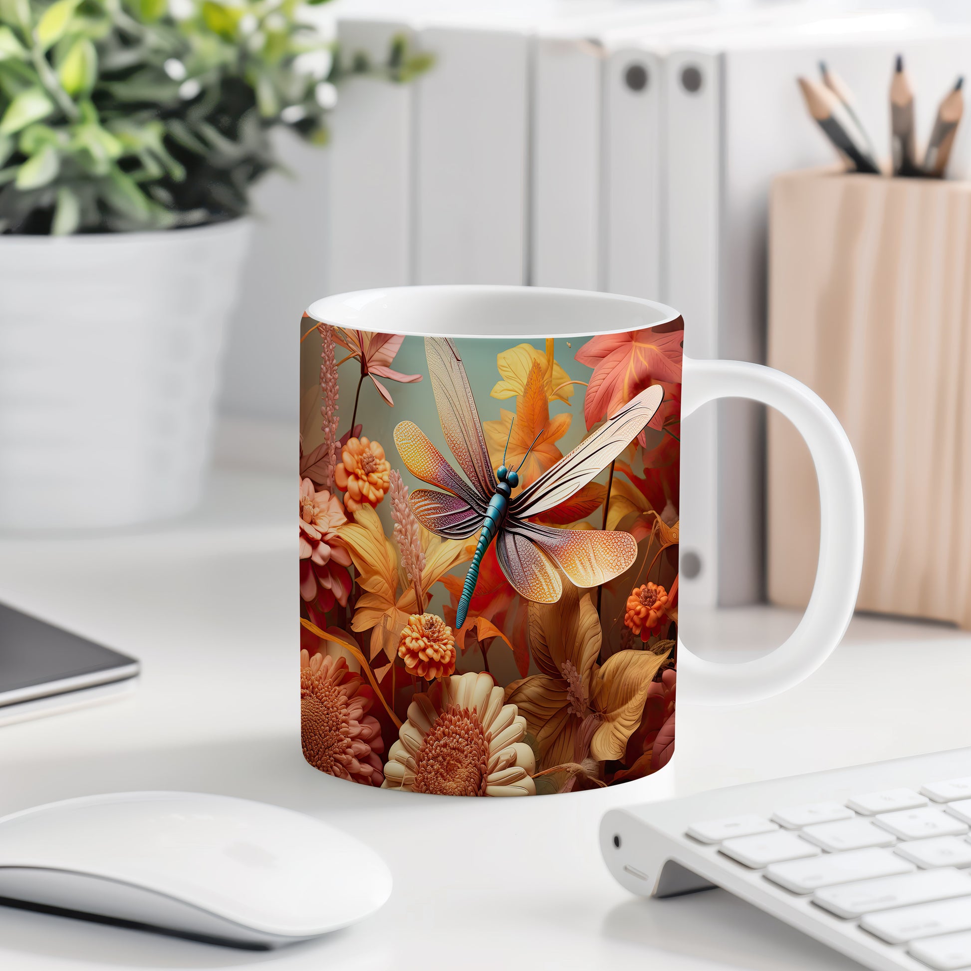Tento hrnek s elegantní vážkou a jemnými květinami je skvělým doplňkem pro každého milovníka přírody. Je ideální jako dárek pro přátele nebo rodinu, kteří ocení krásu a originalitu. Materiál: keramika. Objem: 330 ml. Vhodné do myčky i mikrovlnky. Užijte si svůj oblíbený nápoj s tímto stylovým hrnkem, který přináší radost do každého dne.