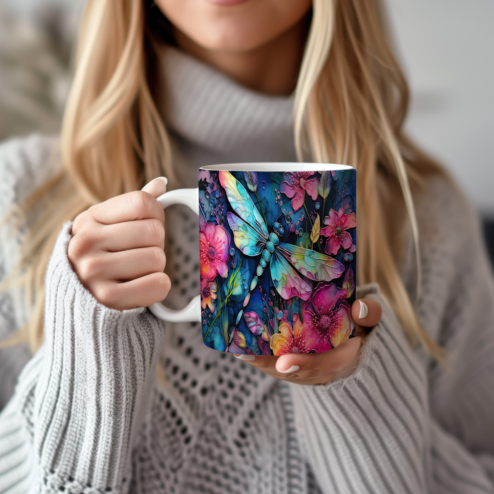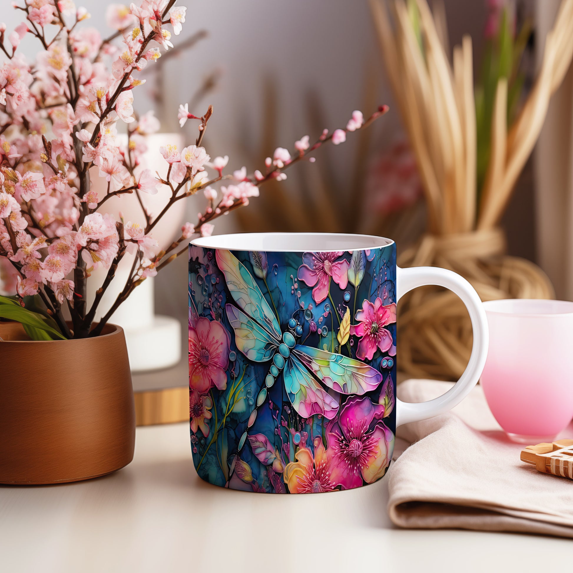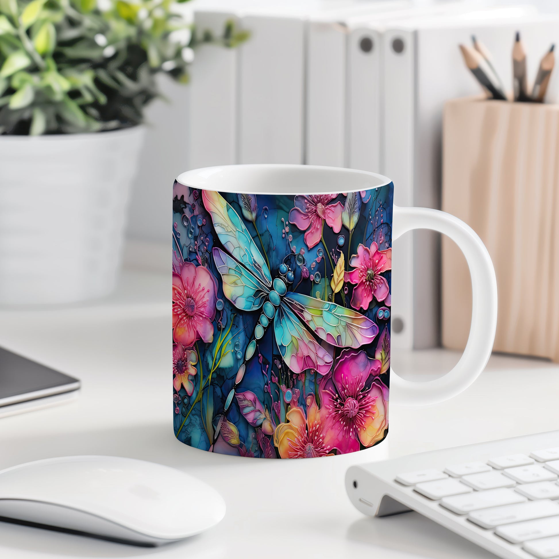 Tento hrnek je ozdobený krásnou vážkou a pestrými květinami, což mu dodává jedinečný styl. Je ideální pro milovníky přírody a skvělý tip na dárek pro přátele nebo rodinu. Materiál: keramika. Objem: 330 ml. Vhodné do myčky i mikrovlnky. Používáním tohoto hrnku si užijete nejen svůj oblíbený nápoj, ale také příjemný pohled na jeho design.