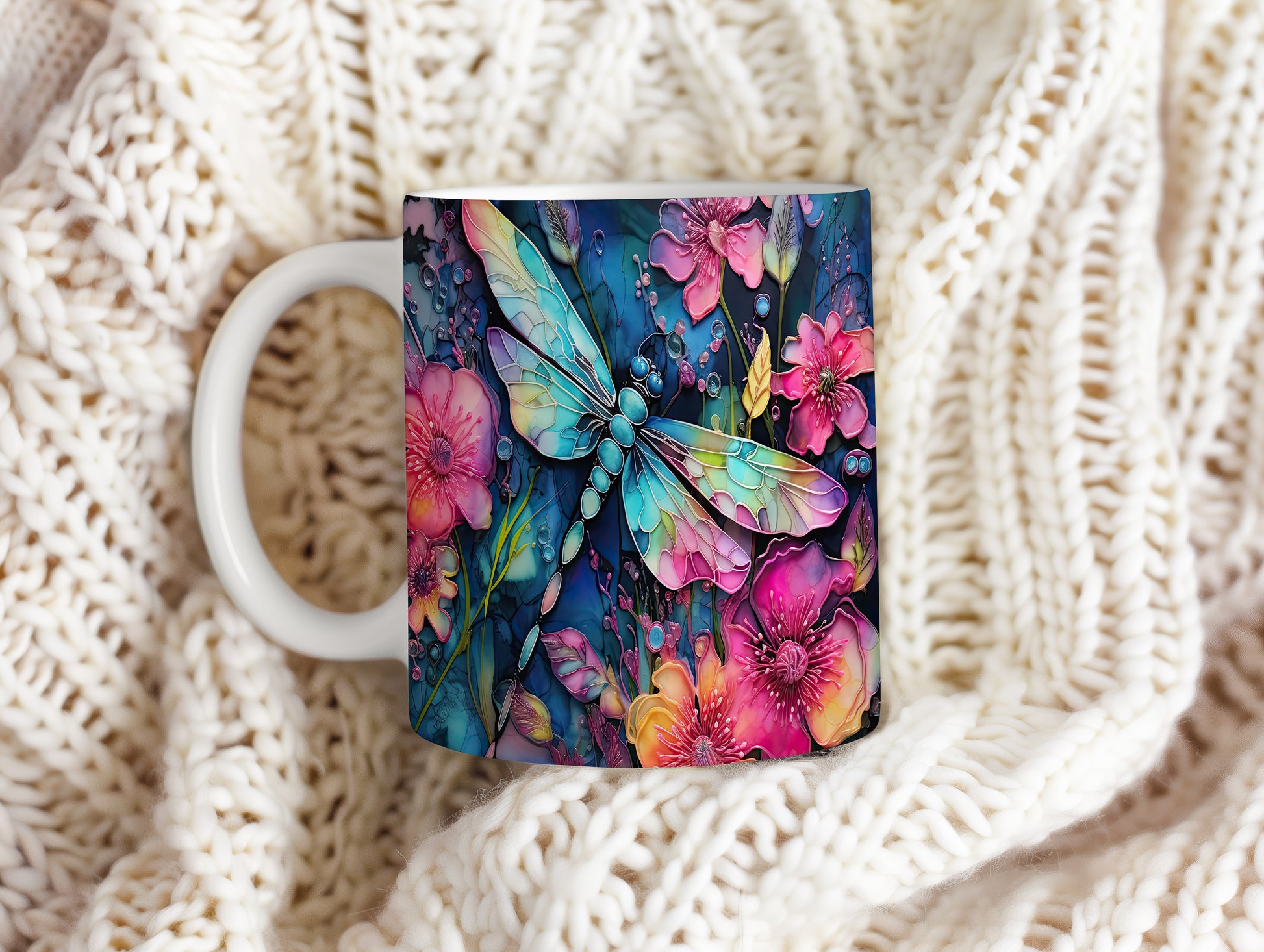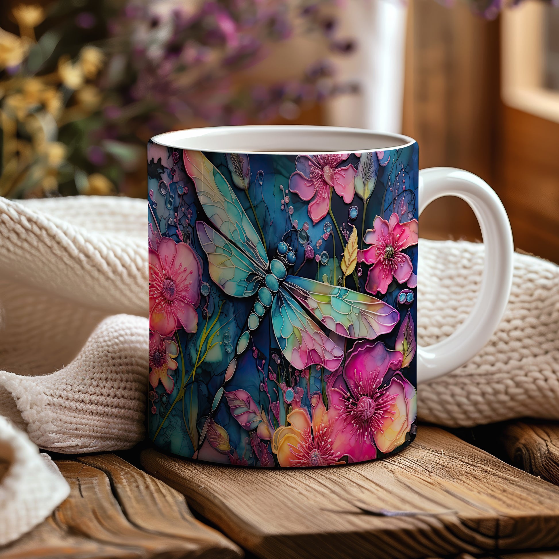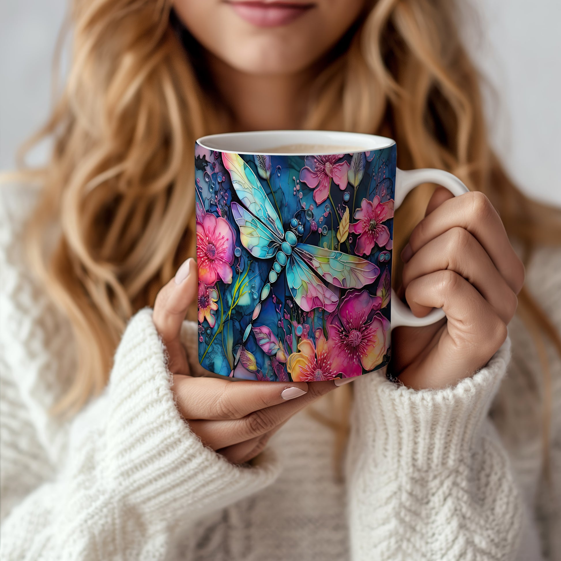 Tento hrnek je ozdobený krásnou vážkou a pestrými květinami, což mu dodává jedinečný styl. Je ideální pro milovníky přírody a skvělý tip na dárek pro přátele nebo rodinu. Materiál: keramika. Objem: 330 ml. Vhodné do myčky i mikrovlnky. Používáním tohoto hrnku si užijete nejen svůj oblíbený nápoj, ale také příjemný pohled na jeho design.