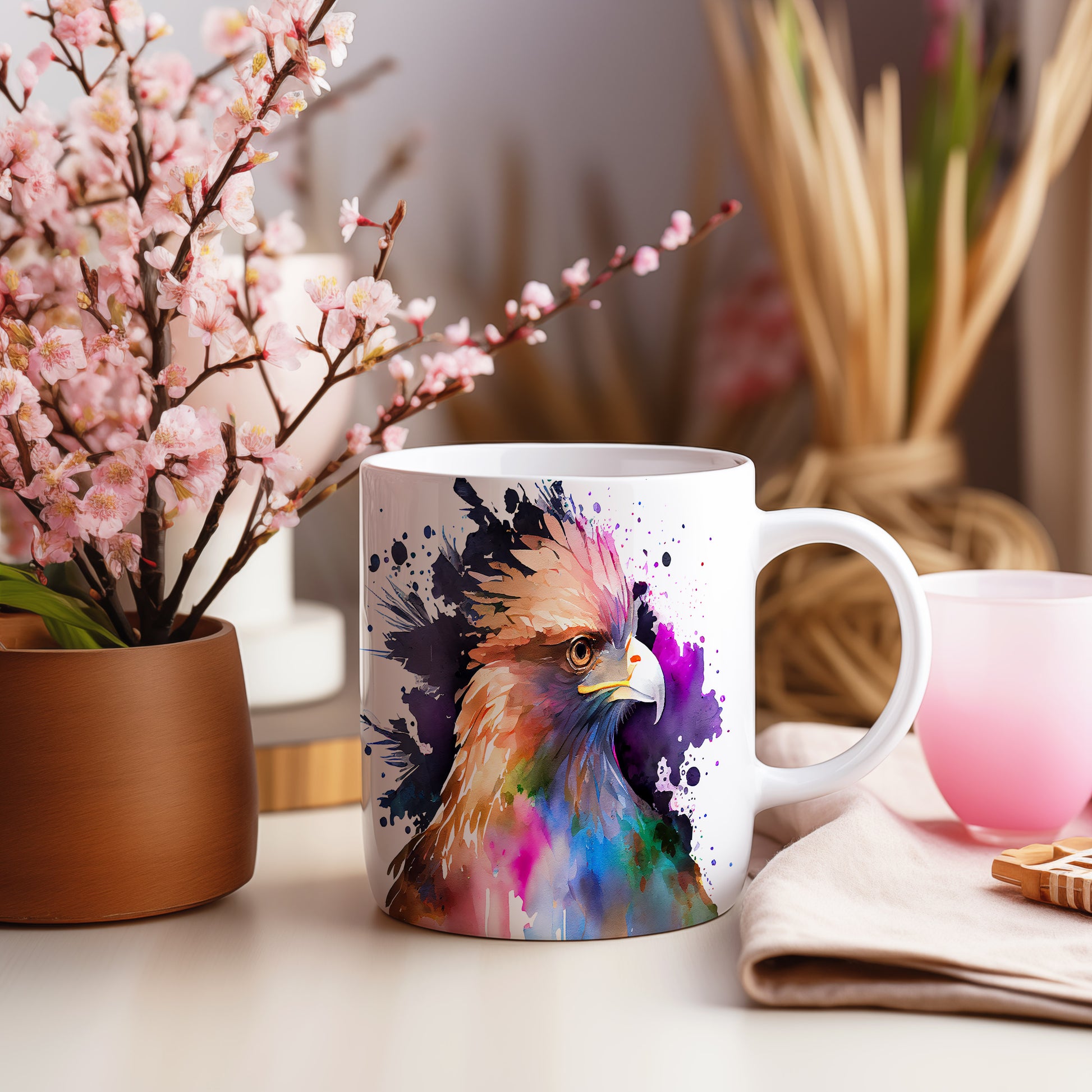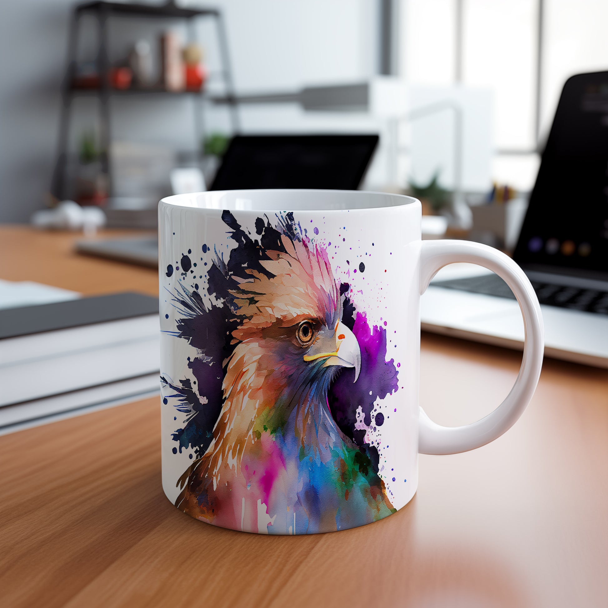Tento krásný hrnek s motivem orla v akvarelovém stylu přináší do vašeho dne dynamický vzhled. Je ideální pro milovníky přírody a skvělým dárkem pro každého, kdo ocení originální design. Materiál: keramika. Objem: 330 ml. Vhodné do myčky i mikrovlnky. Používáním tohoto hrnku si zpříjemníte každé sousto a nápoj.