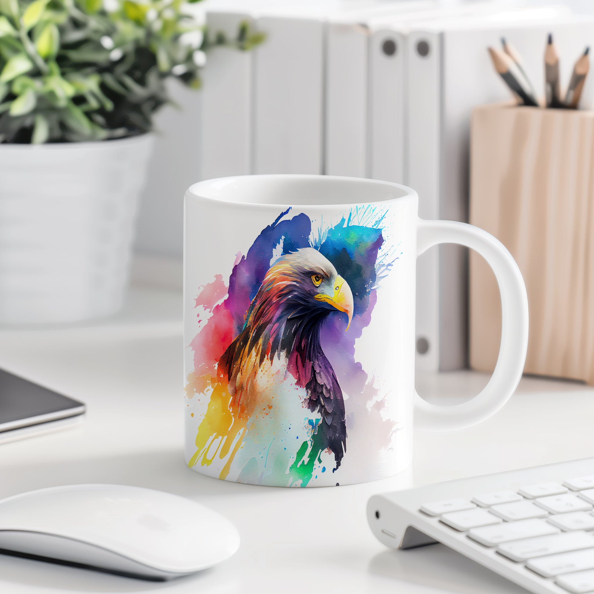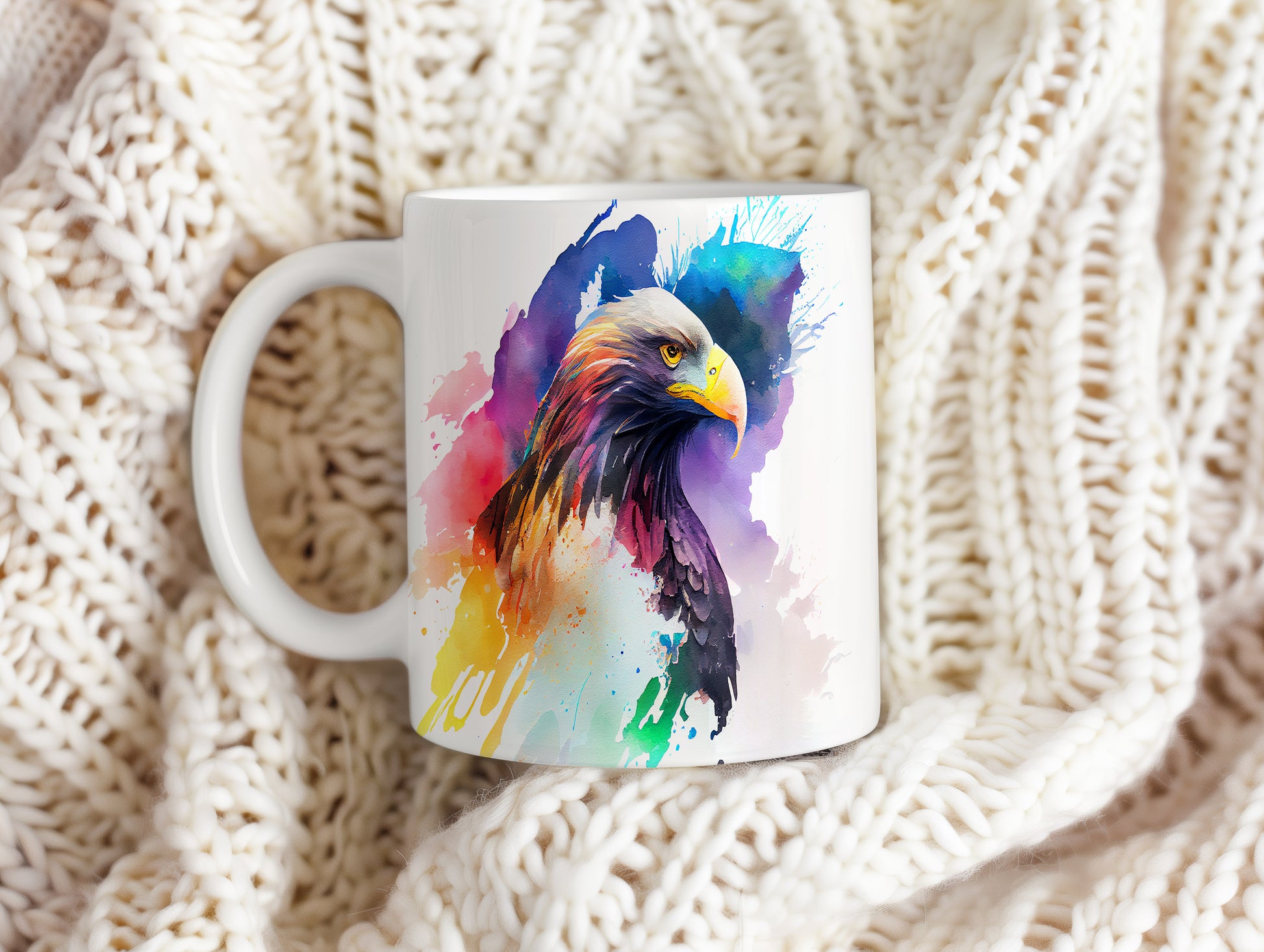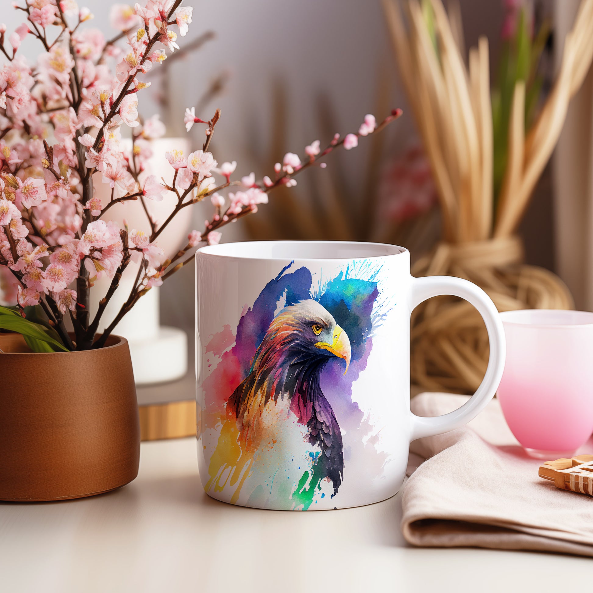 Hrnek s barevným orlem v uměleckém stylu