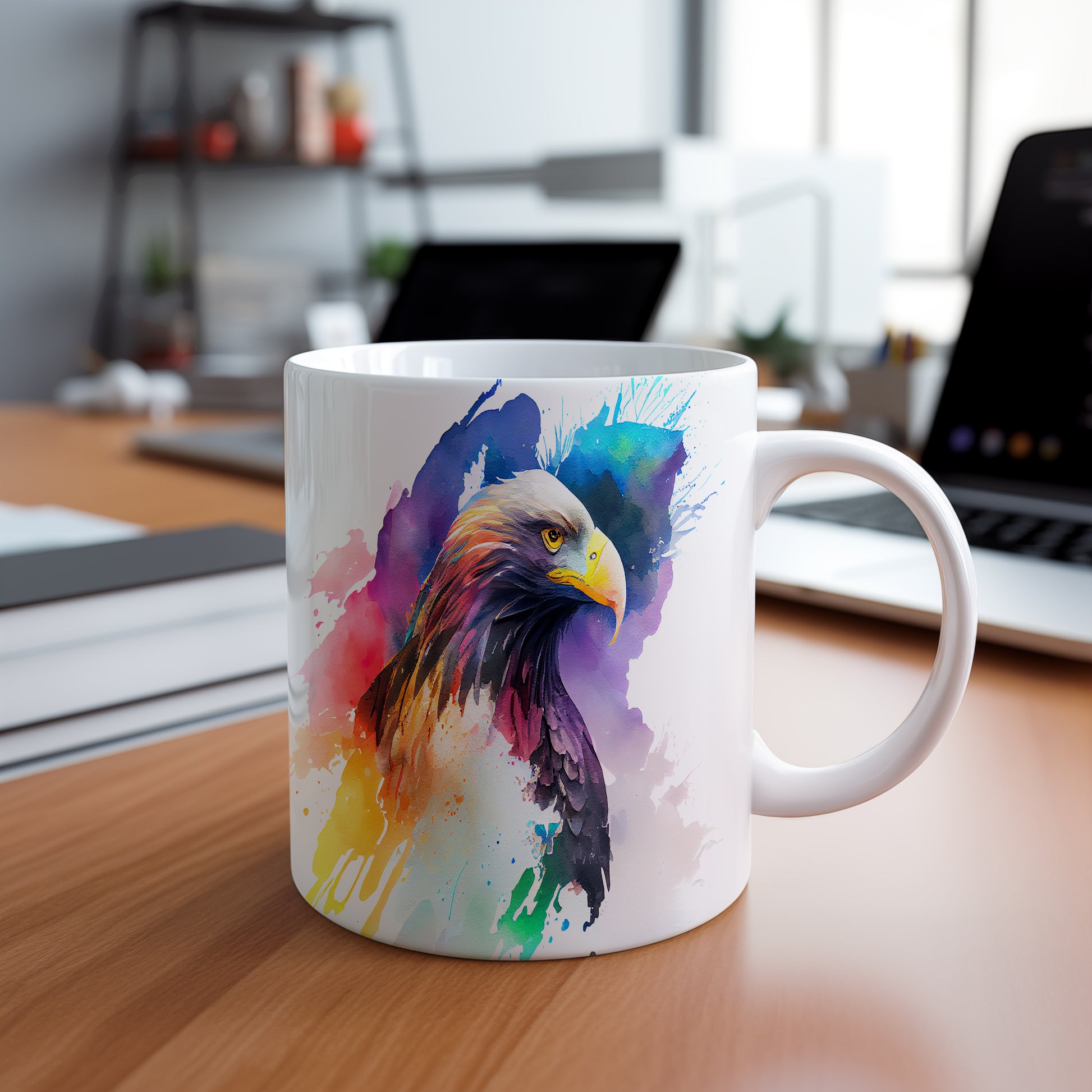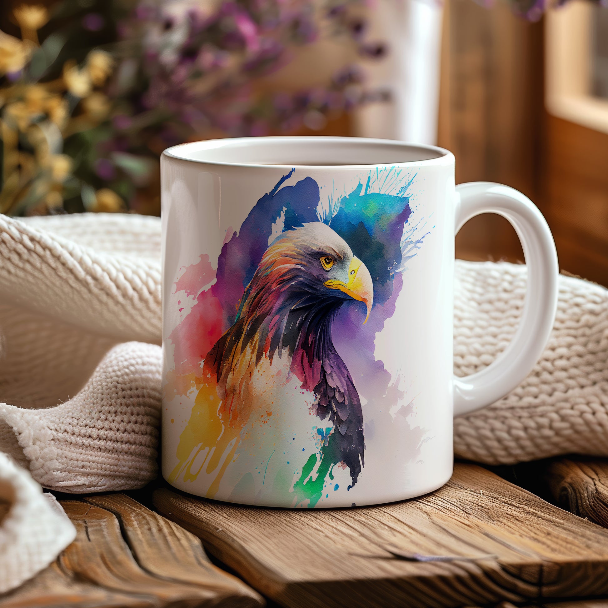 Hrnek s krásným barevným motivem orla, který zaujme svým uměleckým stylem. Tento hrnek je ideální pro milovníky přírody a skvělý tip na dárek pro každého, kdo ocení originální design. Materiál: keramika. Objem: 330 ml. Vhodné do myčky i mikrovlnky. Díky svému jedinečnému vzhledu přináší do každodenního pití radost a styl.
