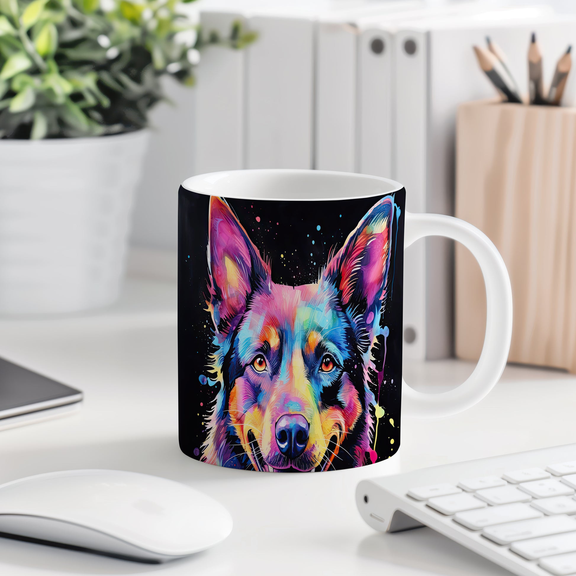 Tento keramický hrnek s výrazným motivem psa v pestrých barvách je skvělým doplňkem pro milovníky zvířat a umění. Je ideální jako dárek pro přátele nebo rodinu, kteří ocení originální design. Materiál: keramika. Objem: 330 ml. Vhodné do myčky i mikrovlnky. Používání tohoto hrnku přináší radost a oživí každé pití.