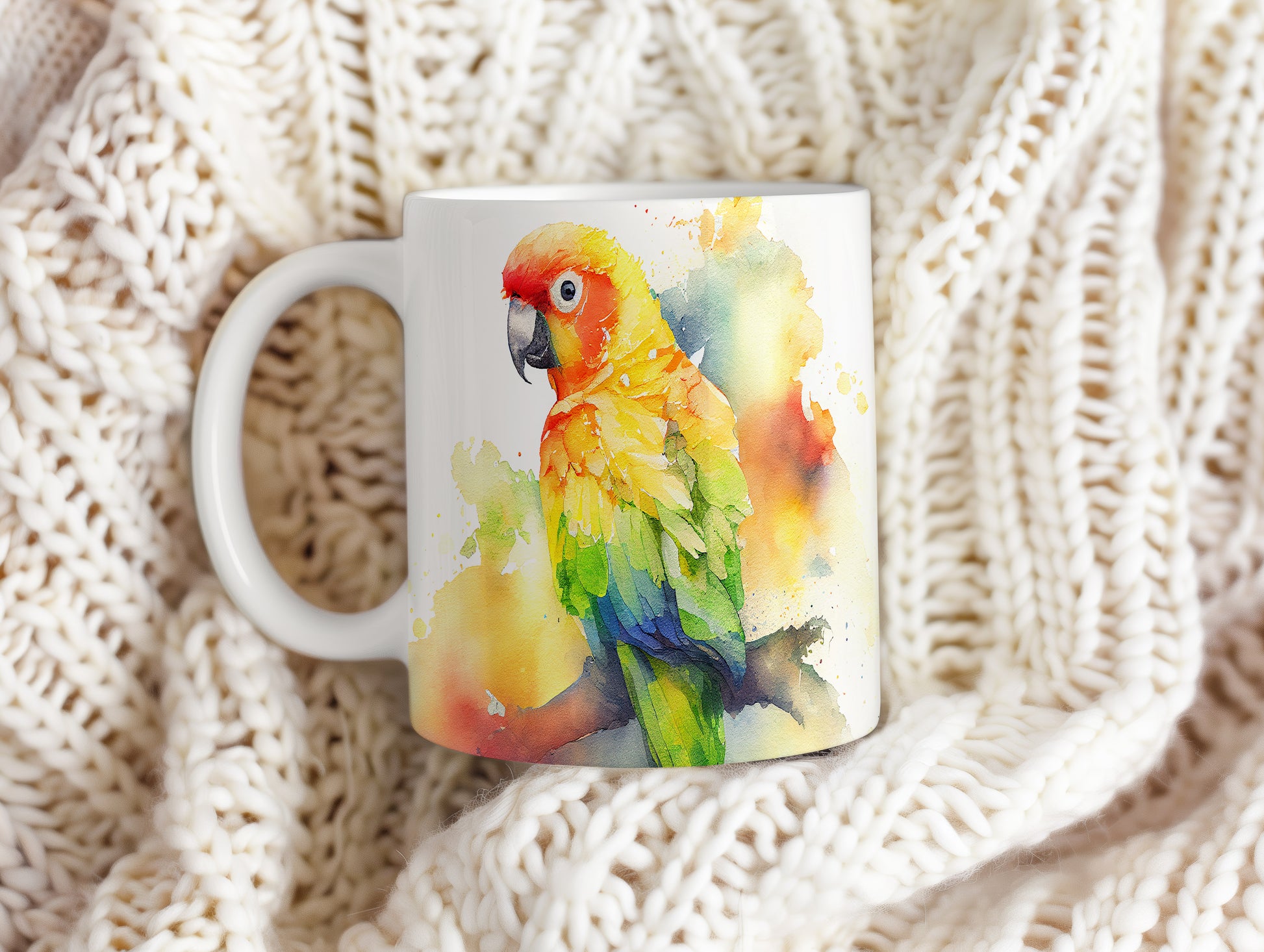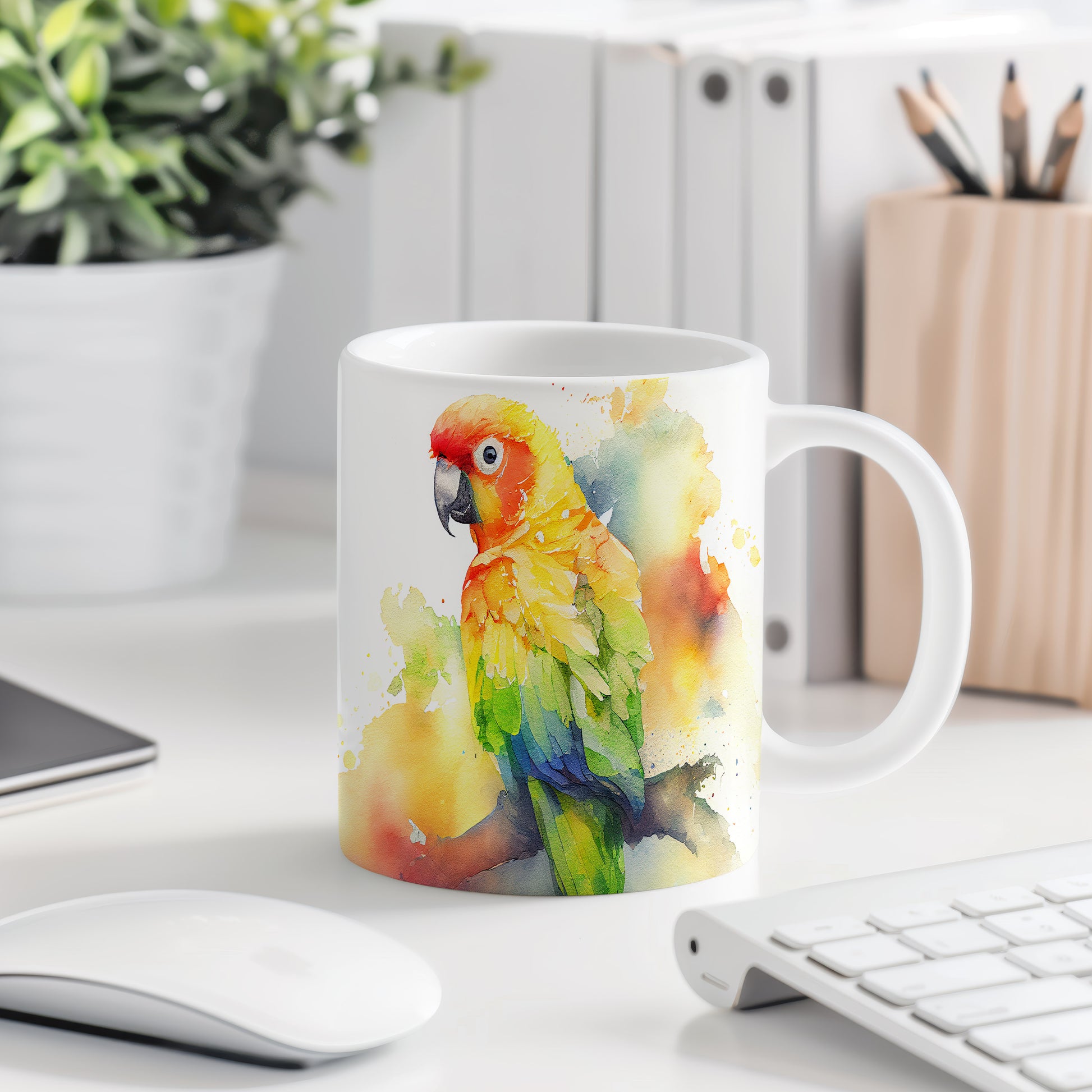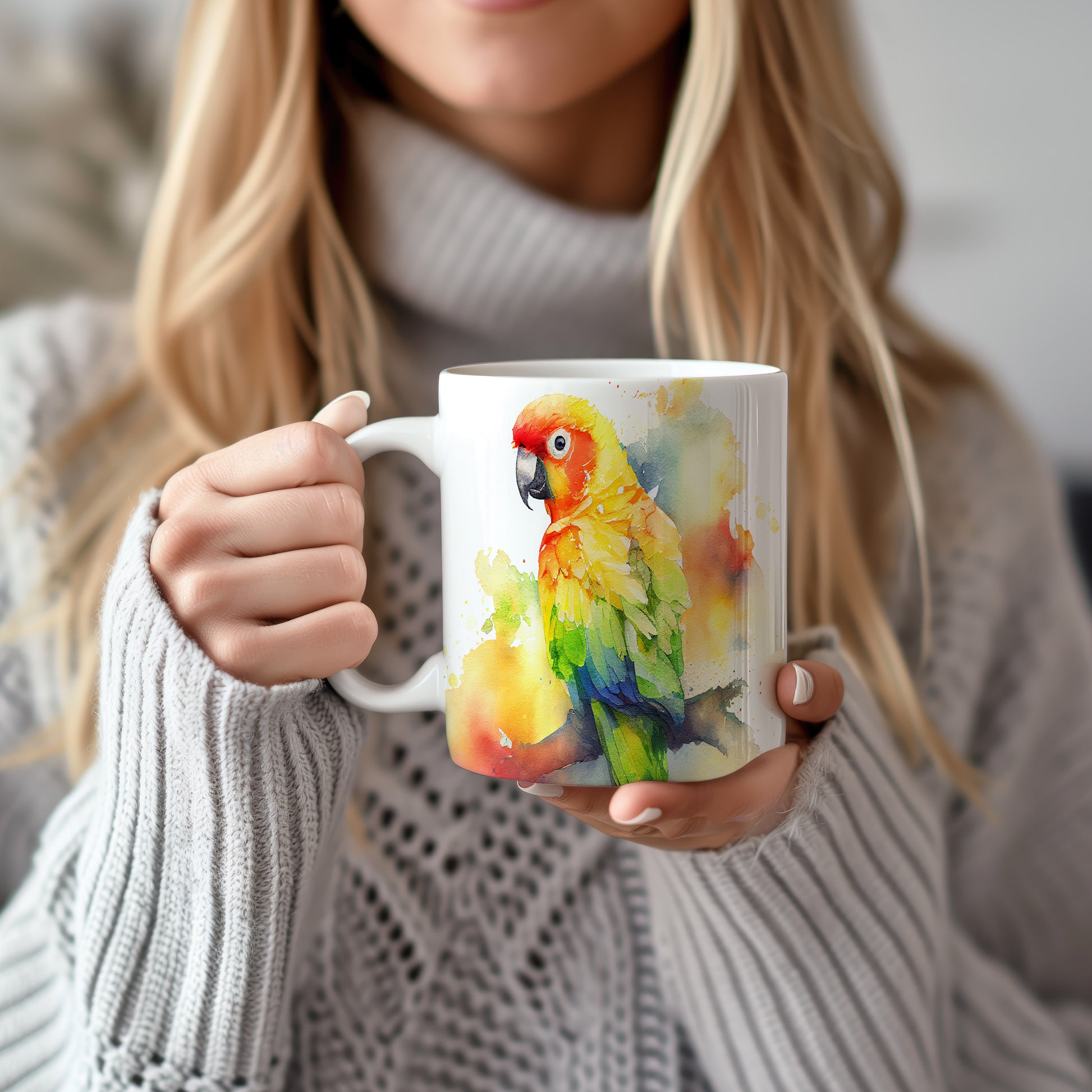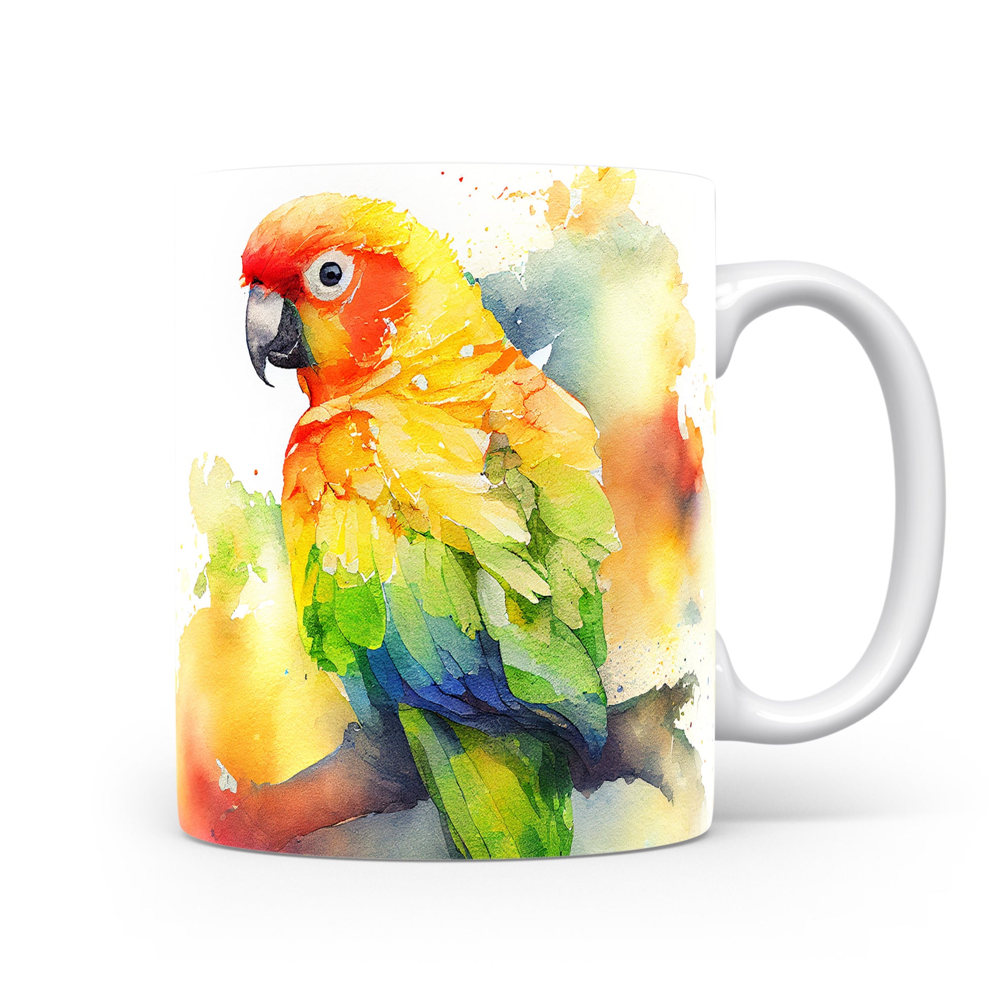 Tento hrnek zobrazuje krásného papouška v živých akvarelových barvách. Je ideální pro milovníky exotických ptáků a skvělým dárkem pro přátele či rodinu. Materiál: keramika. Objem: 330 ml. Vhodné do myčky i mikrovlnky. Užijte si každé sousto s tímto uměleckým kouskem, který přinese do vašeho dne radost a barevnost.