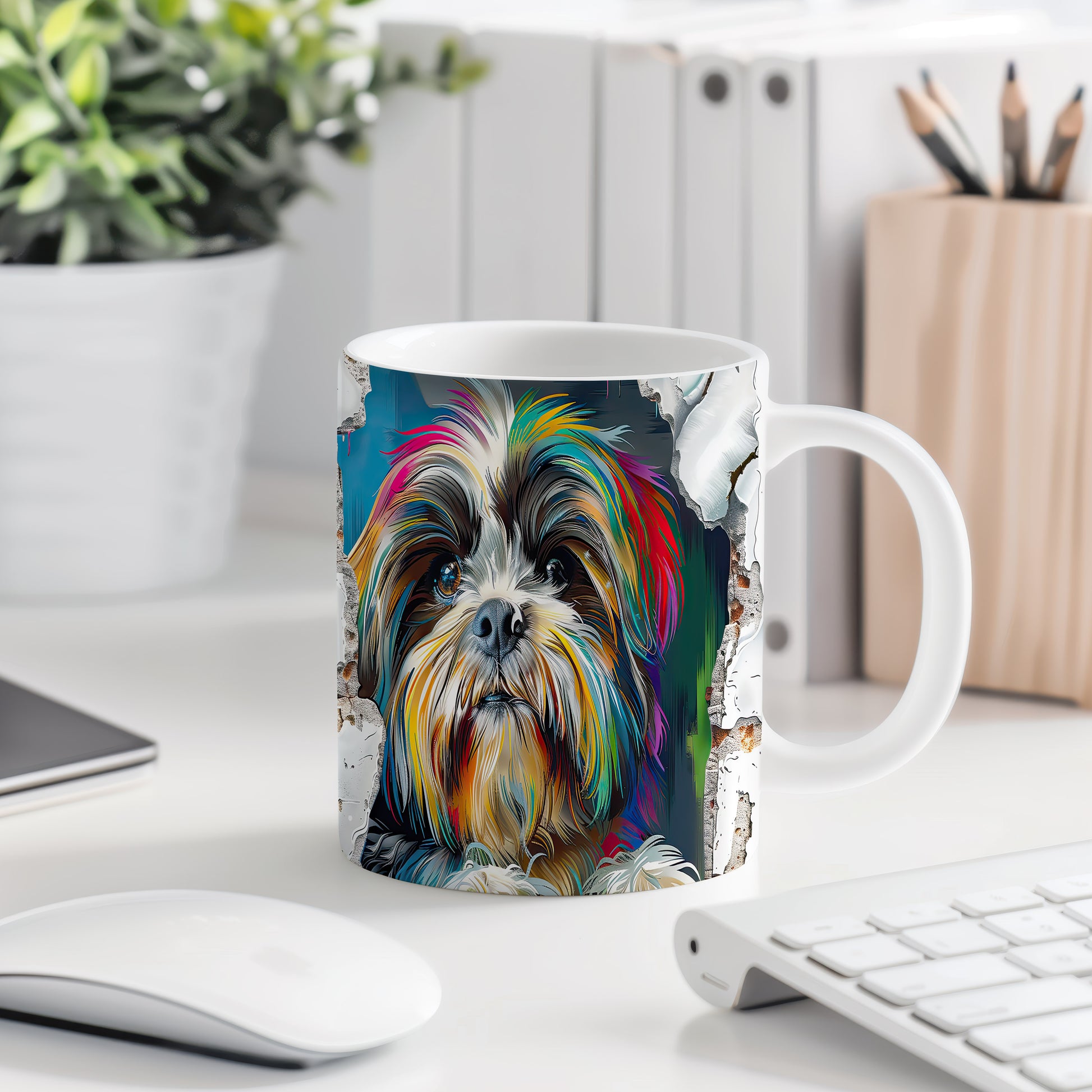Hrnek s barevným pejskem přináší radost a hravost do každého dne. Tento keramický hrnek je ideální pro milovníky zvířat a skvělý tip na originální dárek. Materiál: keramika. Objem: 330 ml. Vhodné do myčky i mikrovlnky. Užijte si každé sousto s tímto veselým hrnkem, který vám zpříjemní chvíle s oblíbeným nápojem.