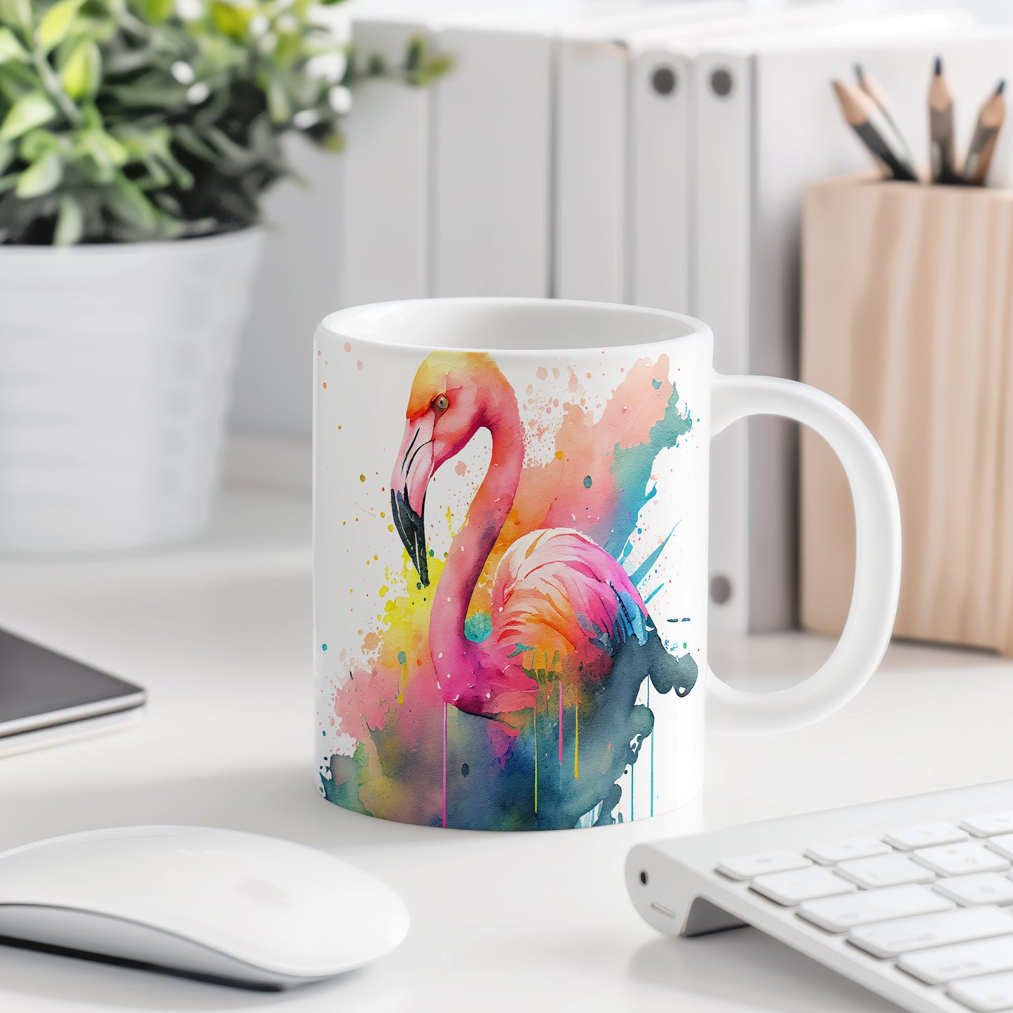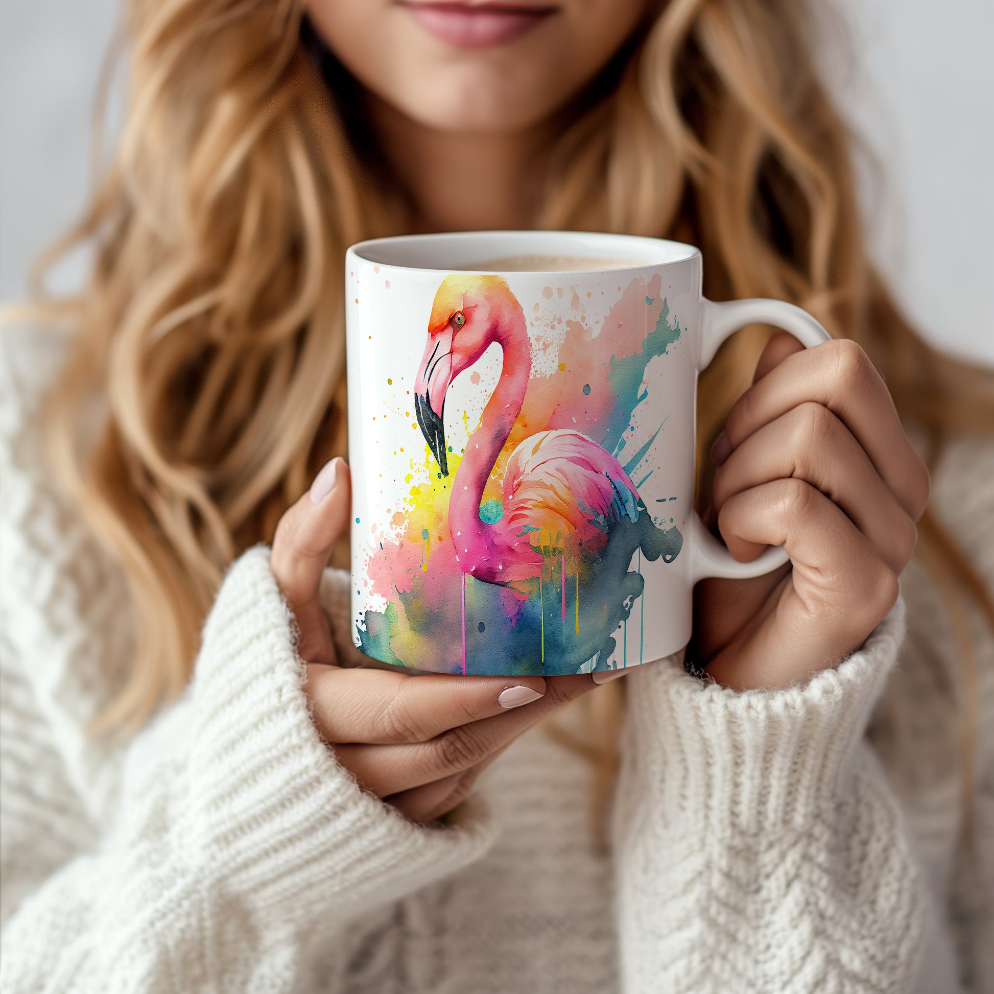 Tento hrnek s motivem barevného plameňáka v akvarelovém stylu přináší do vašeho dne radost a svěžest. Je ideální pro milovníky exotických zvířat a skvělým dárkem pro přátele či rodinu. Materiál: keramika. Objem: 330 ml. Vhodné do myčky i mikrovlnky. Užívejte si oblíbené nápoje s tímto stylovým hrnkem, který dodá každému doušku šmrnc.