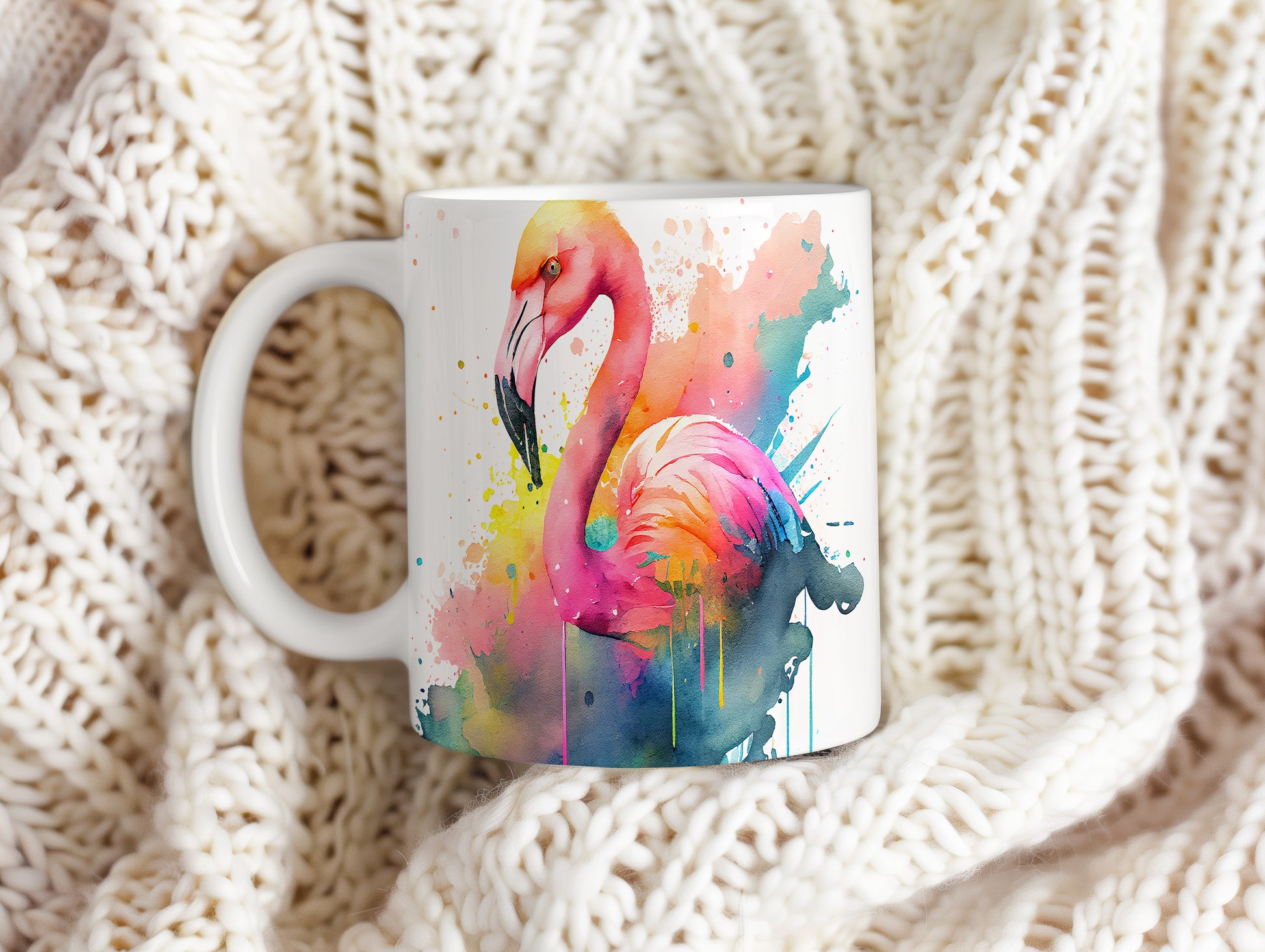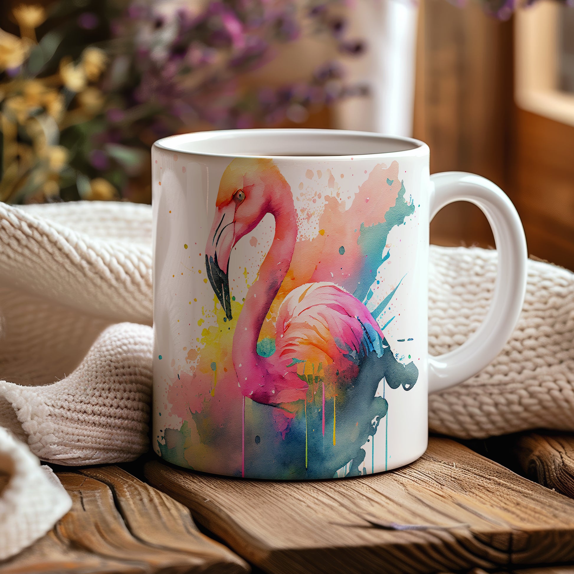 Hrnek s barevným plameňákem – akvarelovým motivem