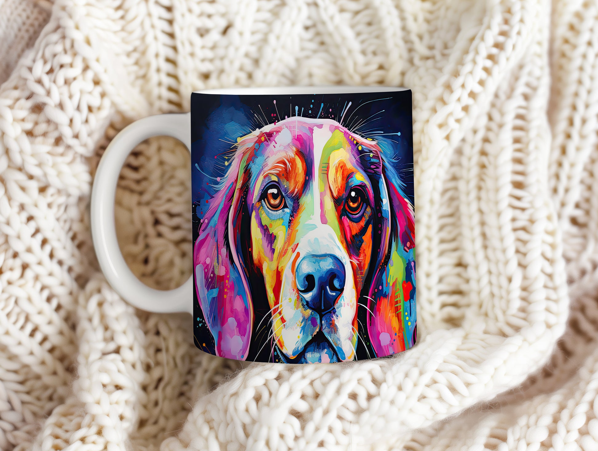 Barevný hrnek s realistickým portrétem beagle. Tento motiv potěší všechny milovníky psů a zvířat. Skvělý tip na dárek pro přátele nebo rodinu, kteří mají rádi své čtyřnohé kamarády. Materiál: keramika. Objem: 330 ml. Vhodné do myčky i mikrovlnky. Používání tohoto hrnku přináší radost a oživí každé pití.