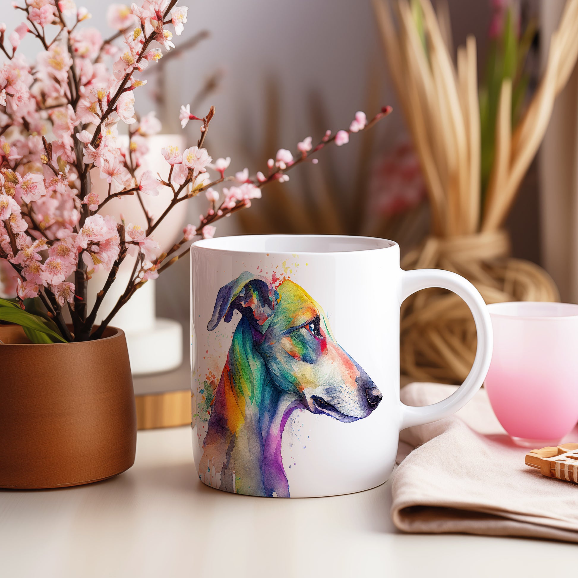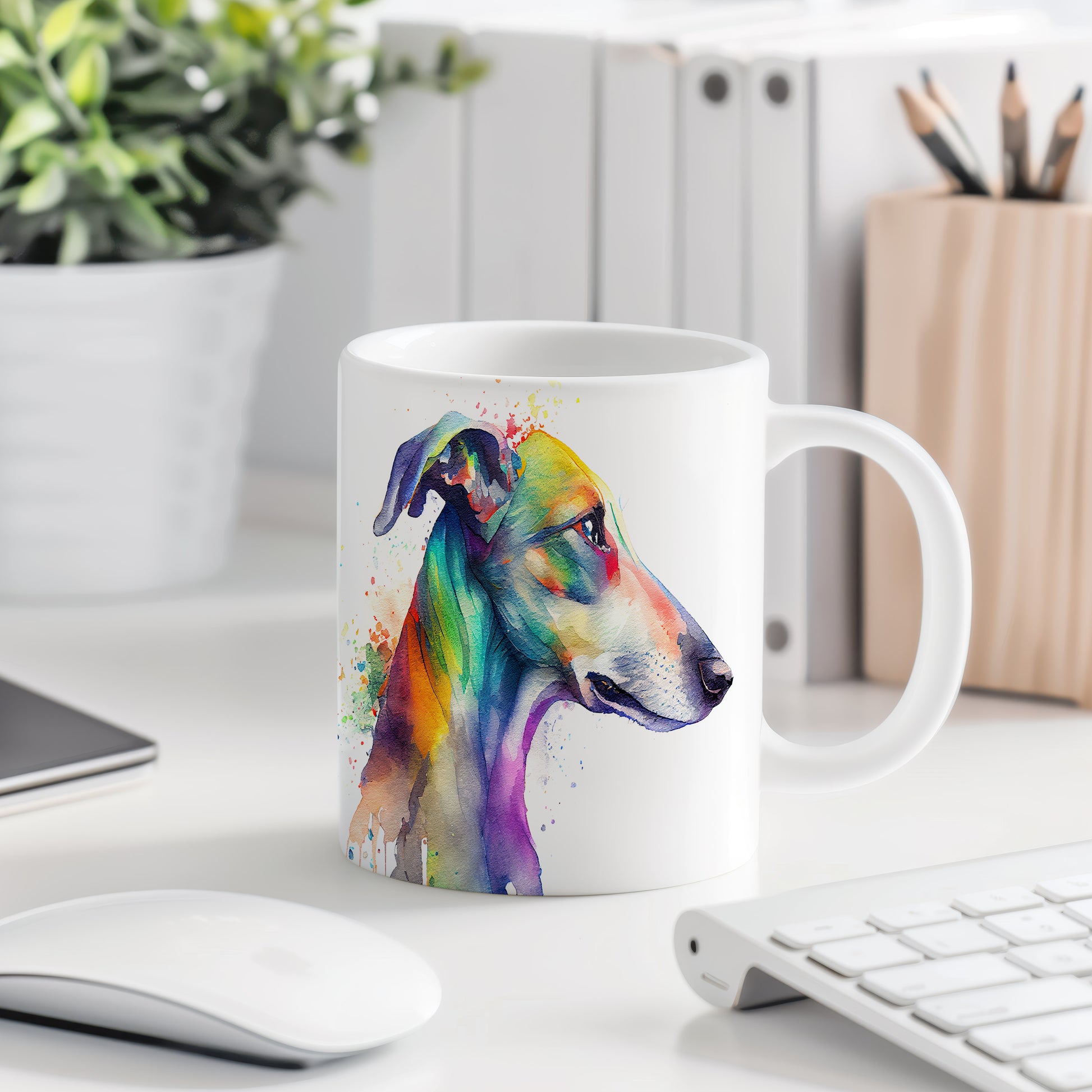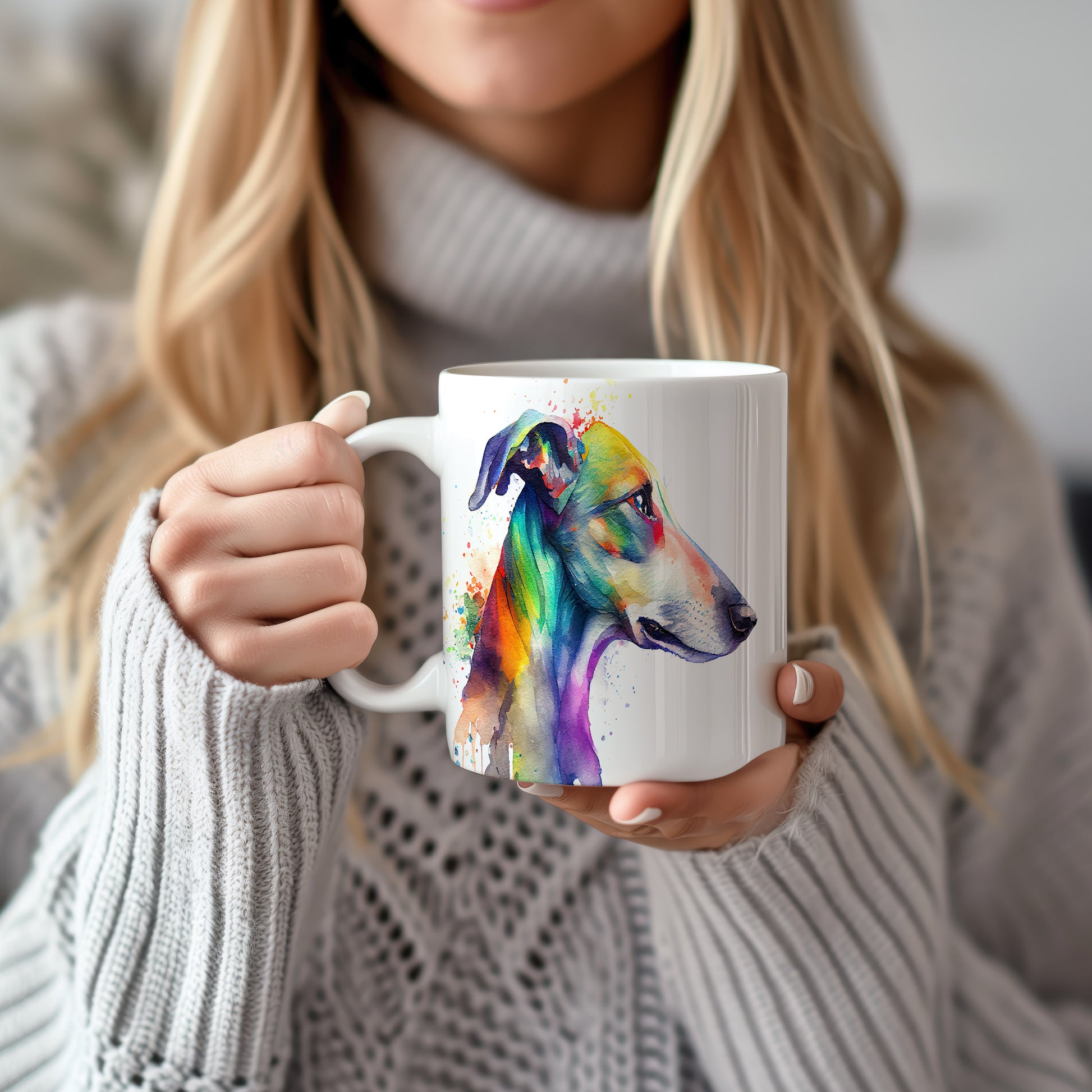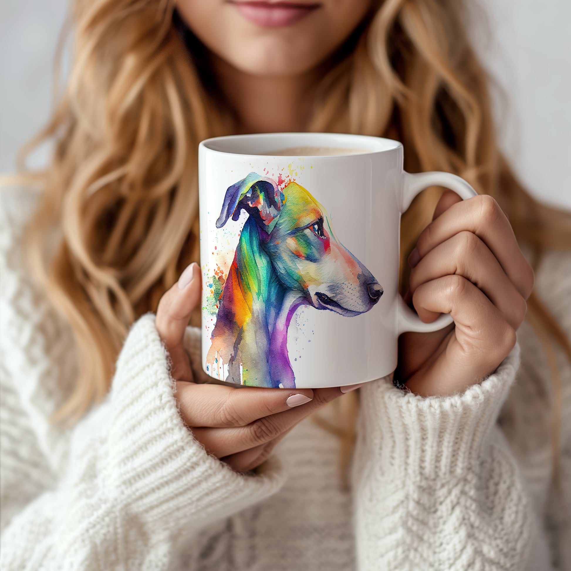 Hrnek s barevným portrétem chrta – v modrých tónech