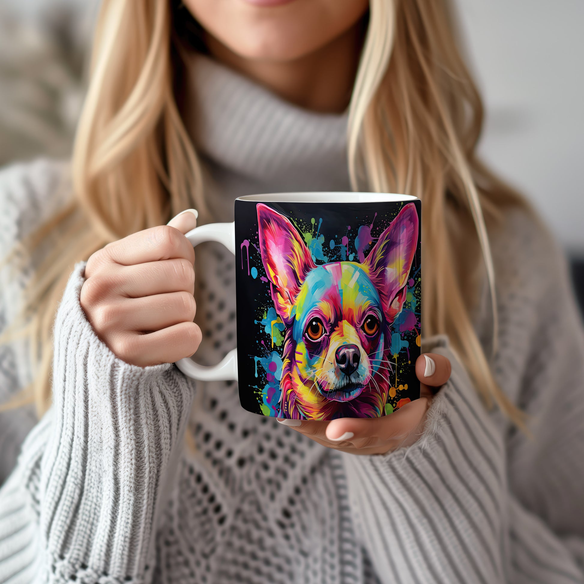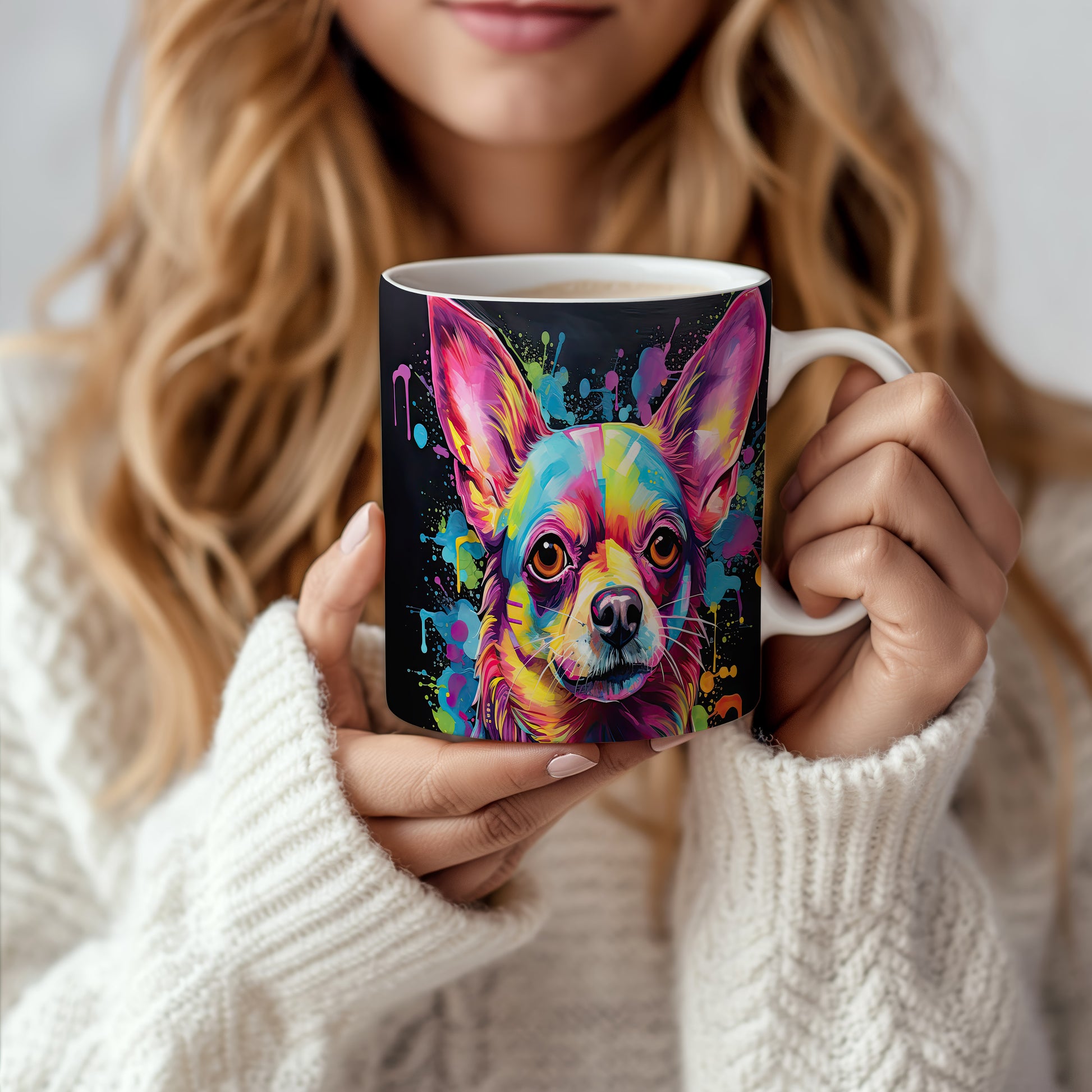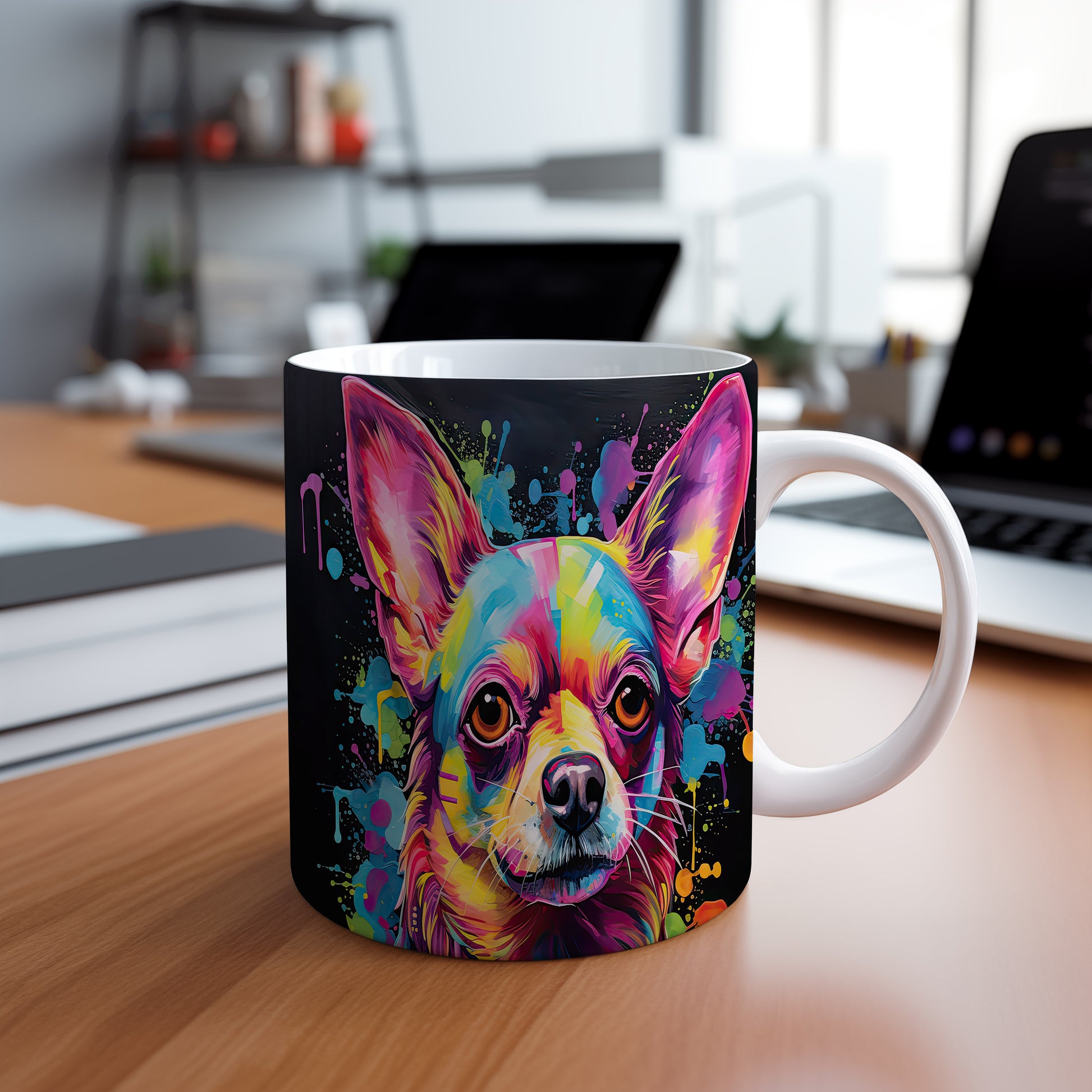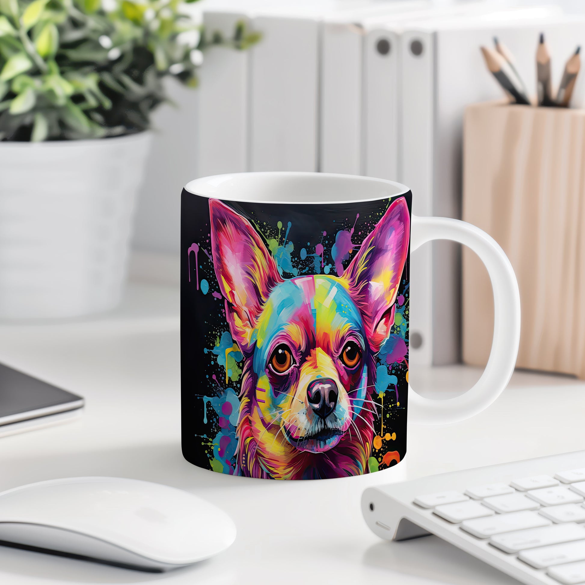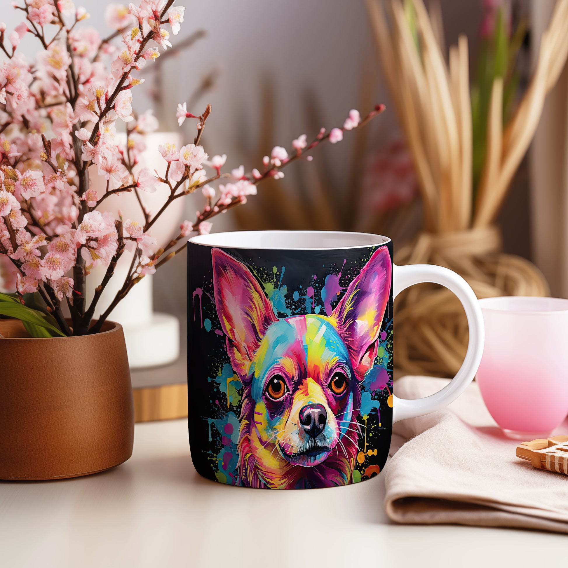 Tento hrnek zobrazuje živý a barevný portrét čivavy, ideální pro milovníky psů a zvířat. Skvělý tip na dárek pro každého, kdo má rád své čtyřnohé přátele. Materiál: keramika. Objem: 330 ml. Vhodné do myčky i mikrovlnky. Používáním tohoto hrnku si užijete každé sousto a nápoj s oblíbeným motivem.