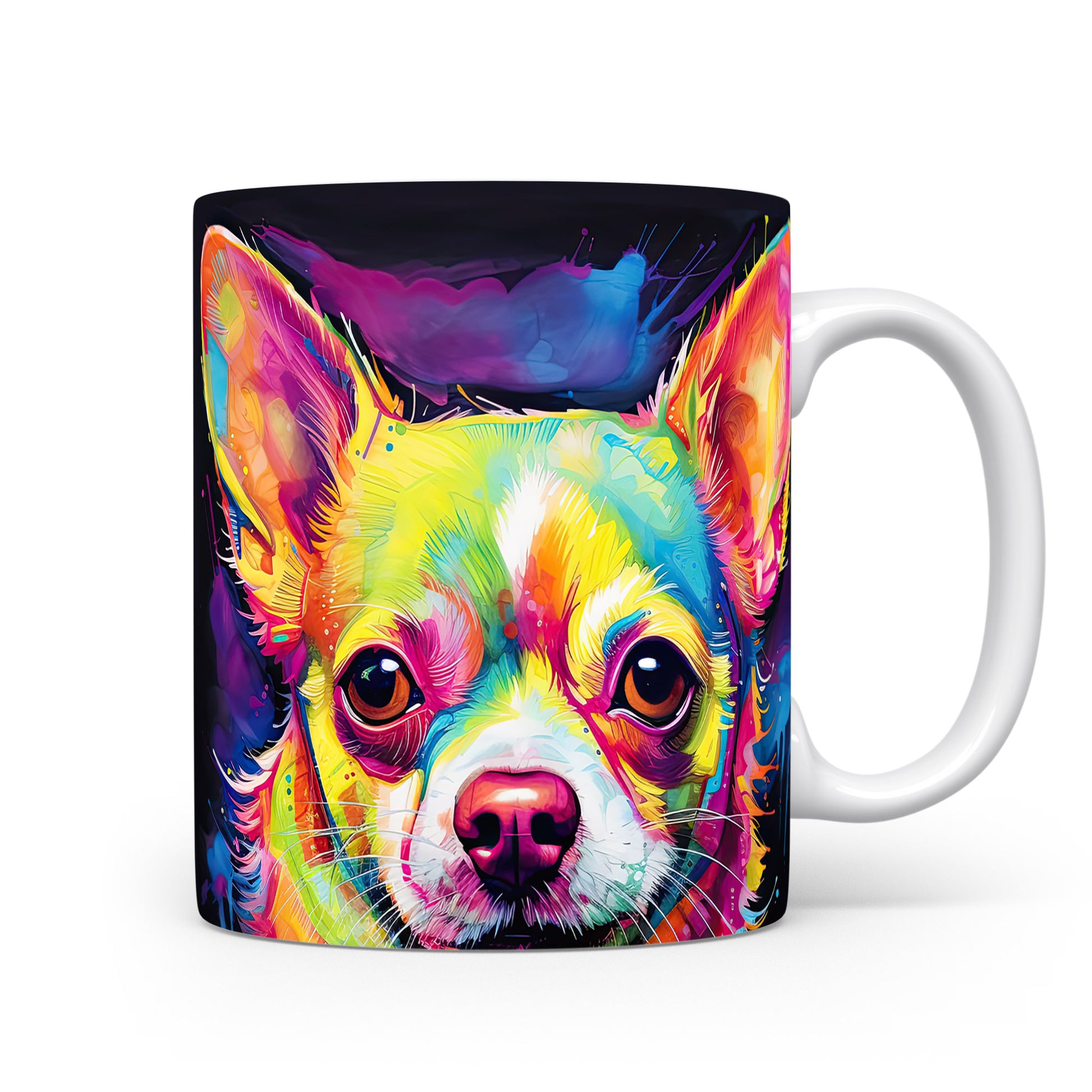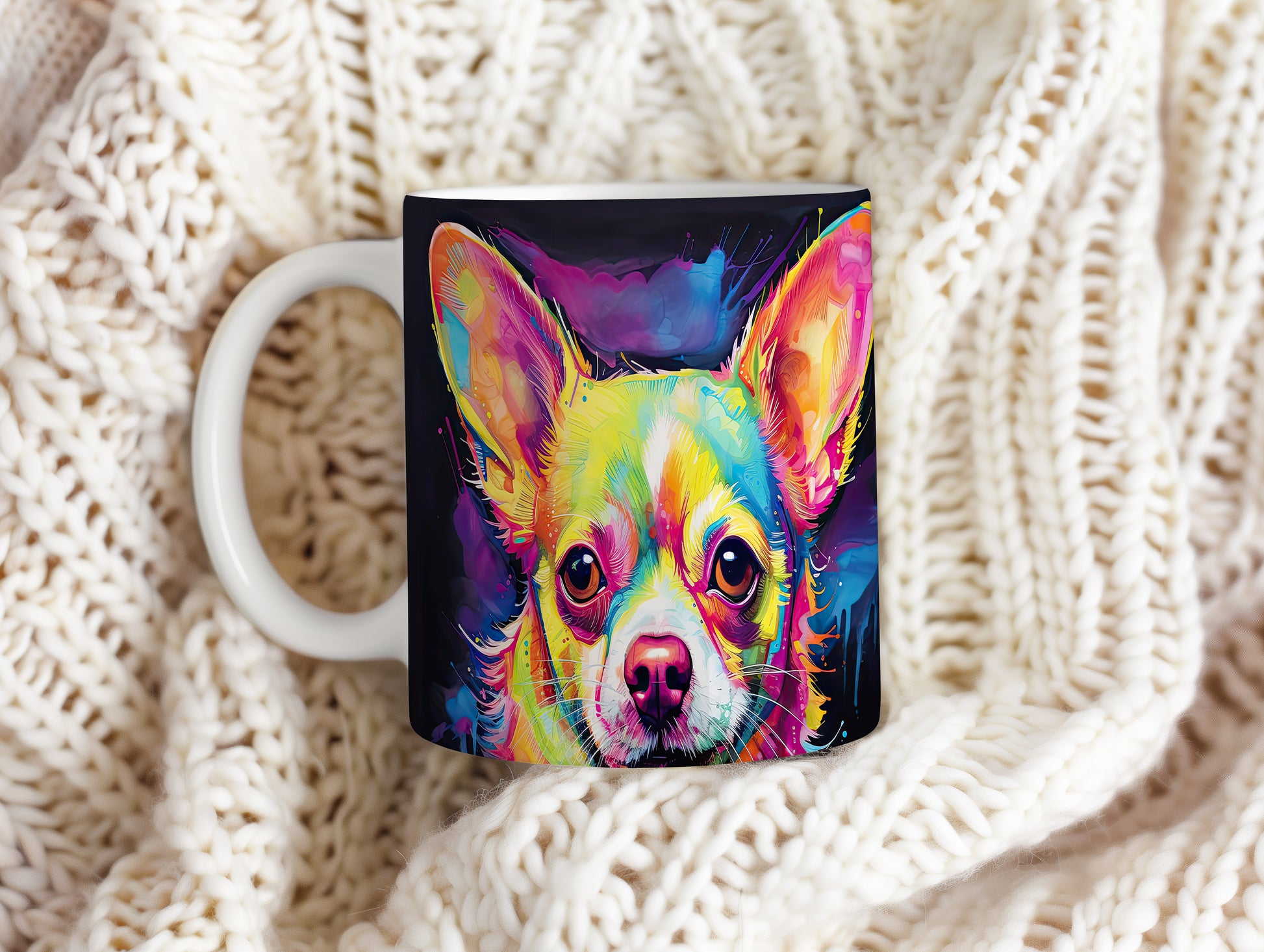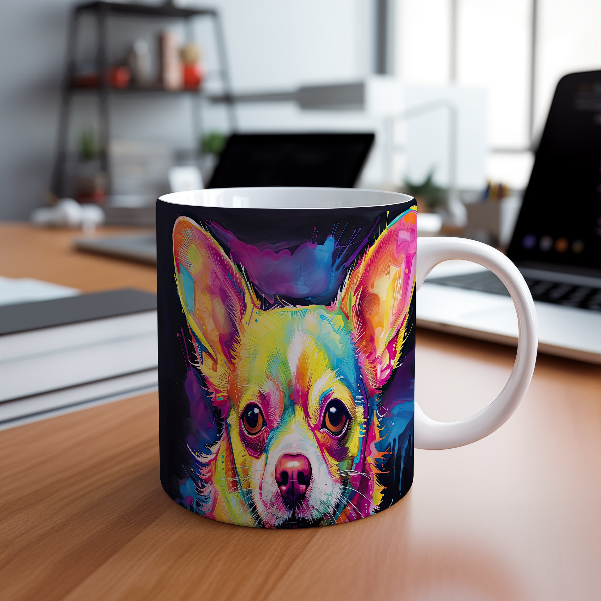 Hrnek s barevným portrétem čivavy a 3D efektem