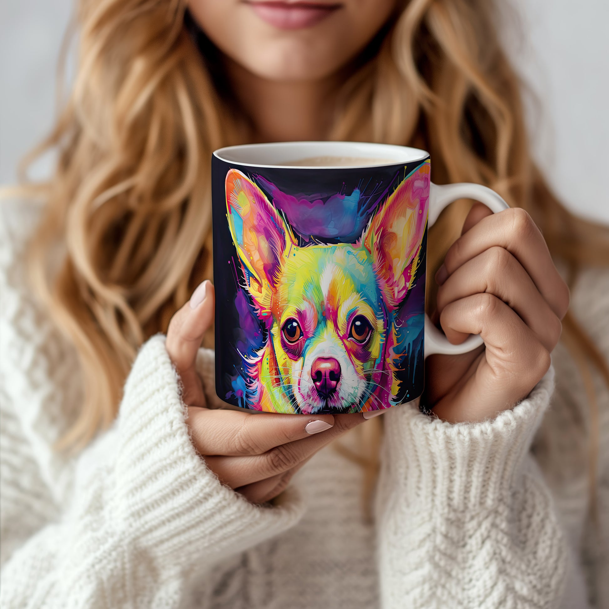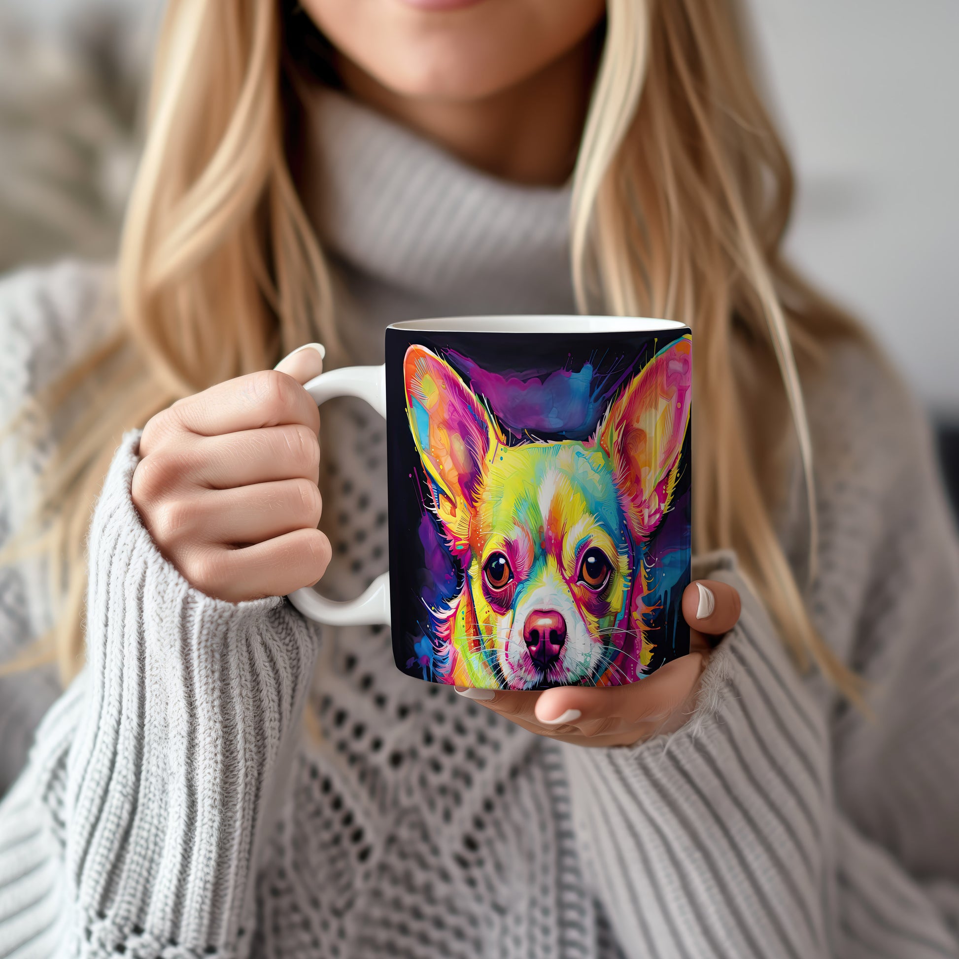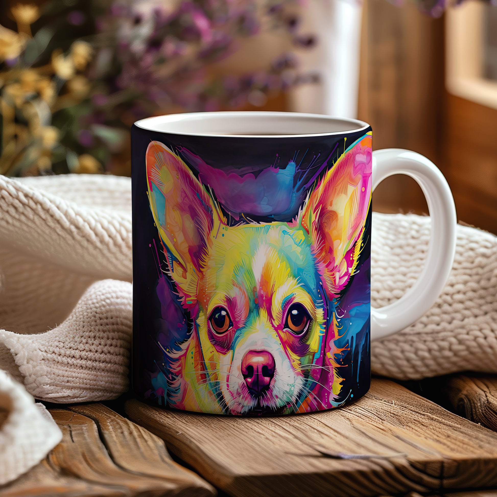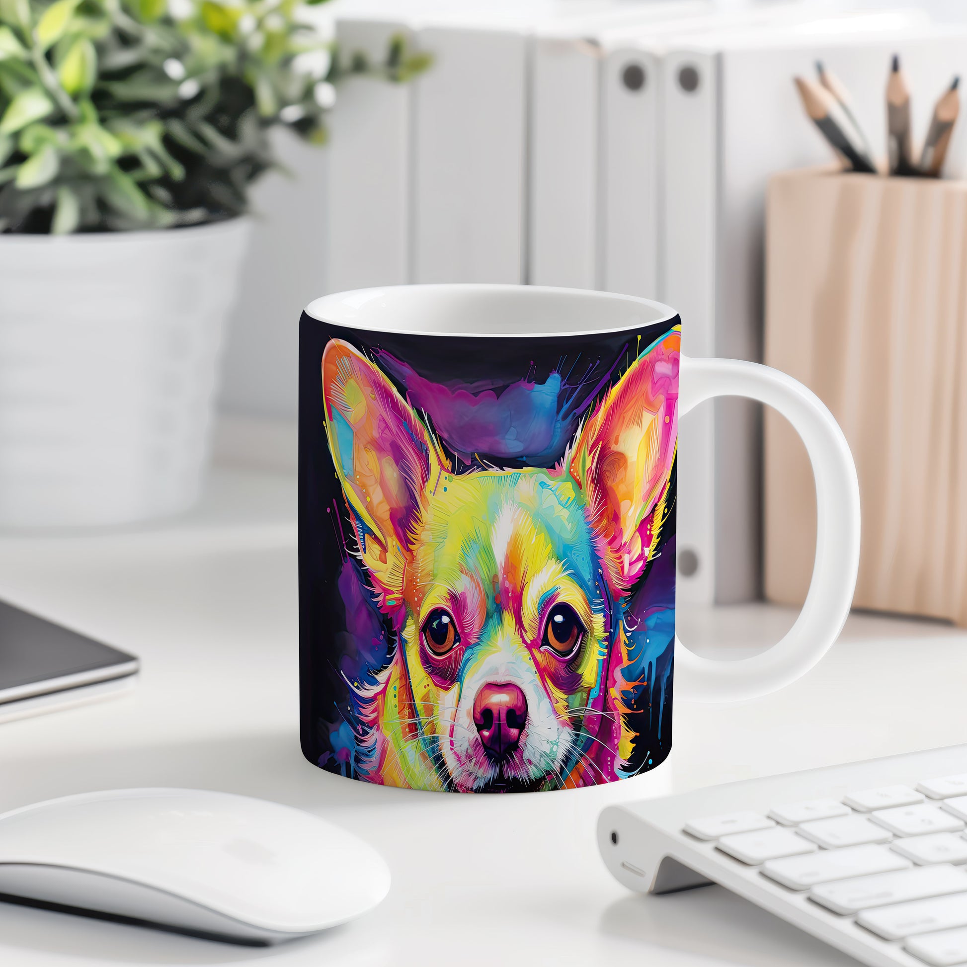 Hrnek s barevným portrétem čivavy a 3D efektem