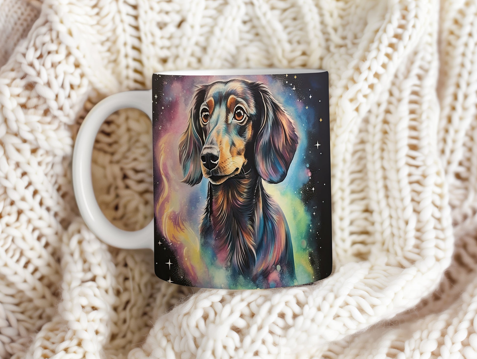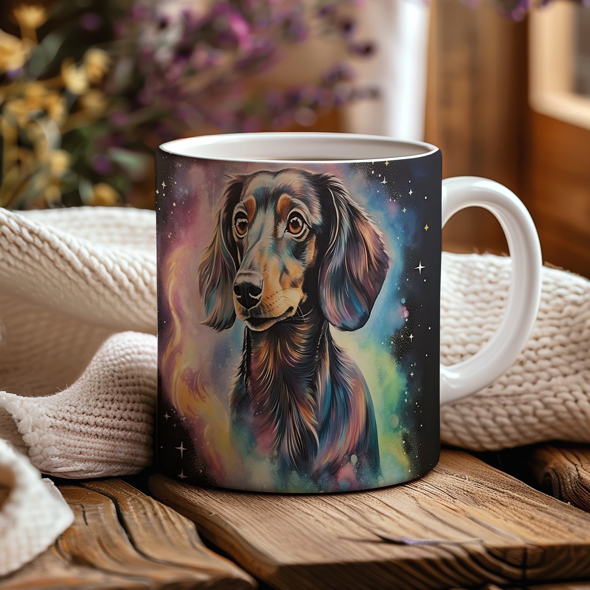 Hrnek s barevným portrétem dachshunda