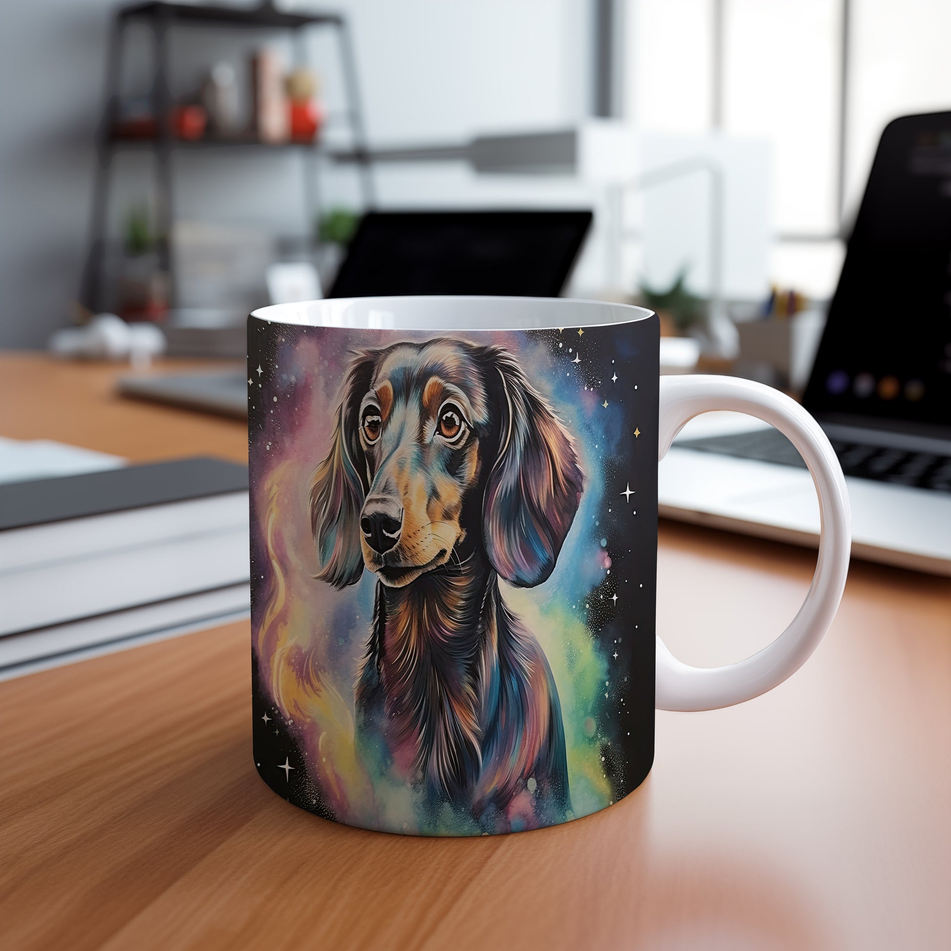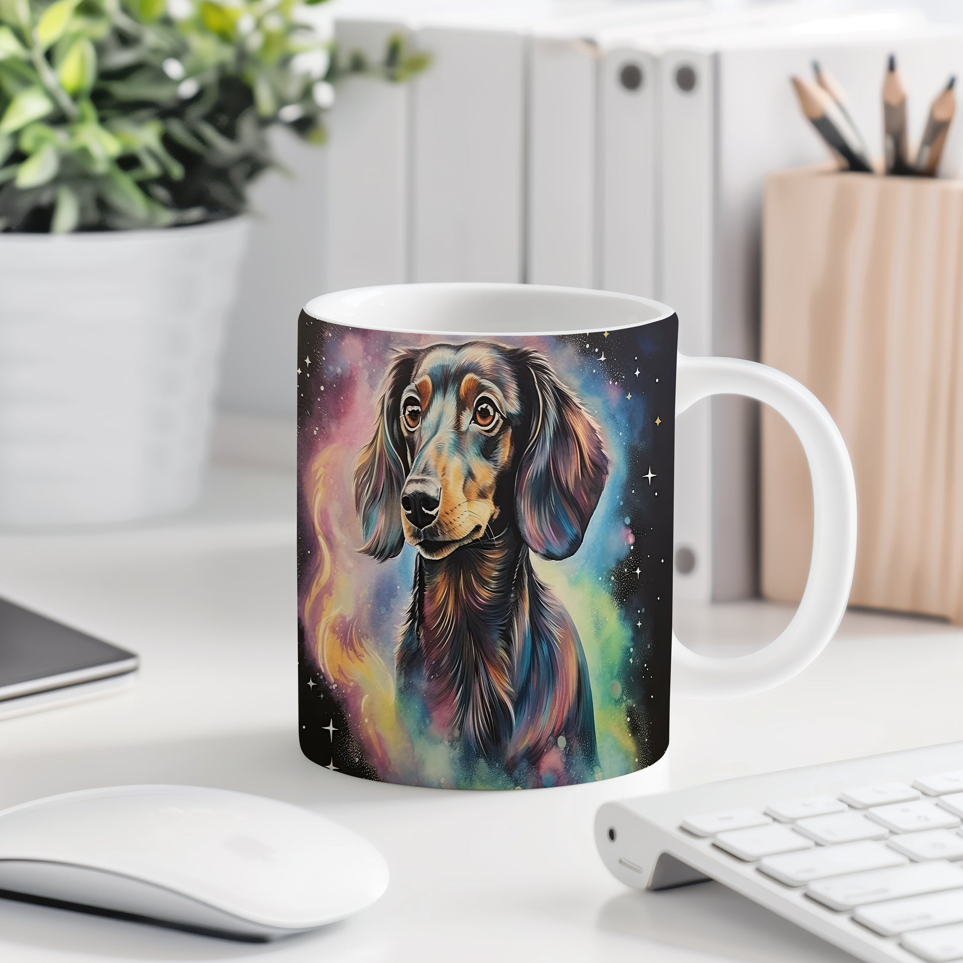 Hrnek s realistickým barevným portrétem dachshunda, ideální pro milovníky psů. Tento hrnek je skvělým dárkem pro každého, kdo má rád zvířata a originální design. Materiál: keramika. Objem: 330 ml. Vhodné do myčky i mikrovlnky. Používání tohoto hrnku přináší radost a zábavu při každém doušku.