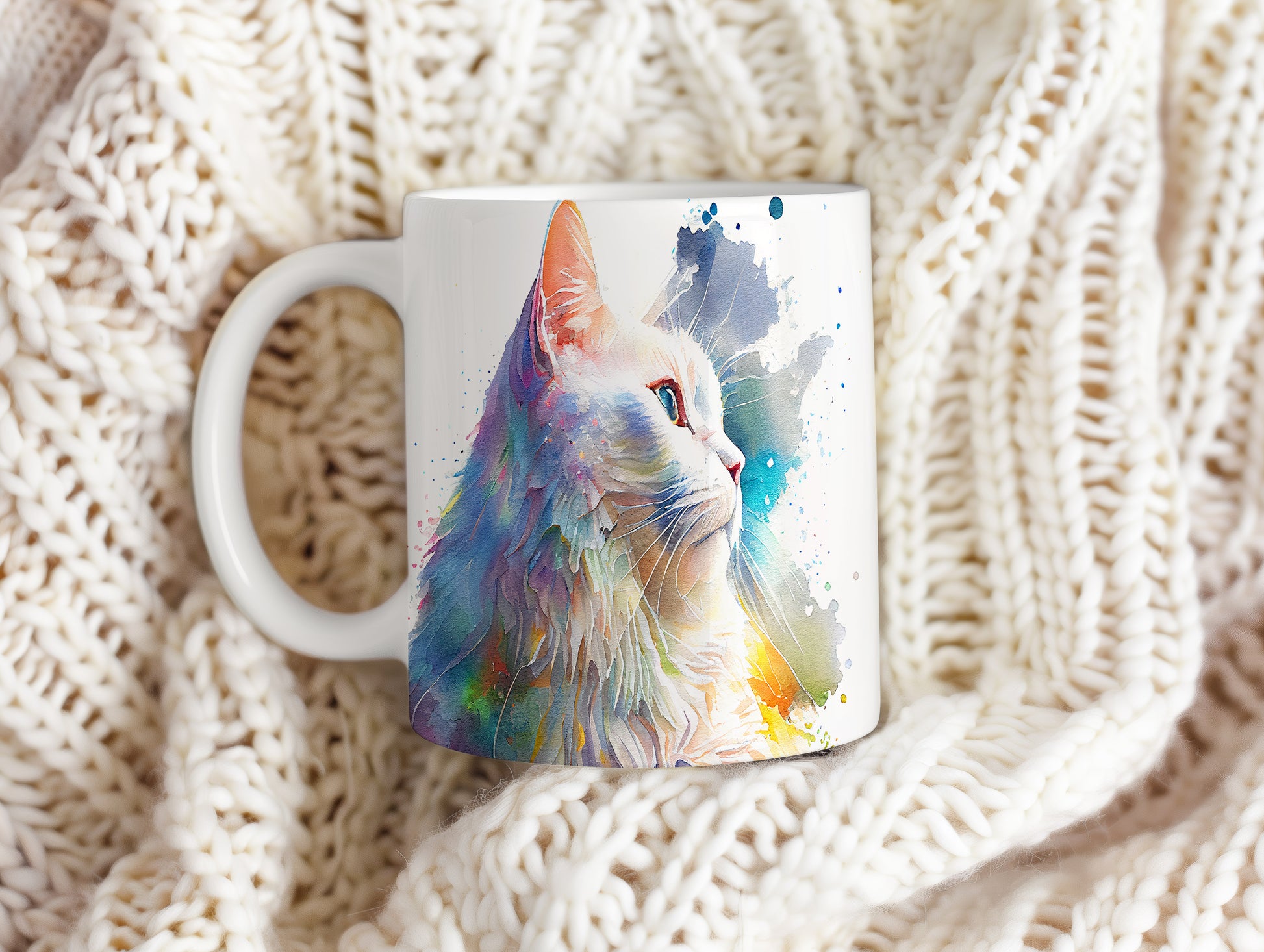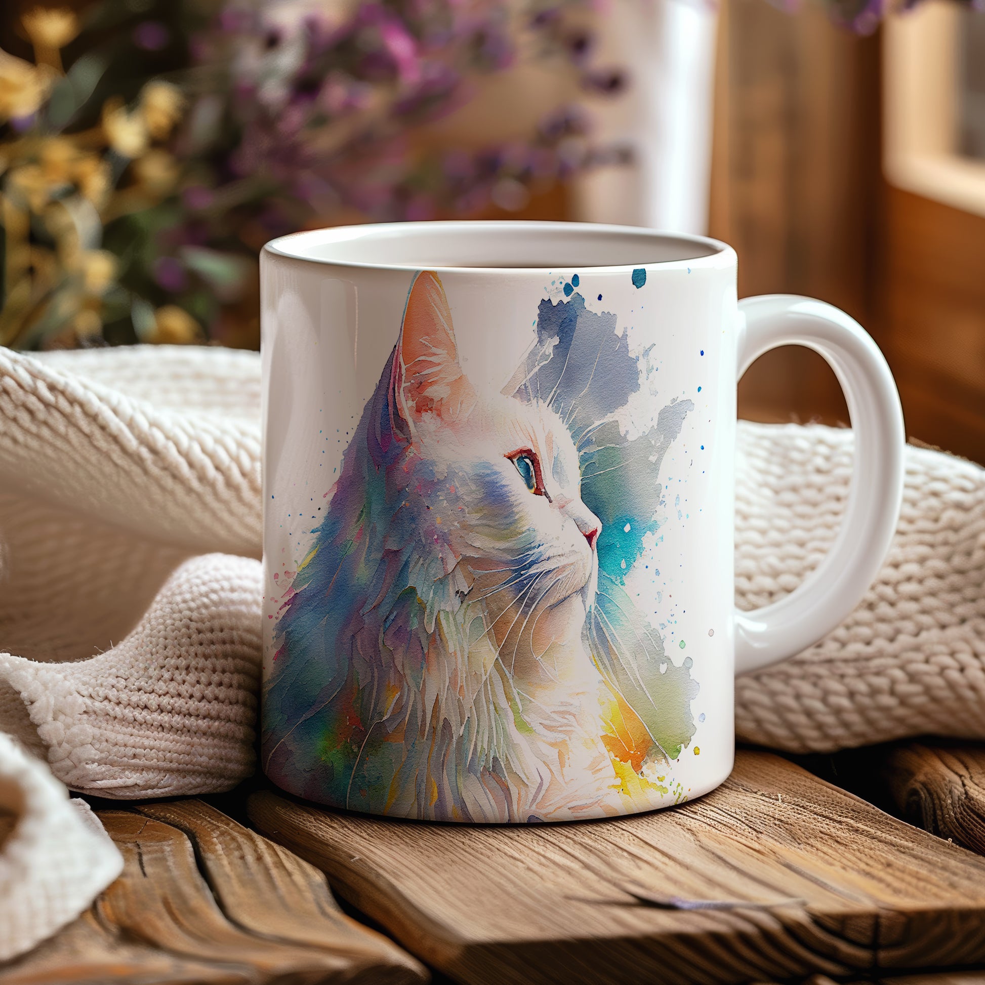 Hrnek s barevným portrétem kočky – dárkovým tipem