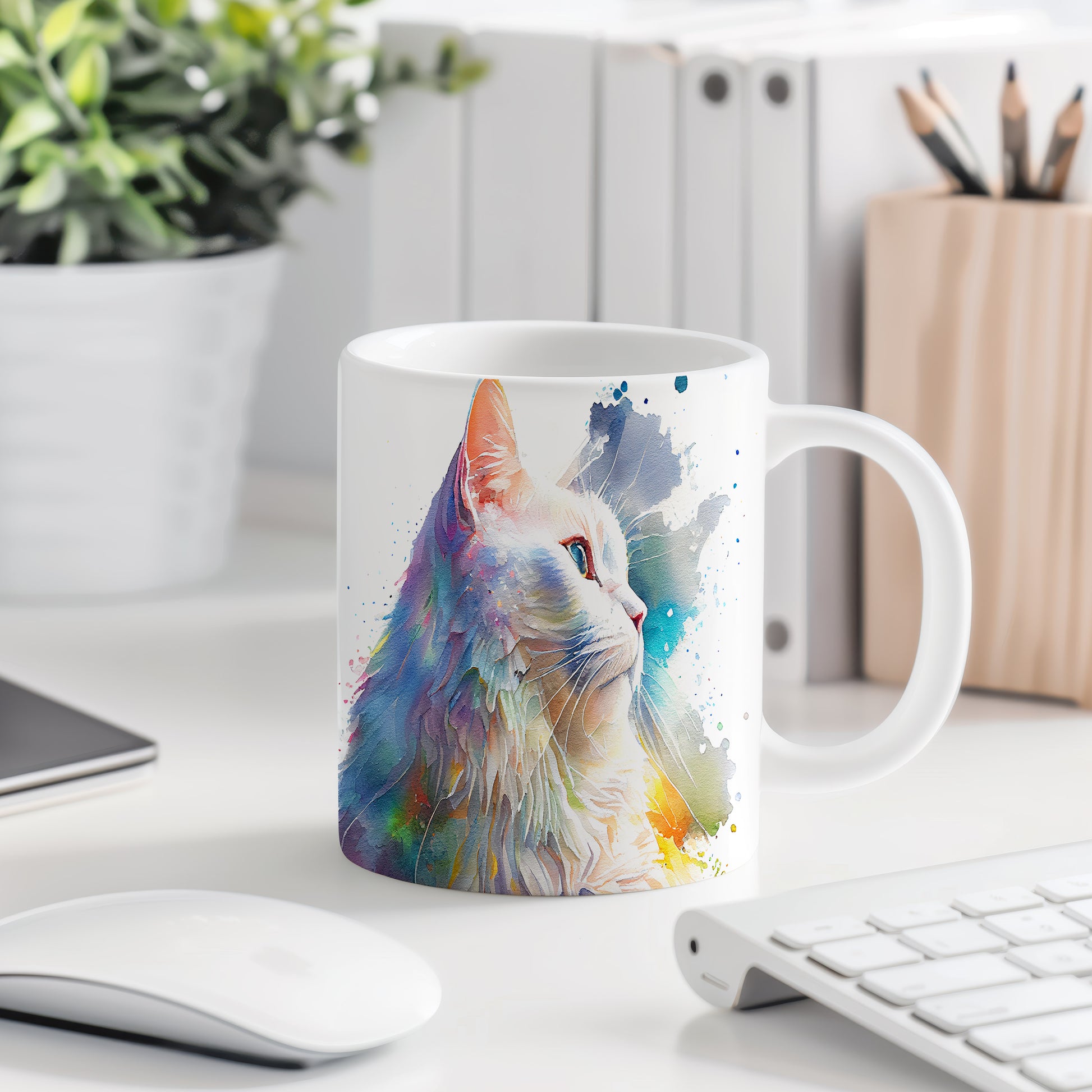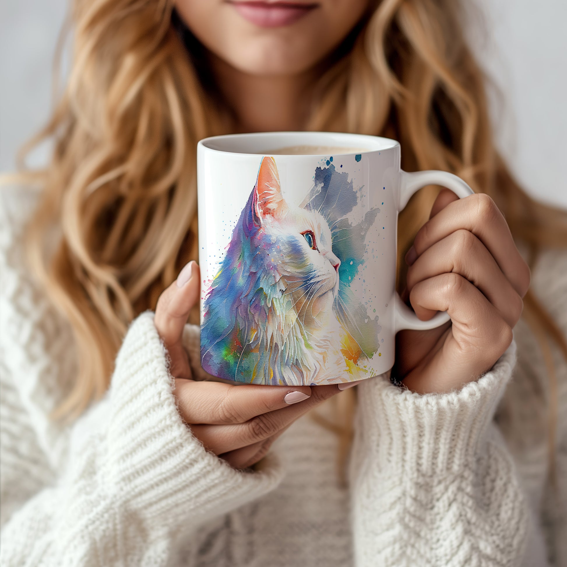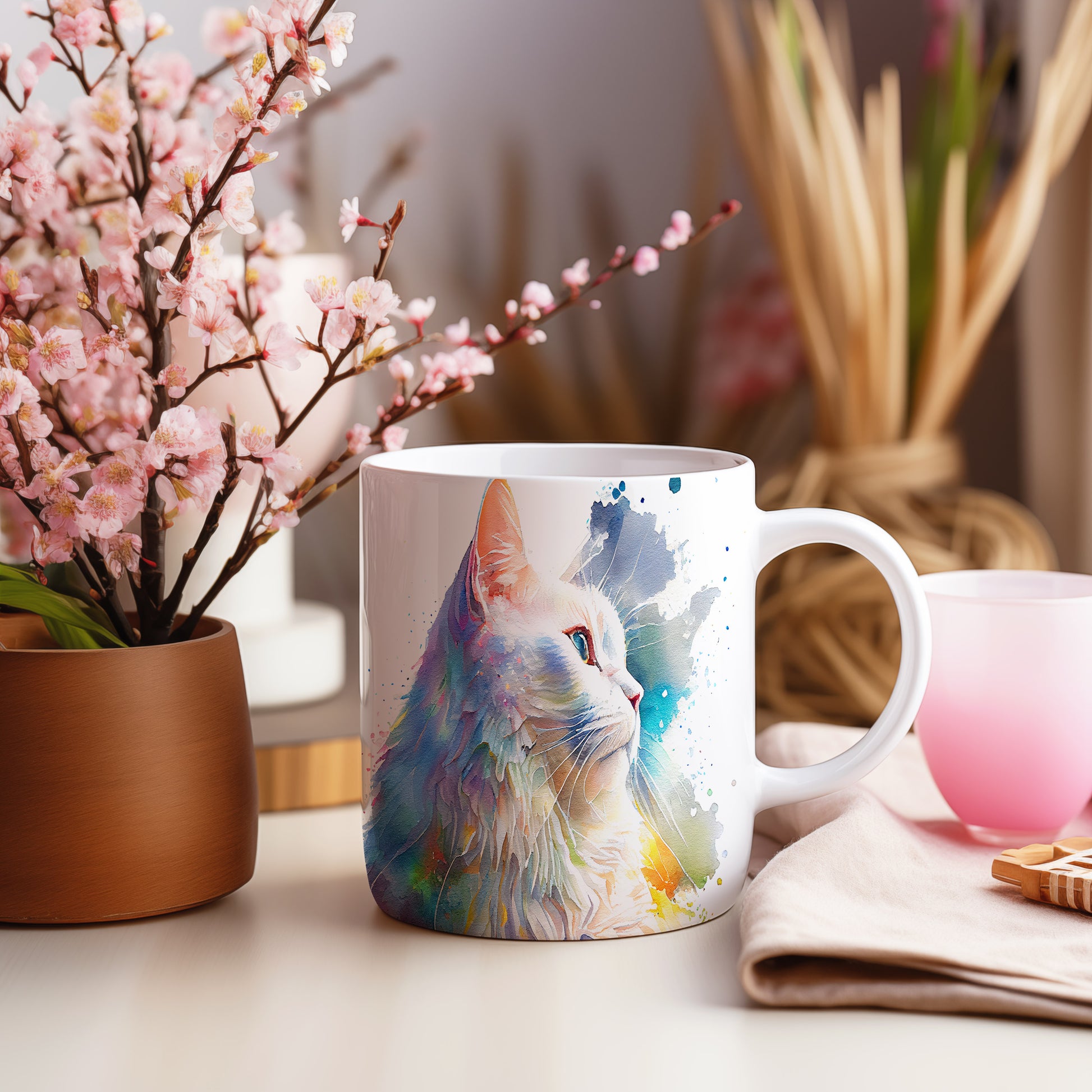 Tento elegantní hrnek s realistickým portrétem kočky v živých barvách je ideální pro milovníky těchto domácích mazlíčků. Skvělý tip na dárek pro přátele nebo rodinu, kteří mají rádi kočky. Materiál: keramika. Objem: 330 ml. Vhodné do myčky i mikrovlnky. Používání tohoto hrnku přináší radost a oživí každodenní pití.